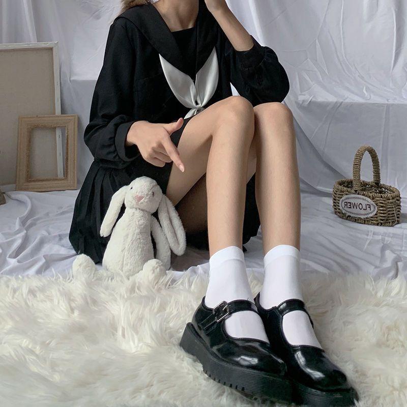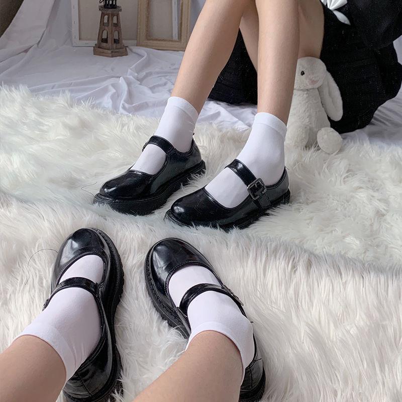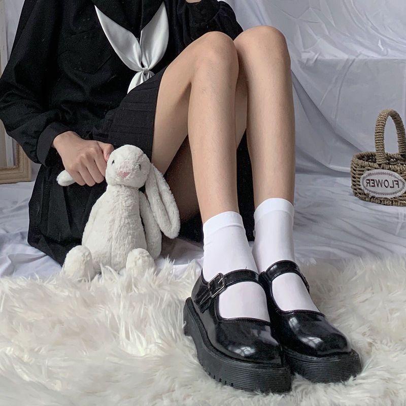 Calcetines de Terciopelo Blanco Verano Calcetines Cortos Jk de Mujer Verano Media Pantorrilla Calcetines Estilo Japonés Uniforme Calcetines de Pantorrilla Negro