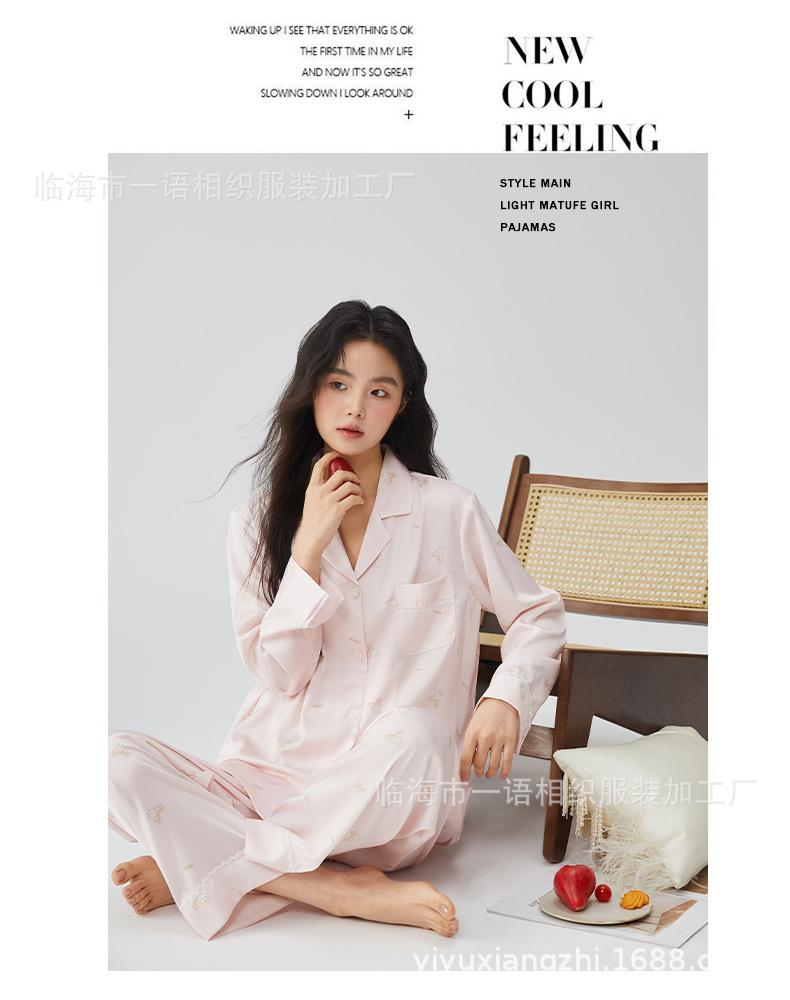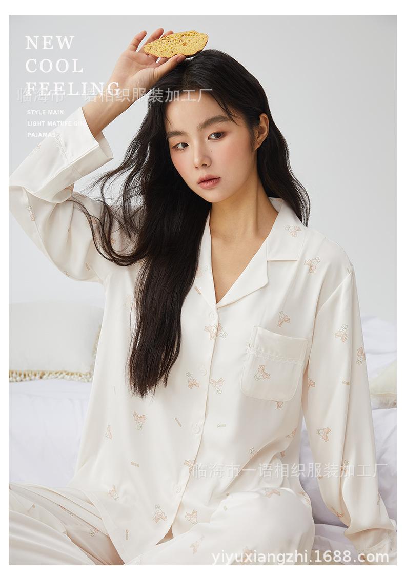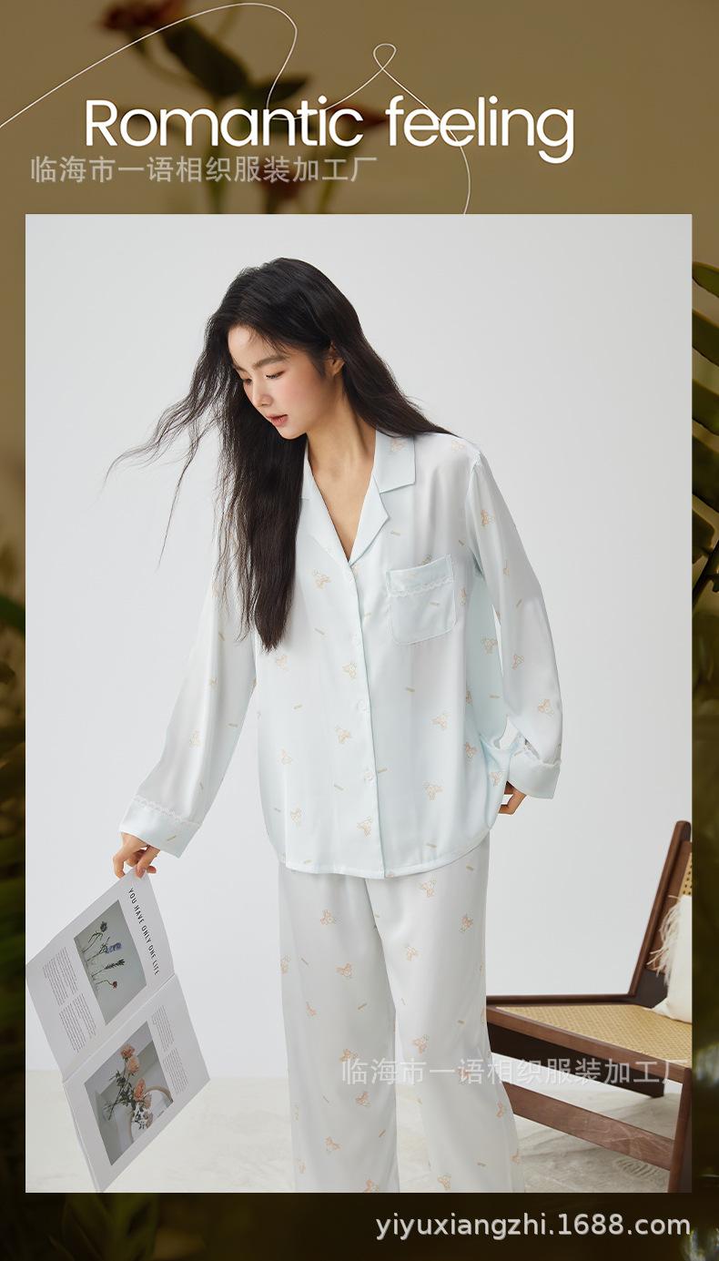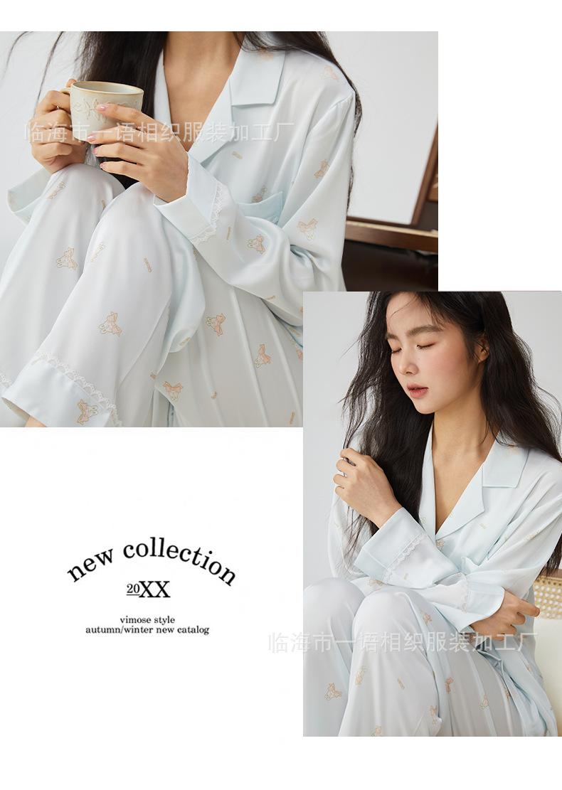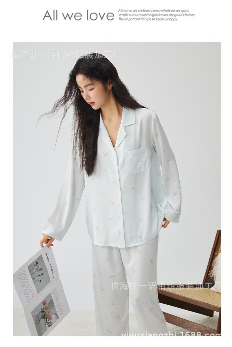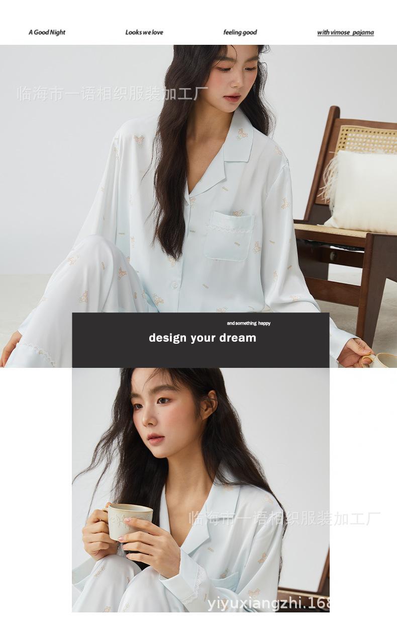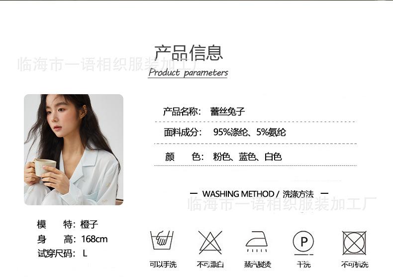 Pijamas franceses para mujer, primavera de 25 años, nuevos, de seda helada, con encaje de conejo azul, ropa de alta gama para el hogar, verano, una generación de cabello