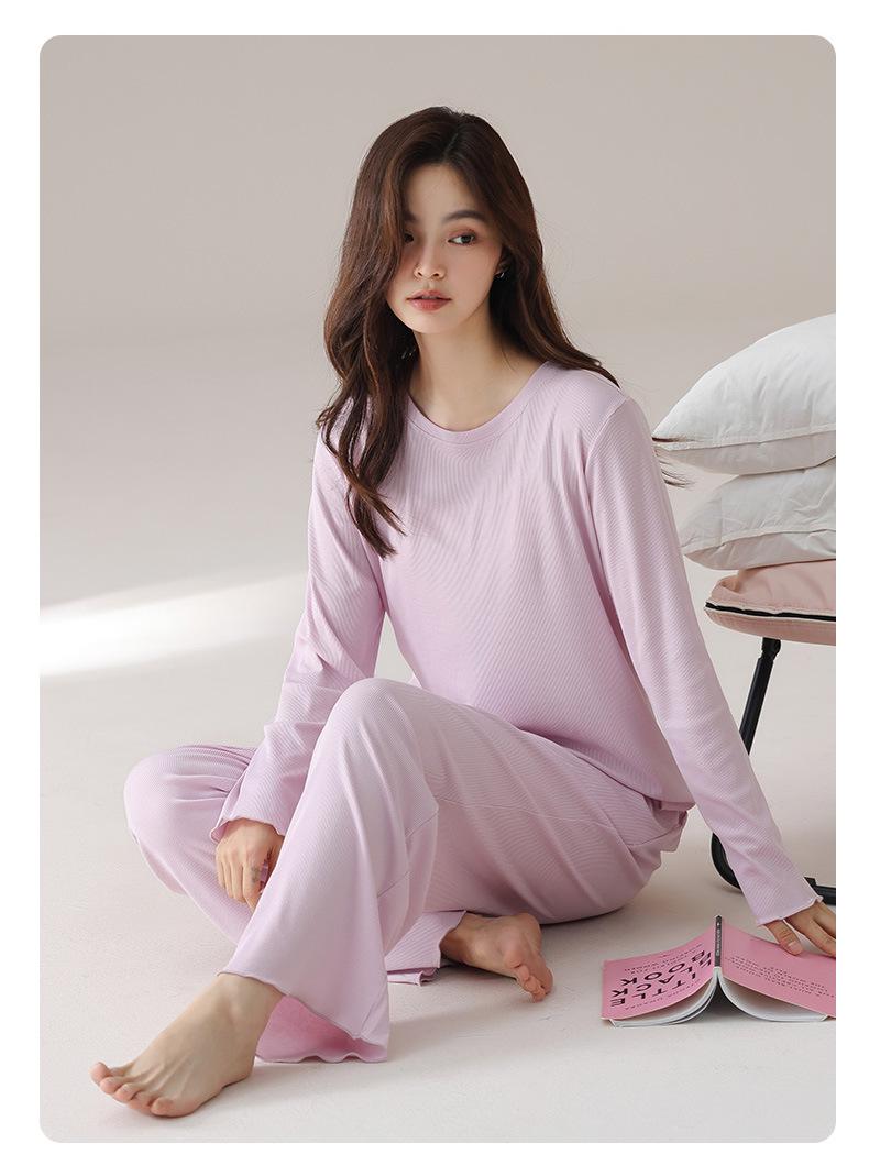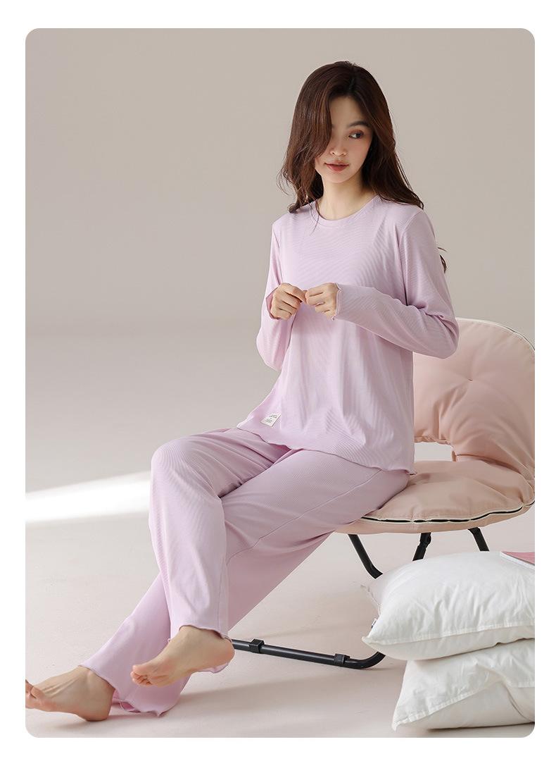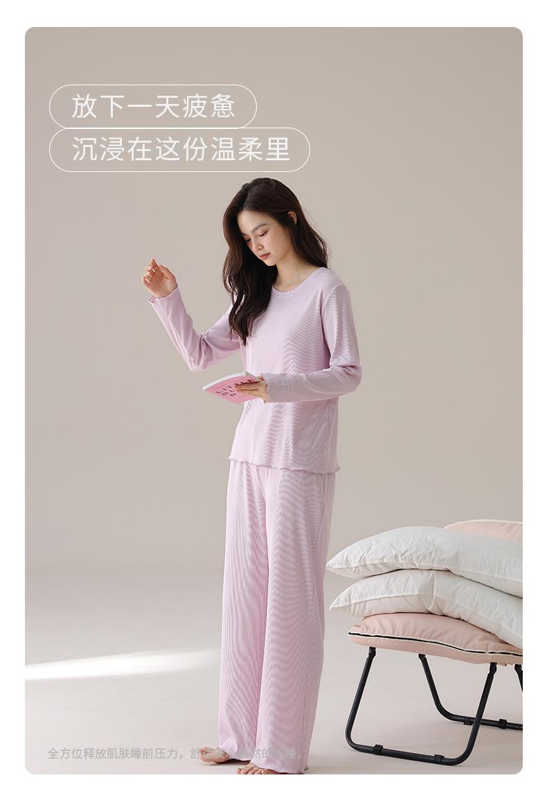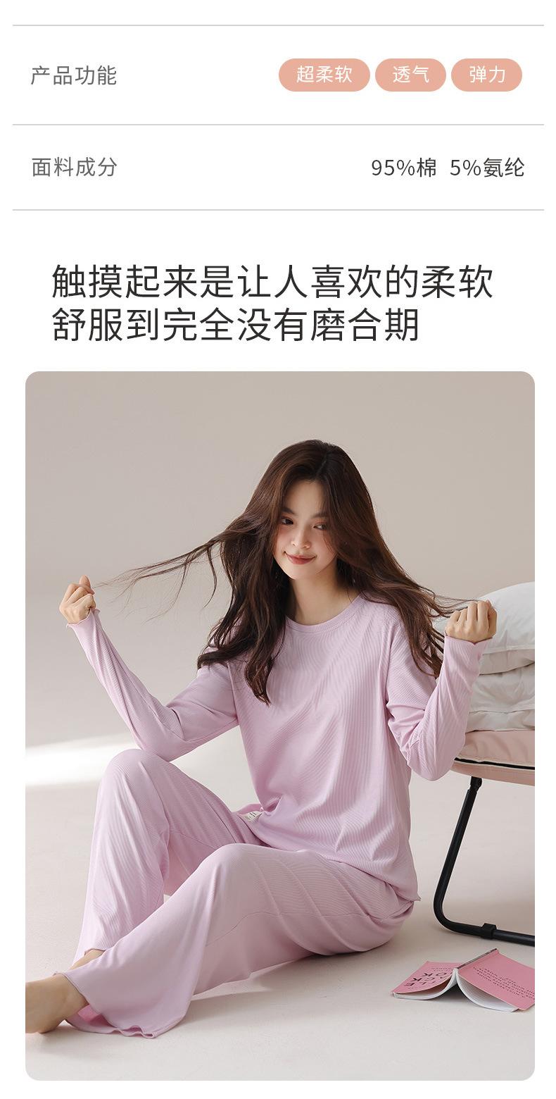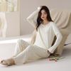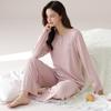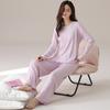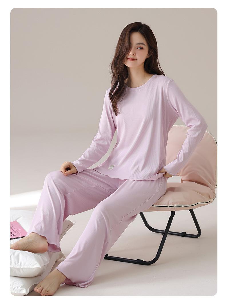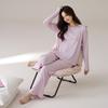 Pijama para Mujer Algodón Puro Primavera y Otoño Algodón Suave Moda Cuello Redondo Manga Larga Pantalón Traje Perezoso de Alta Gama Ropa para el Hogar Mujer