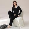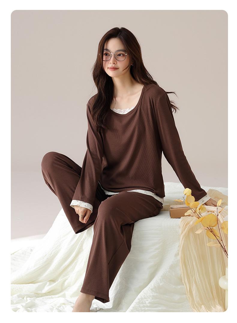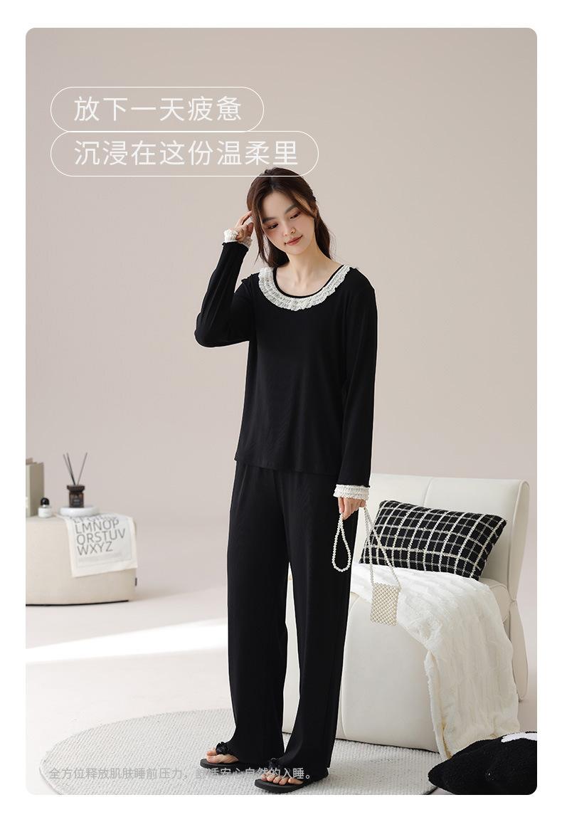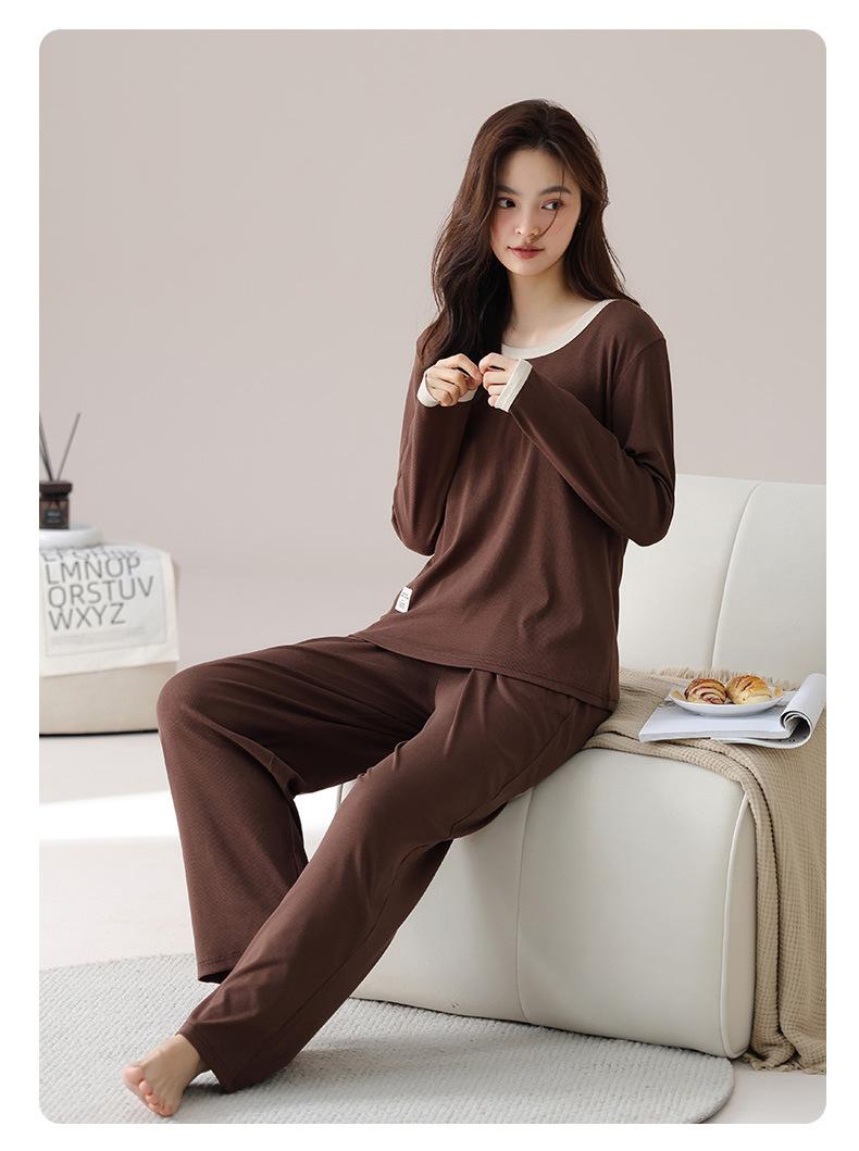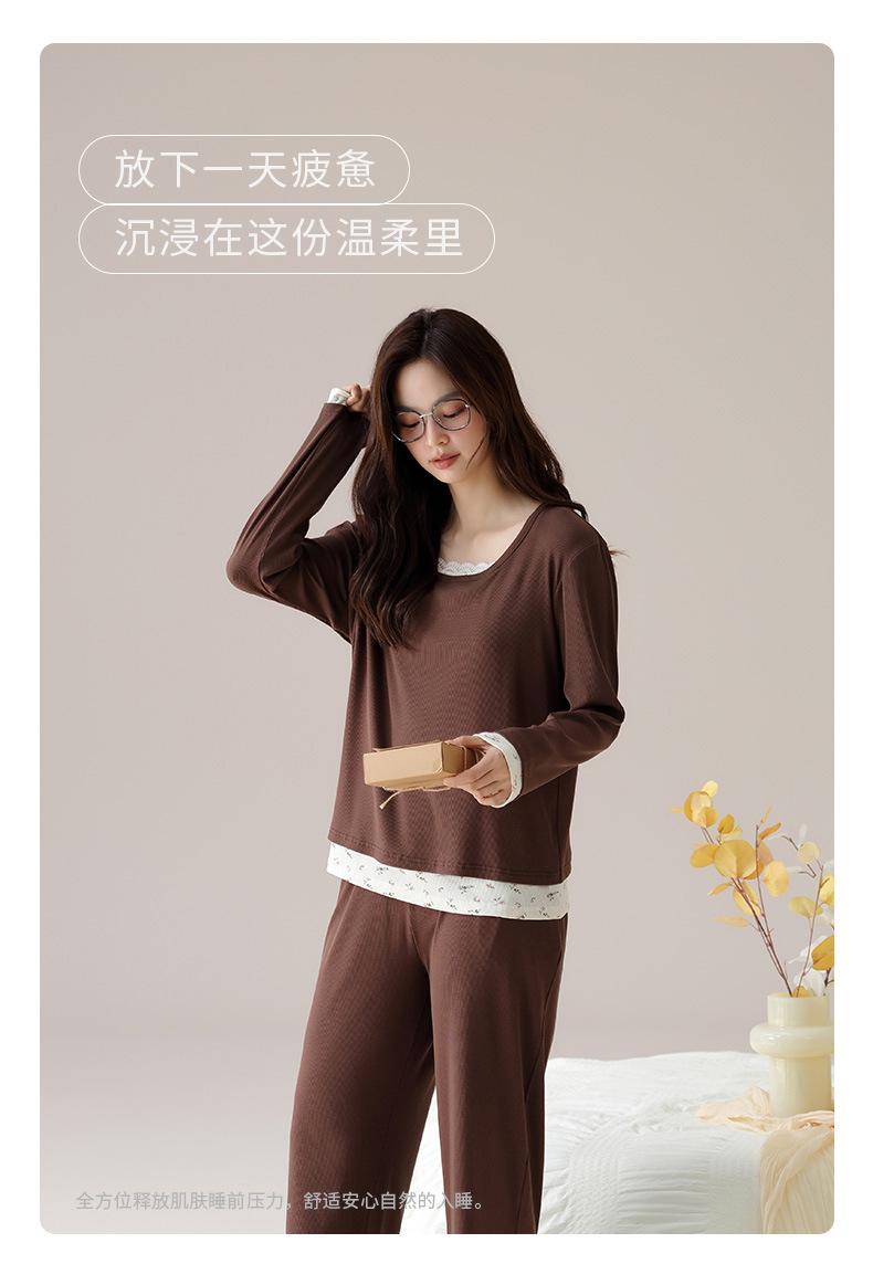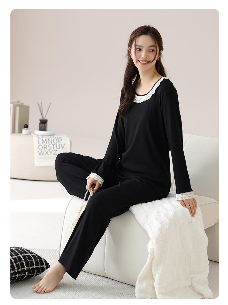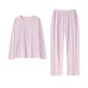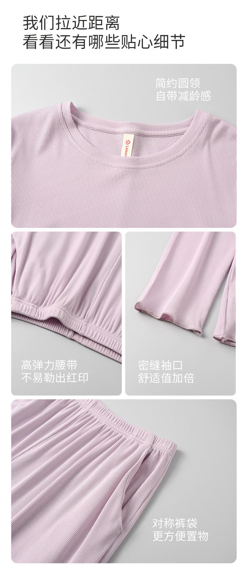 Pijama para Mujer Algodón Puro Primavera y Otoño Algodón Suave Moda Cuello Redondo Manga Larga Pantalón Traje Perezoso de Alta Gama Ropa para el Hogar Mujer