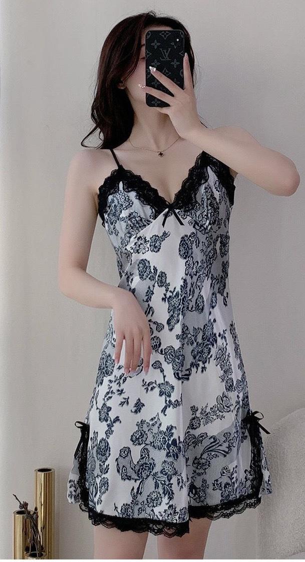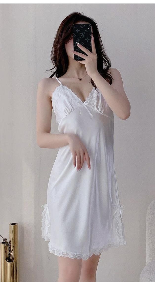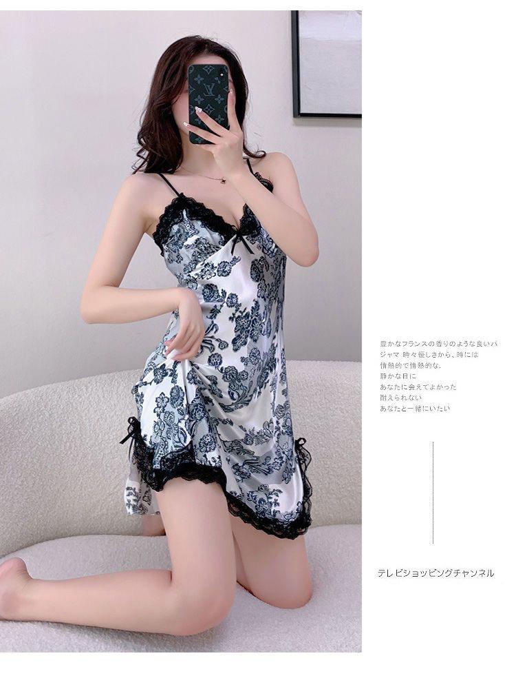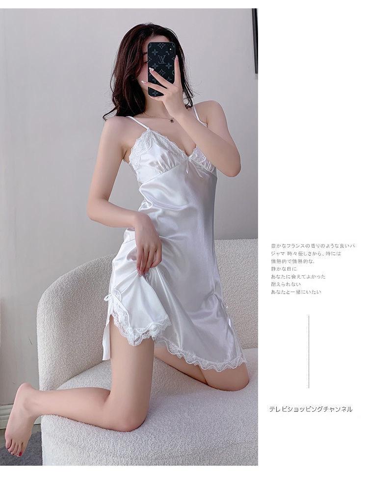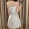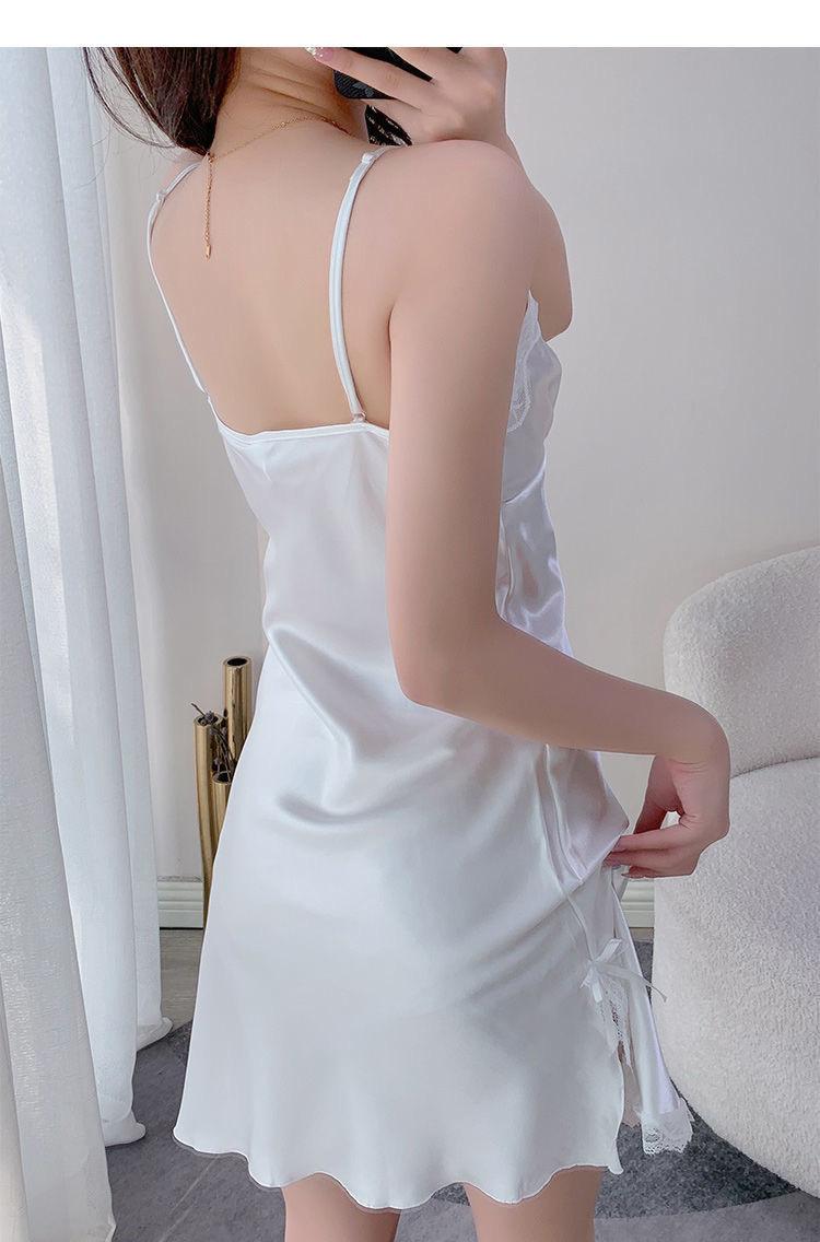 Deseo Puro Sling Encaje Camisón de Seda de Hielo Desnudo Camisón para Mujer Primavera y Otoño Sexy Encantador Estudiante Ins con Almohadilla para el Pecho