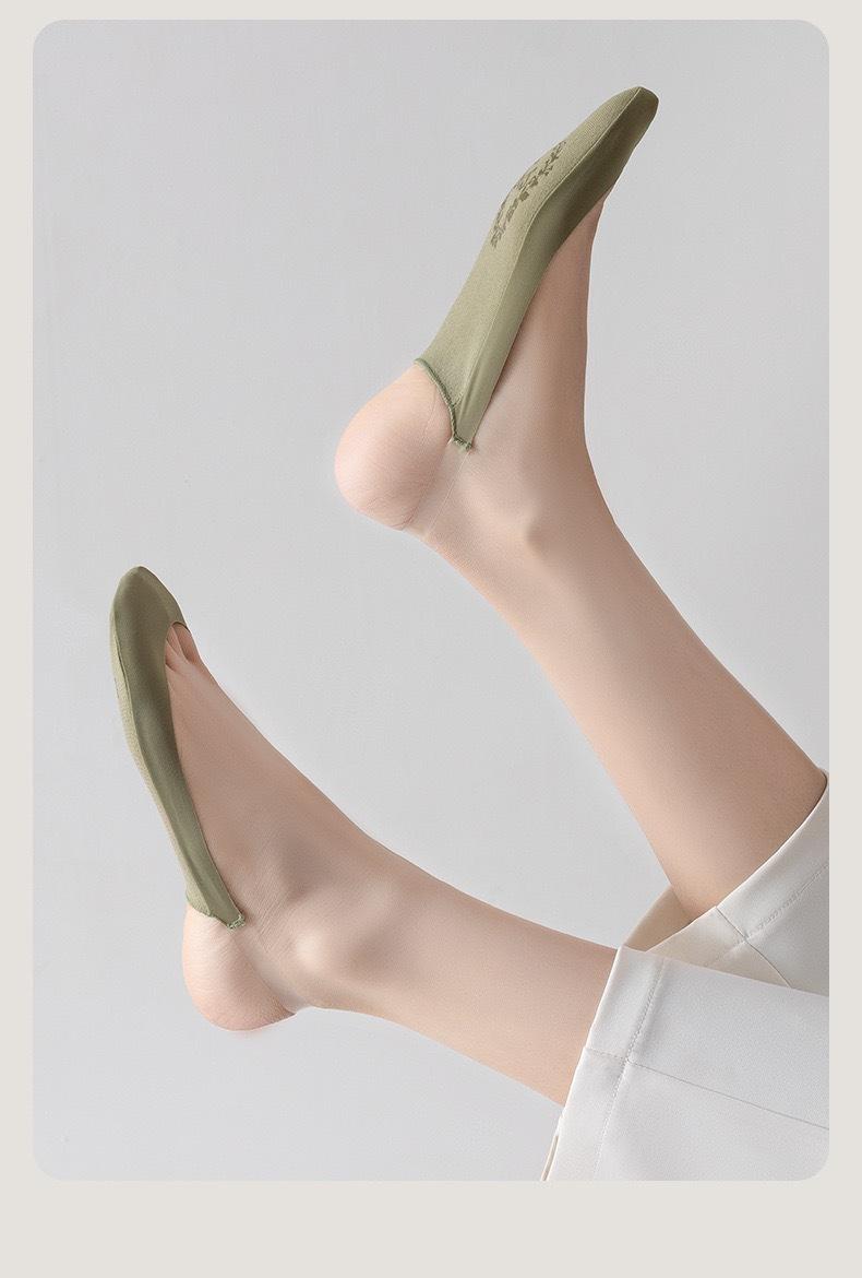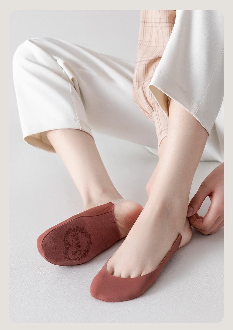 Calcetines de seda de hielo para mujer, calcetines náuticos de verano, finos, de algodón puro, de boca baja, antideslizantes, con tacón medio alto y sin caídas, calcetines invisibles.