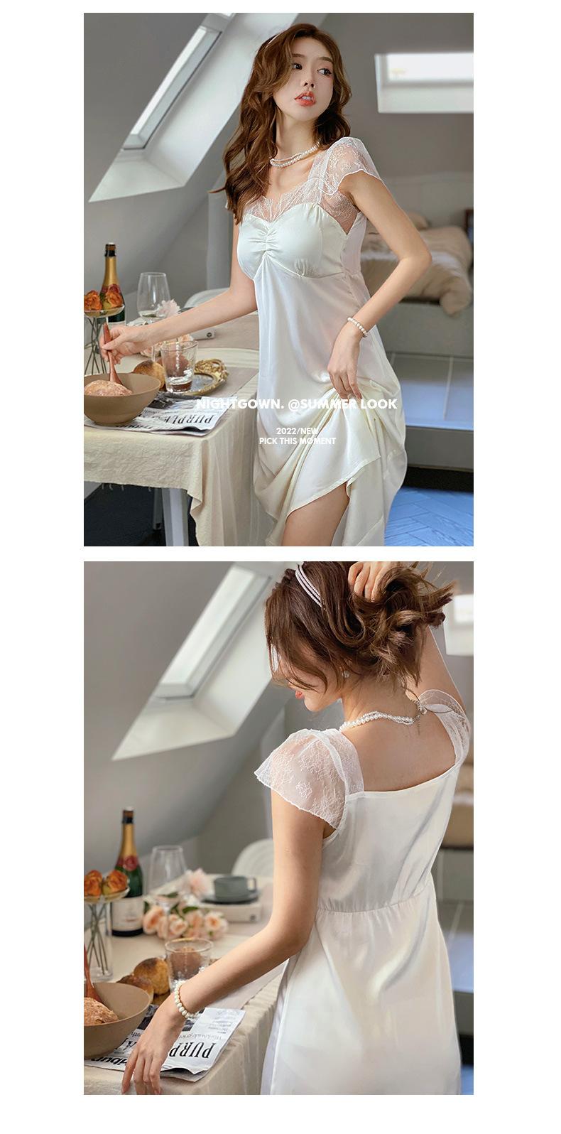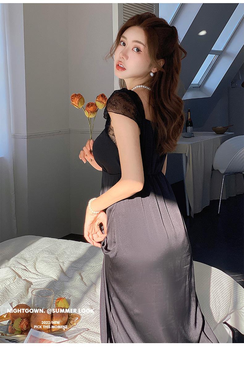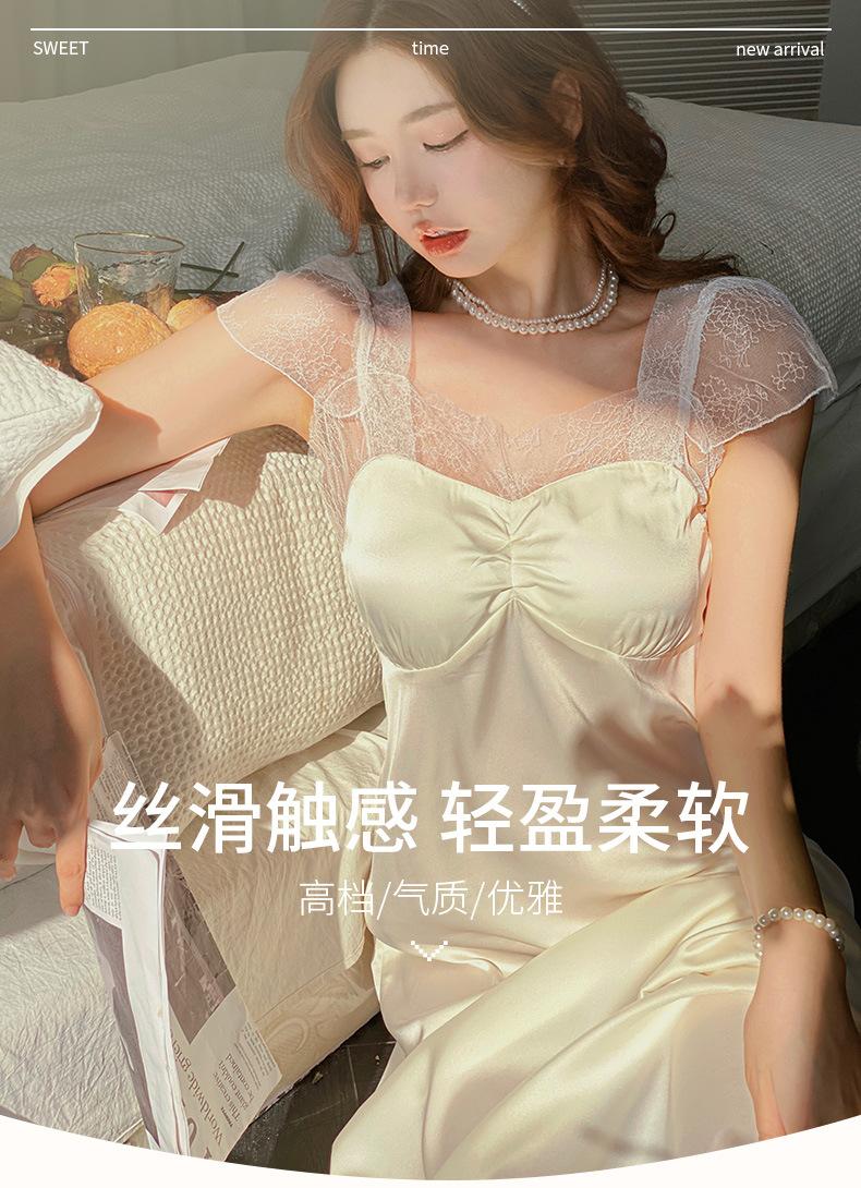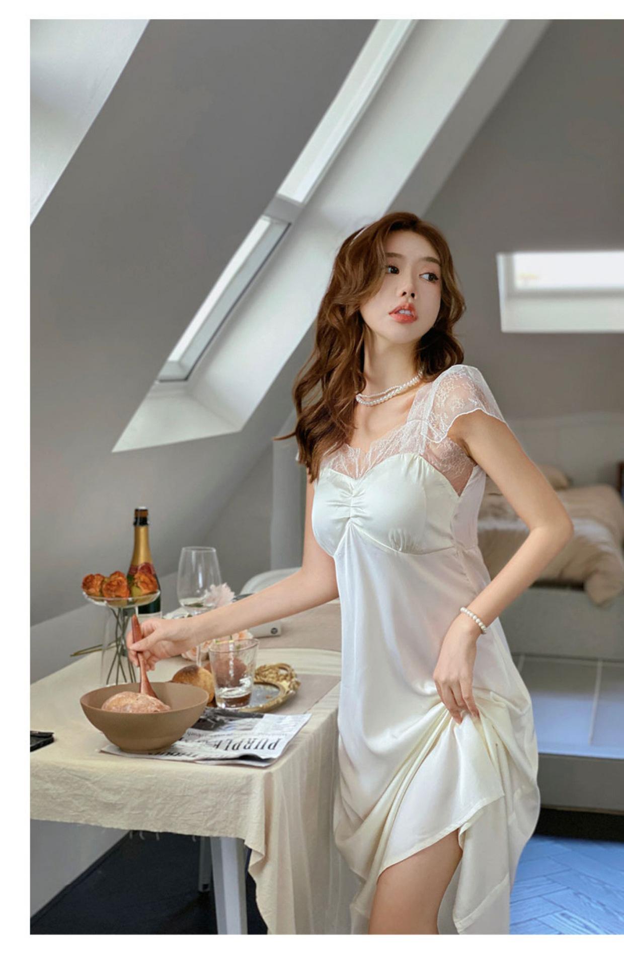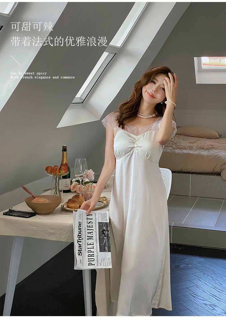 2024 Nuevo camisón para mujer Verano Seda de Hielo Estilo Corte Fino Elegante Vestido de Hada Francesa Pijama Sexy para Mujer