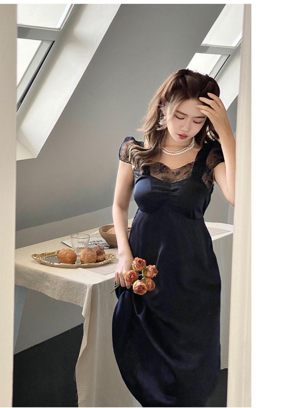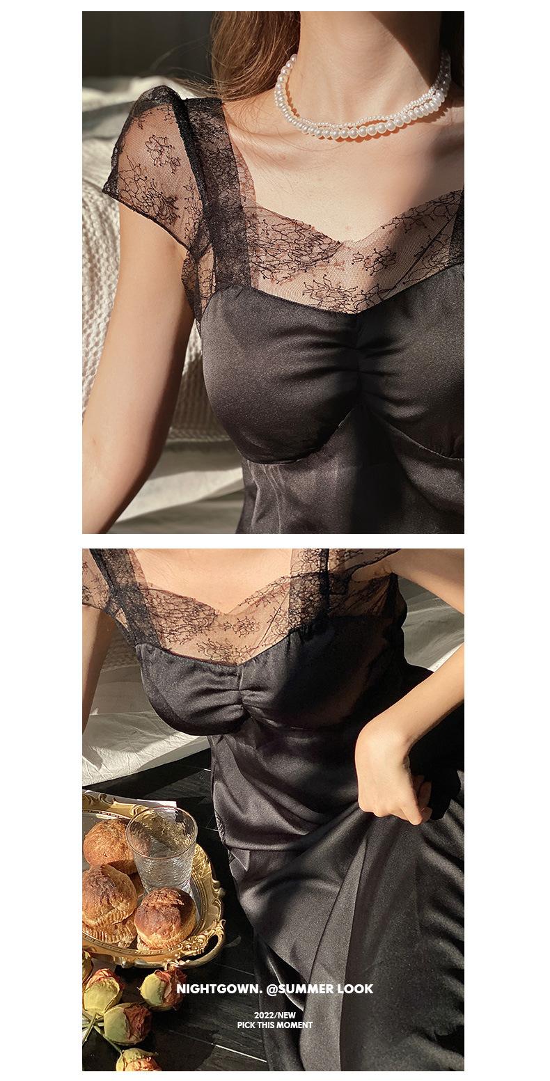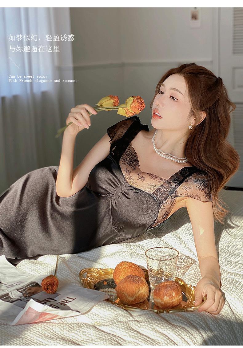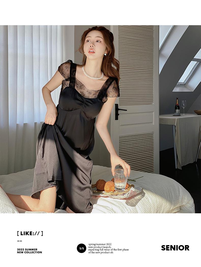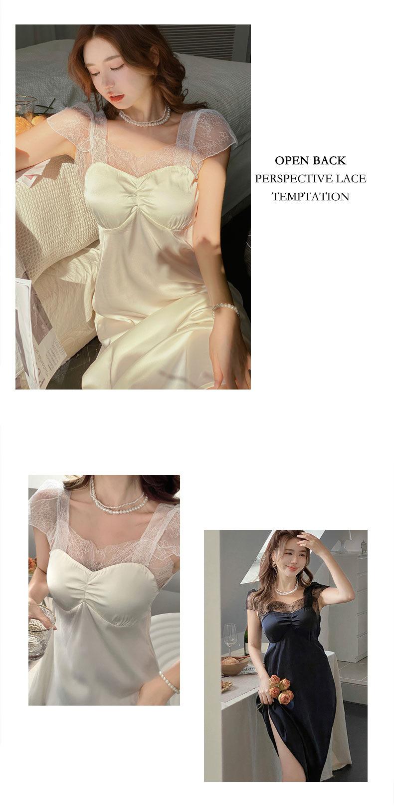 2024 Nuevo camisón para mujer Verano Seda de Hielo Estilo Corte Fino Elegante Vestido de Hada Francesa Pijama Sexy para Mujer