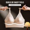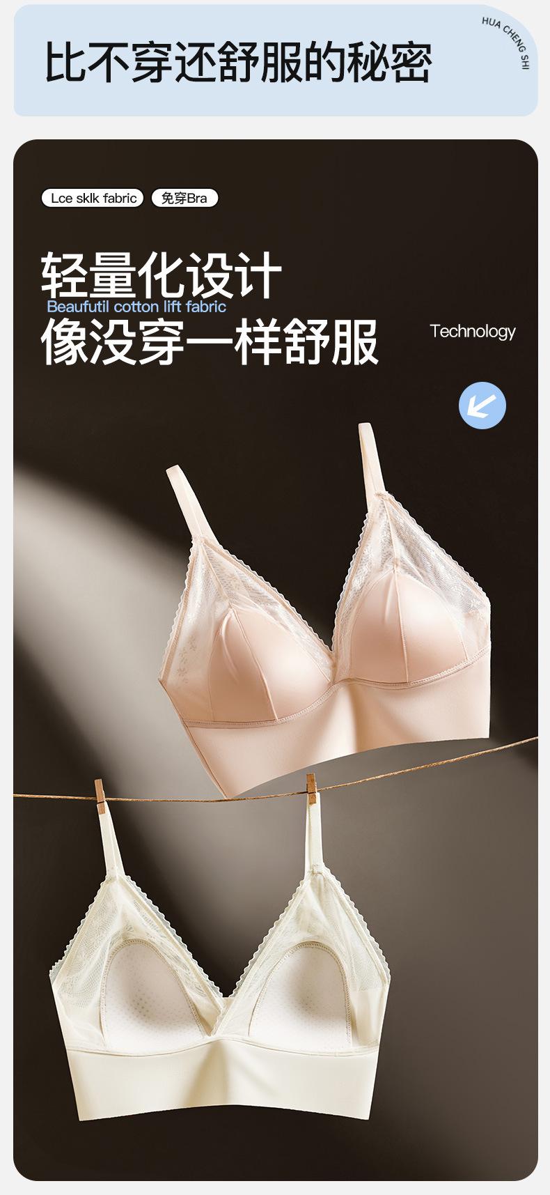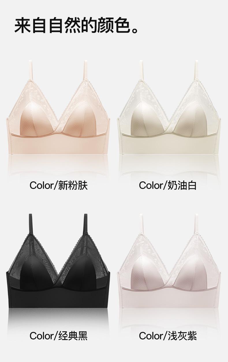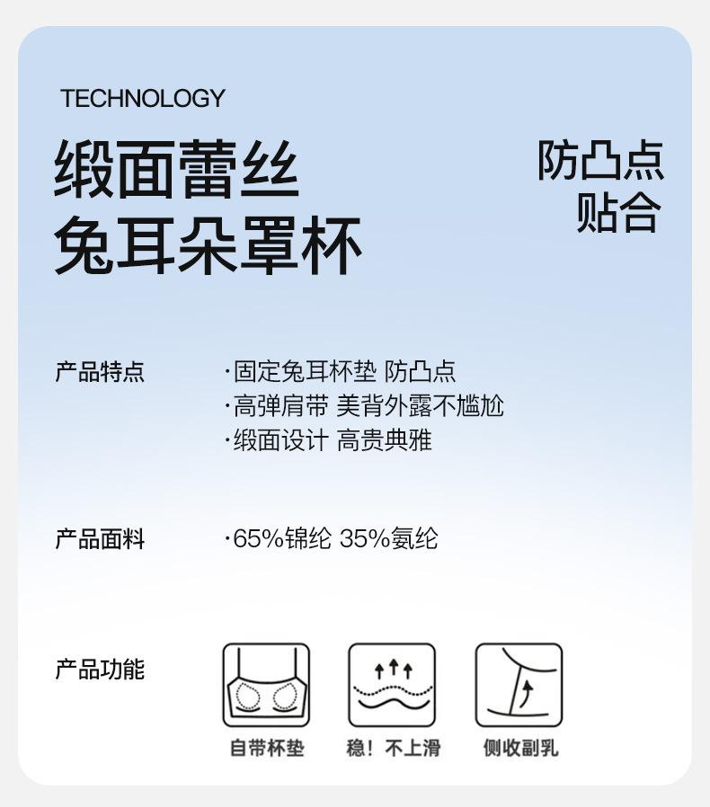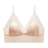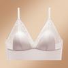 Sujetador Envolvente Sin Costuras de Encaje de Malla Satinada con Almohadilla de Orejas de Conejo Fijas, Tirantes, Espalda Hermosa, Transpirable, Desnudo, Elegante