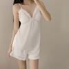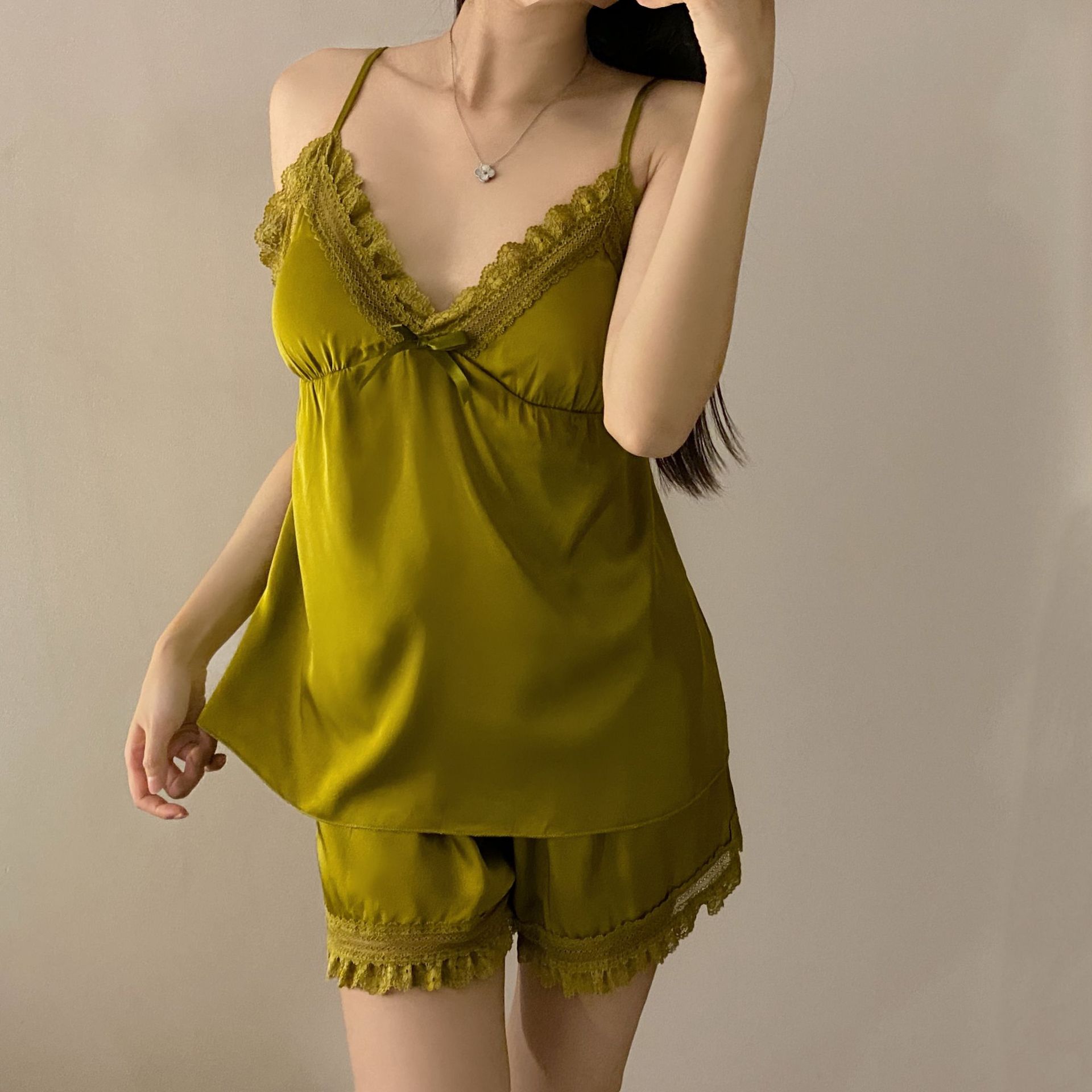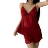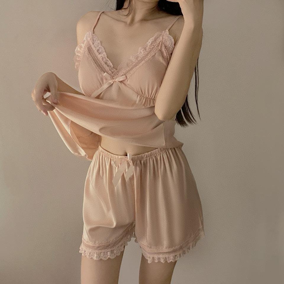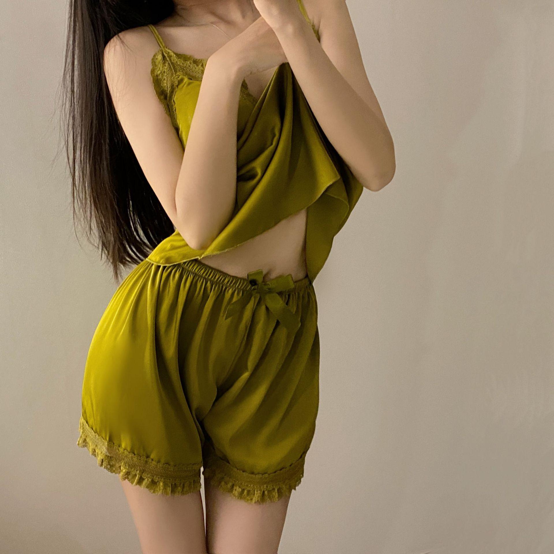 Pijamas de seda de hielo para mujer con almohadilla para el pecho, pantalones cortos de verano para niñas, ropa para el hogar, pijamas de mujer, rosa sexy