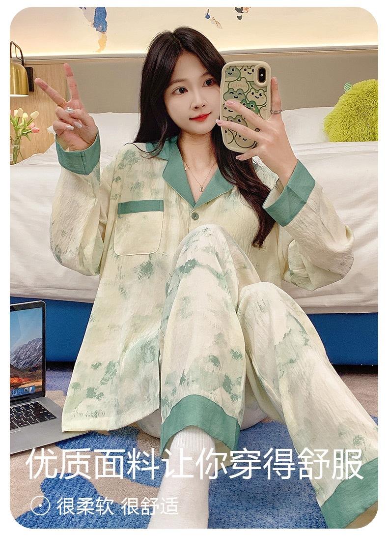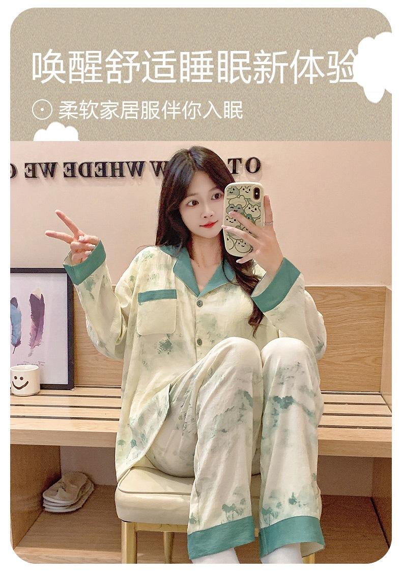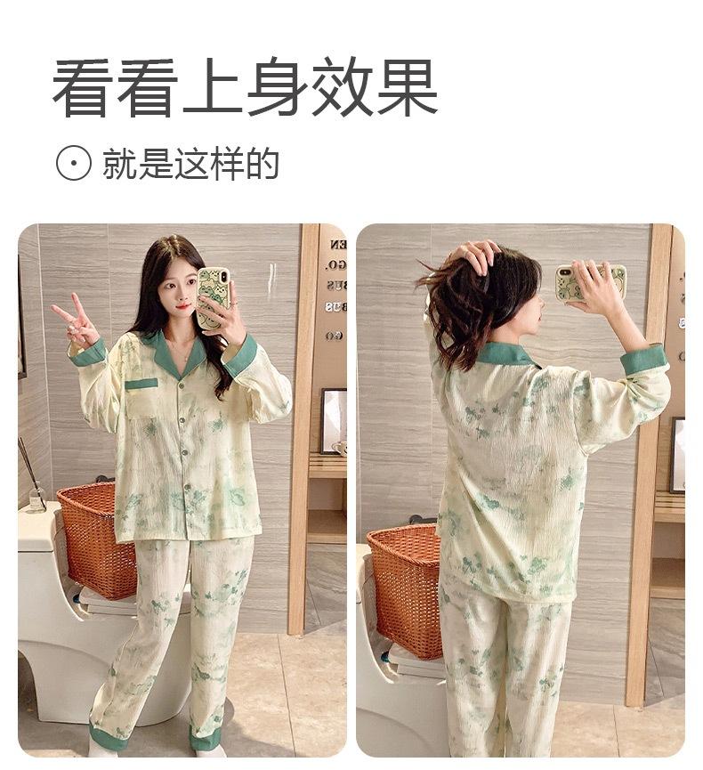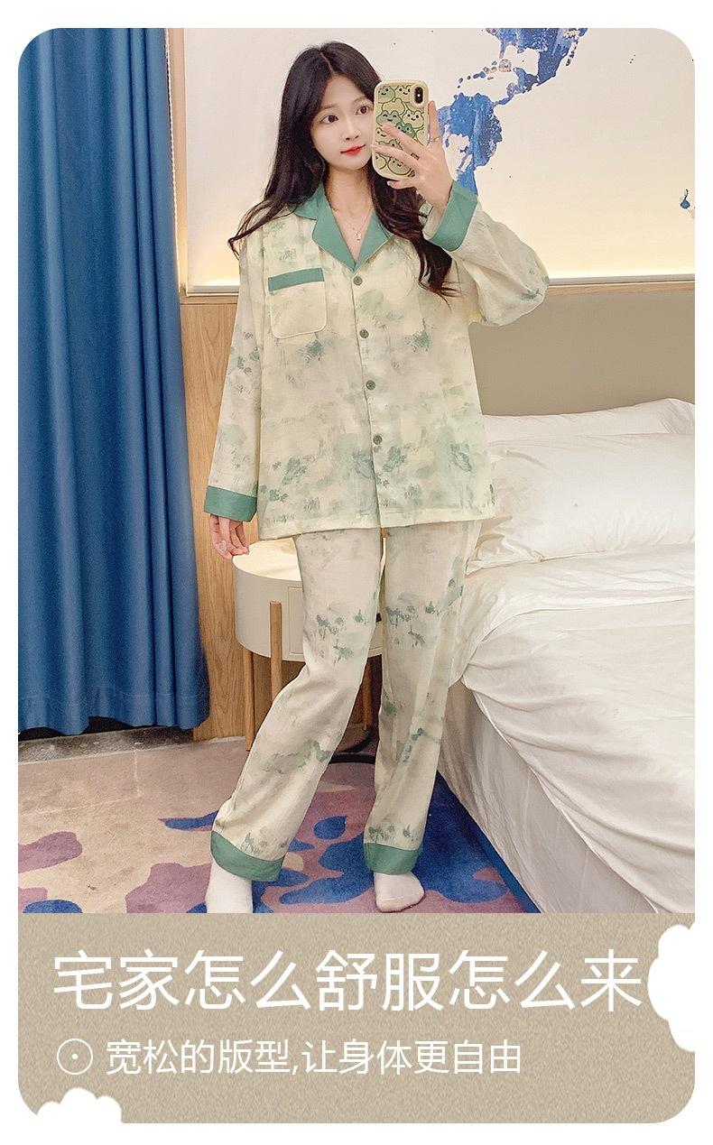 Tienda Física Primavera y Otoño Nuevo Algodón Nube Pijama Solapa Pequeña Mujer con Almohadilla en el Pecho Cárdigan Dulce Casual Ropa de Casa Traje