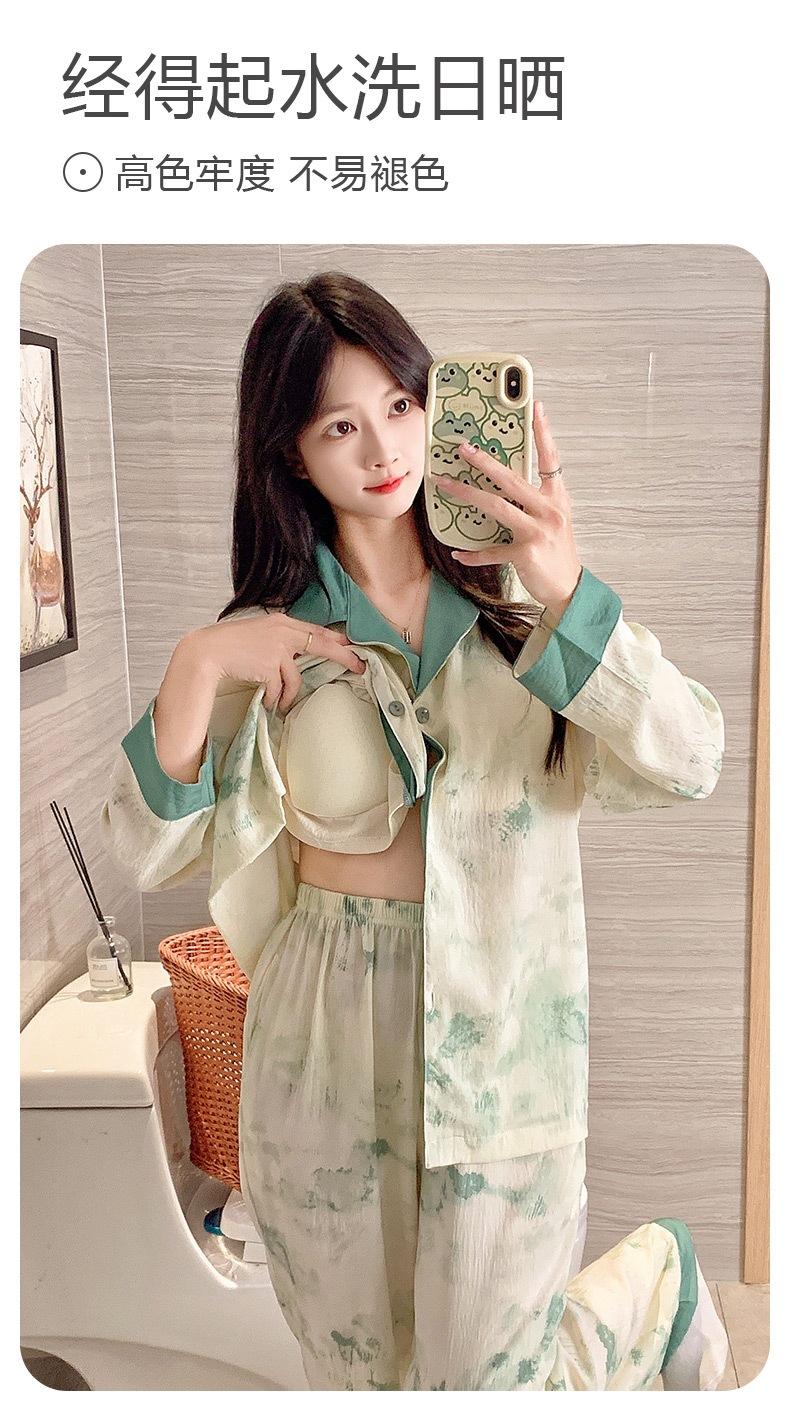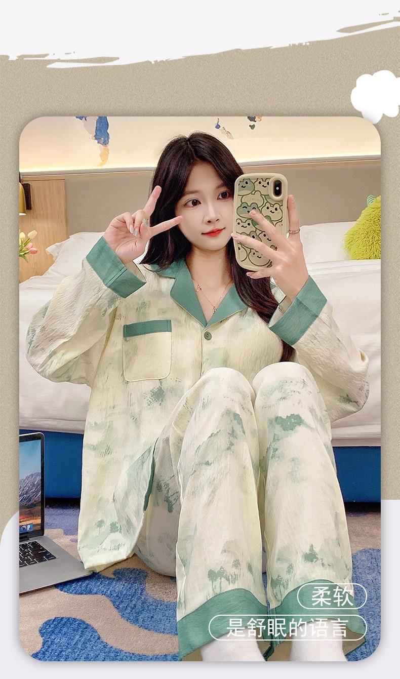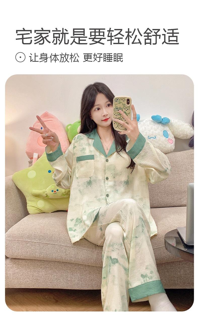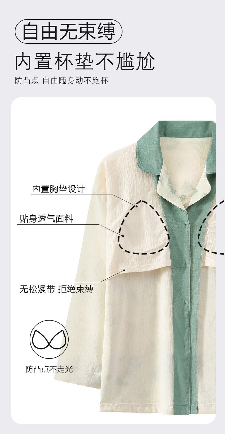Tienda Física Primavera y Otoño Nuevo Algodón Nube Pijama Solapa Pequeña Mujer con Almohadilla en el Pecho Cárdigan Dulce Casual Ropa de Casa Traje