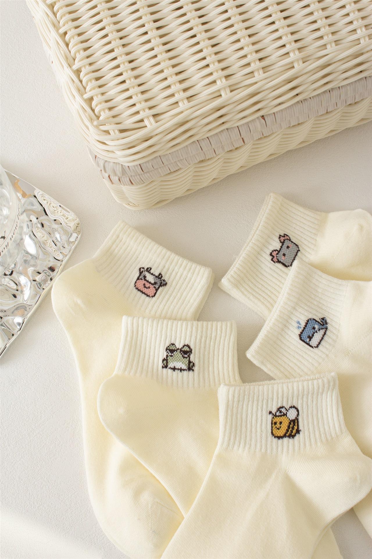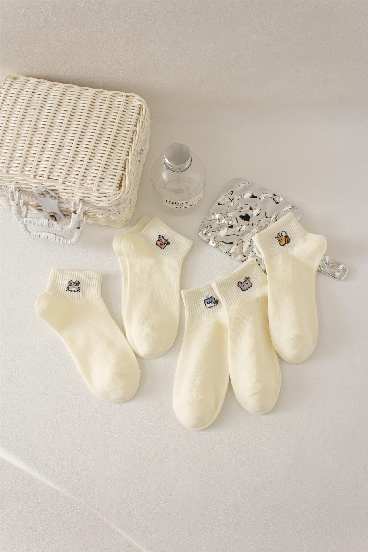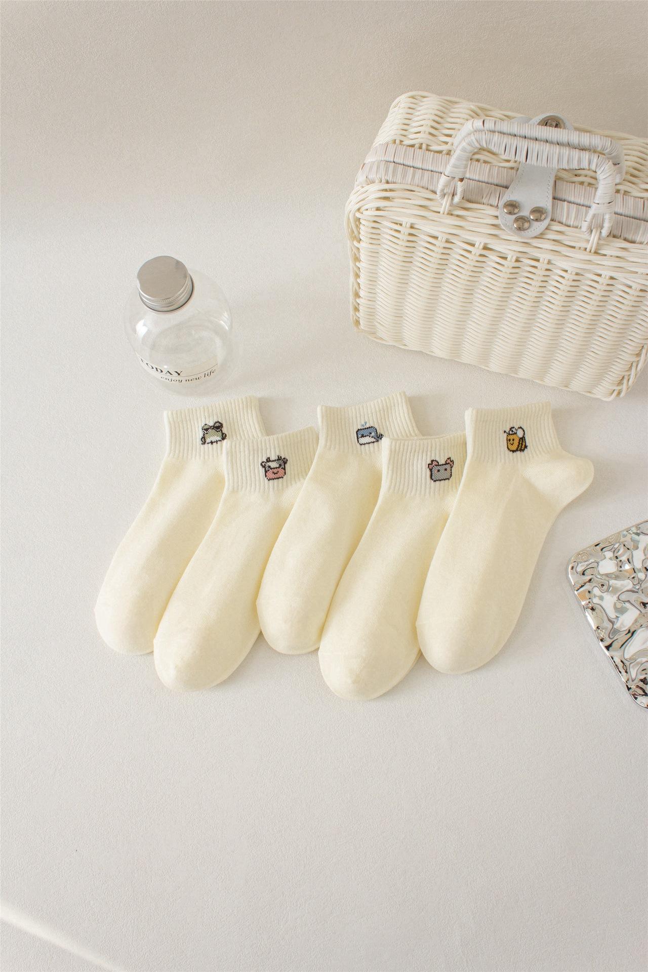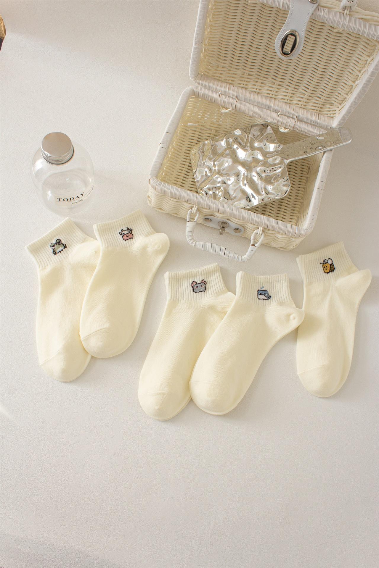 Calcetines náuticos de algodón fino blanco cremoso para primavera y verano, calcetines cortos de animales pequeños, calcetines japoneses de colores a la moda, calcetines para mujer.