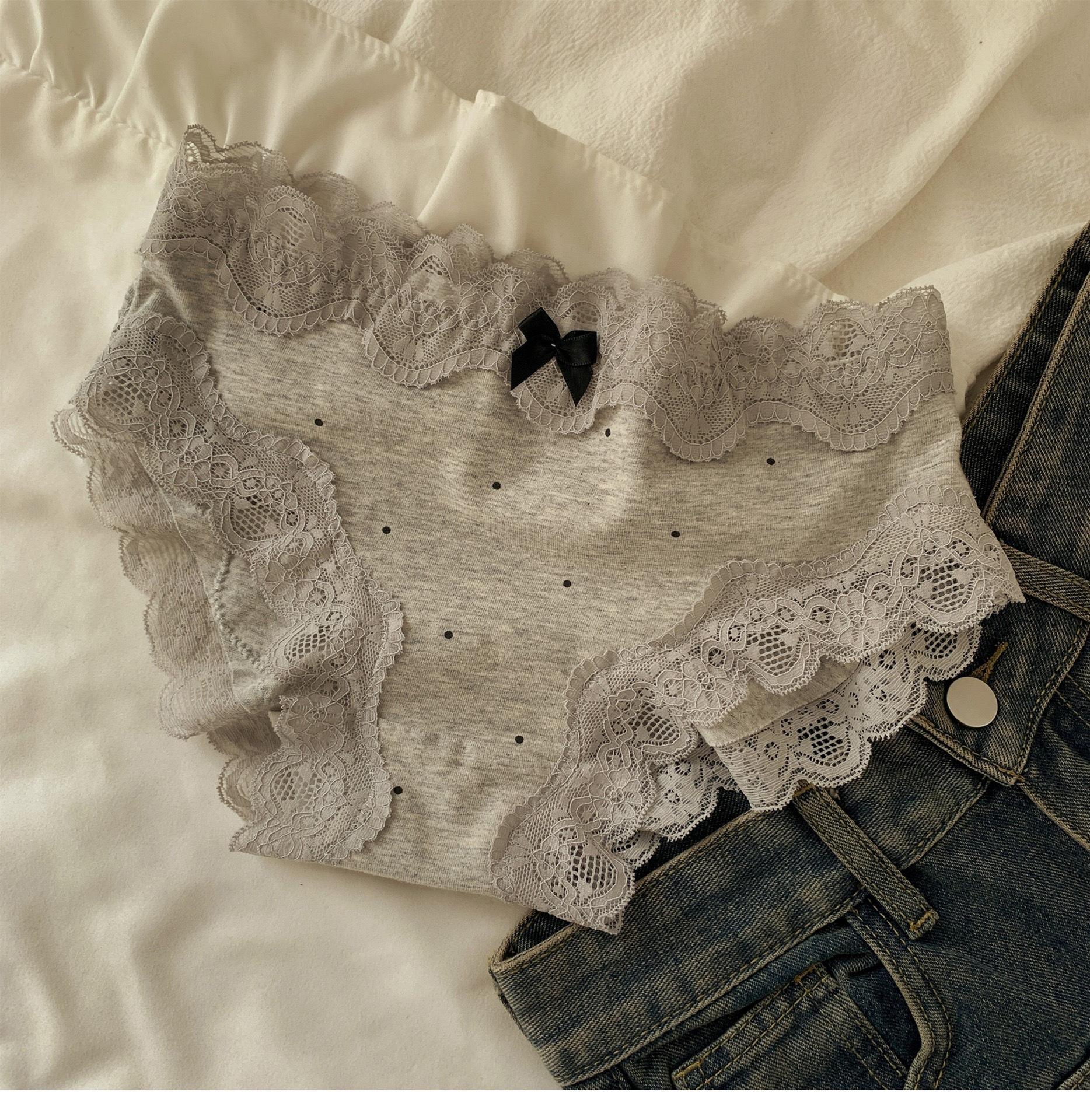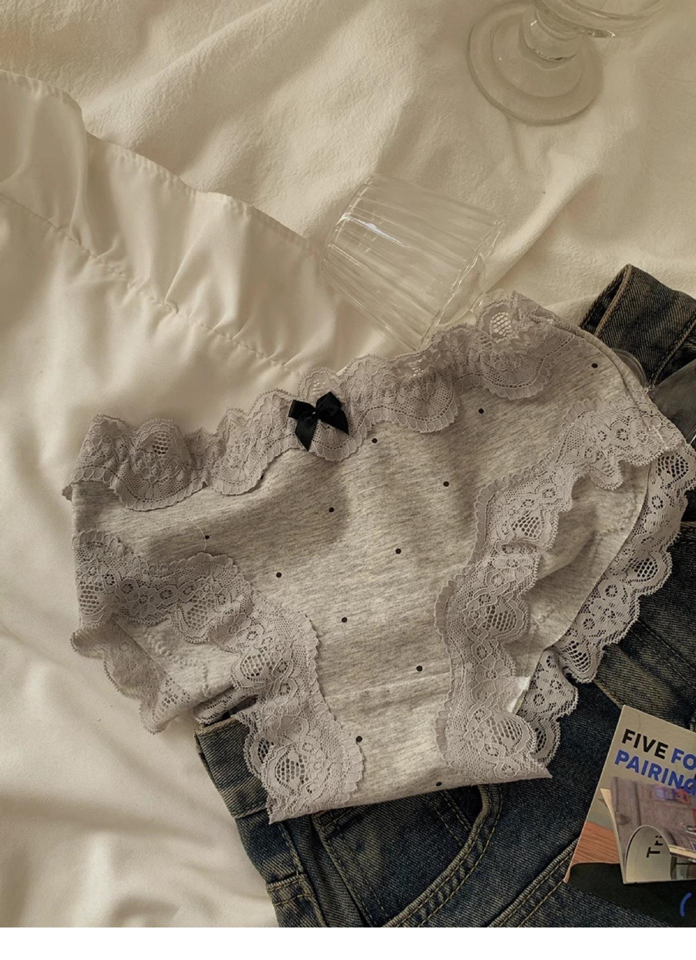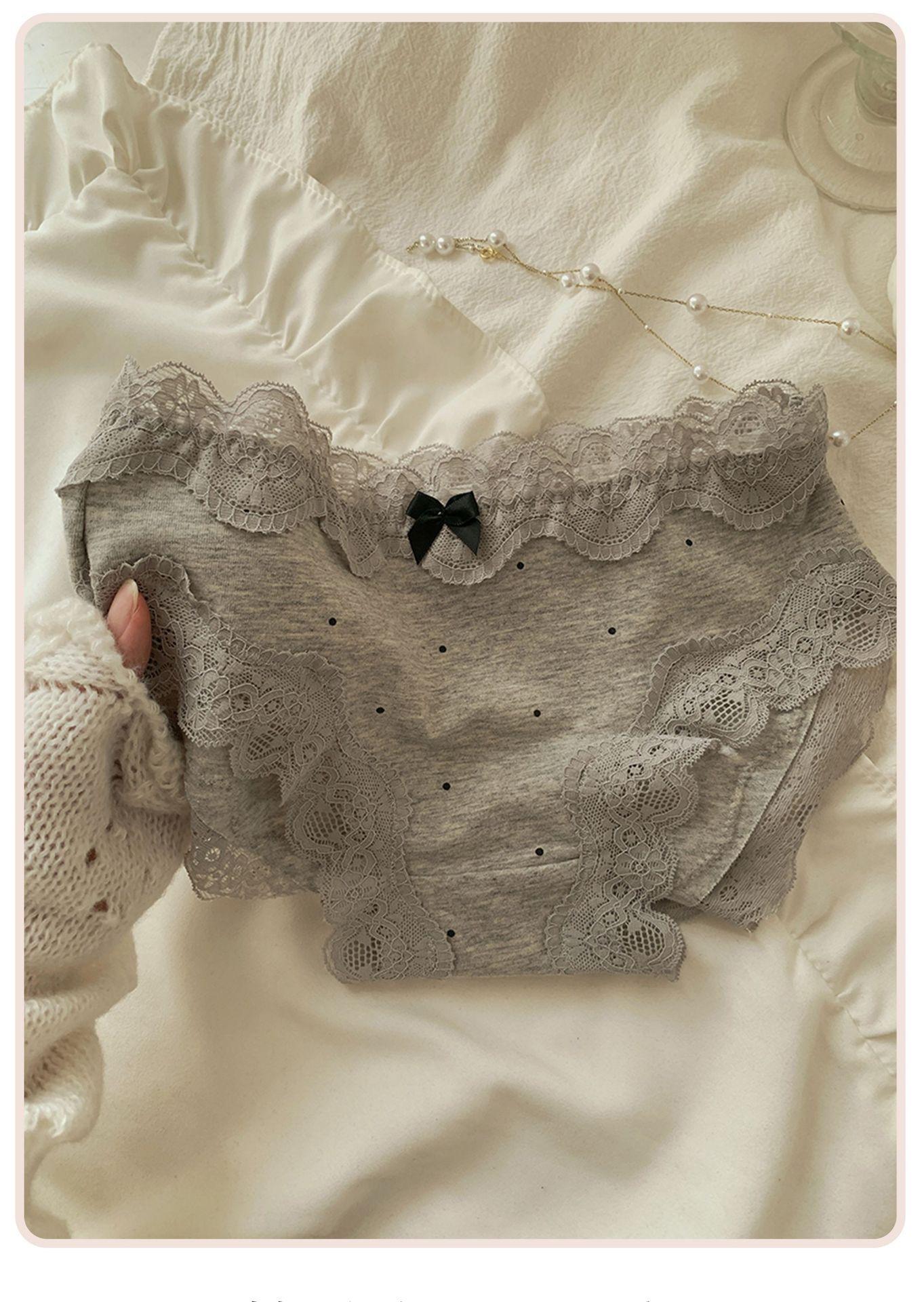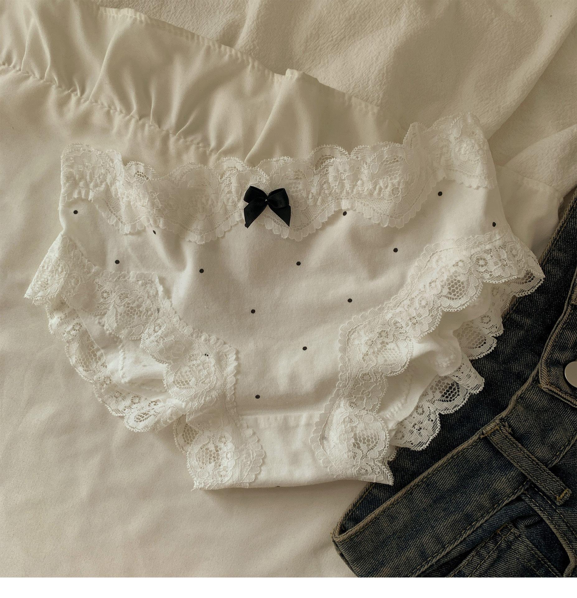 Ropa Interior de Algodón Puro Encaje Suave Vintage Corte Francés para Mujer Cintura Media Lunares Ondulados Sin Costuras Cómoda Transpirable Calzones de Algodón Puro