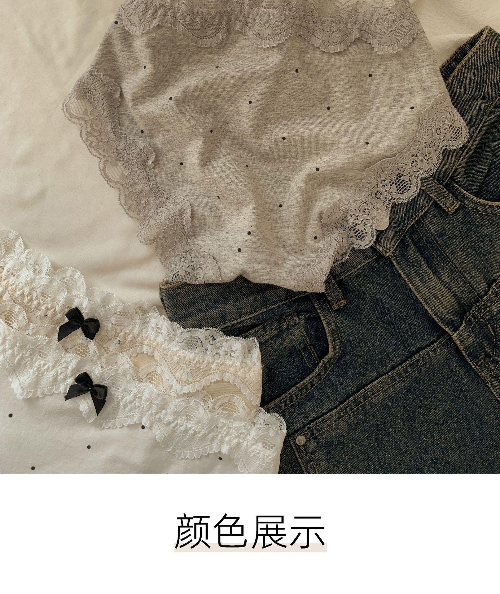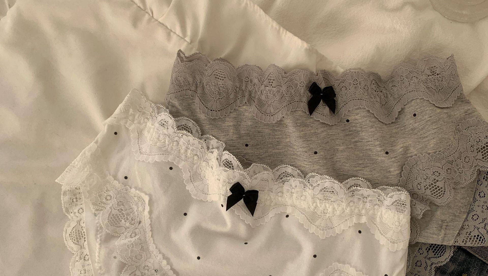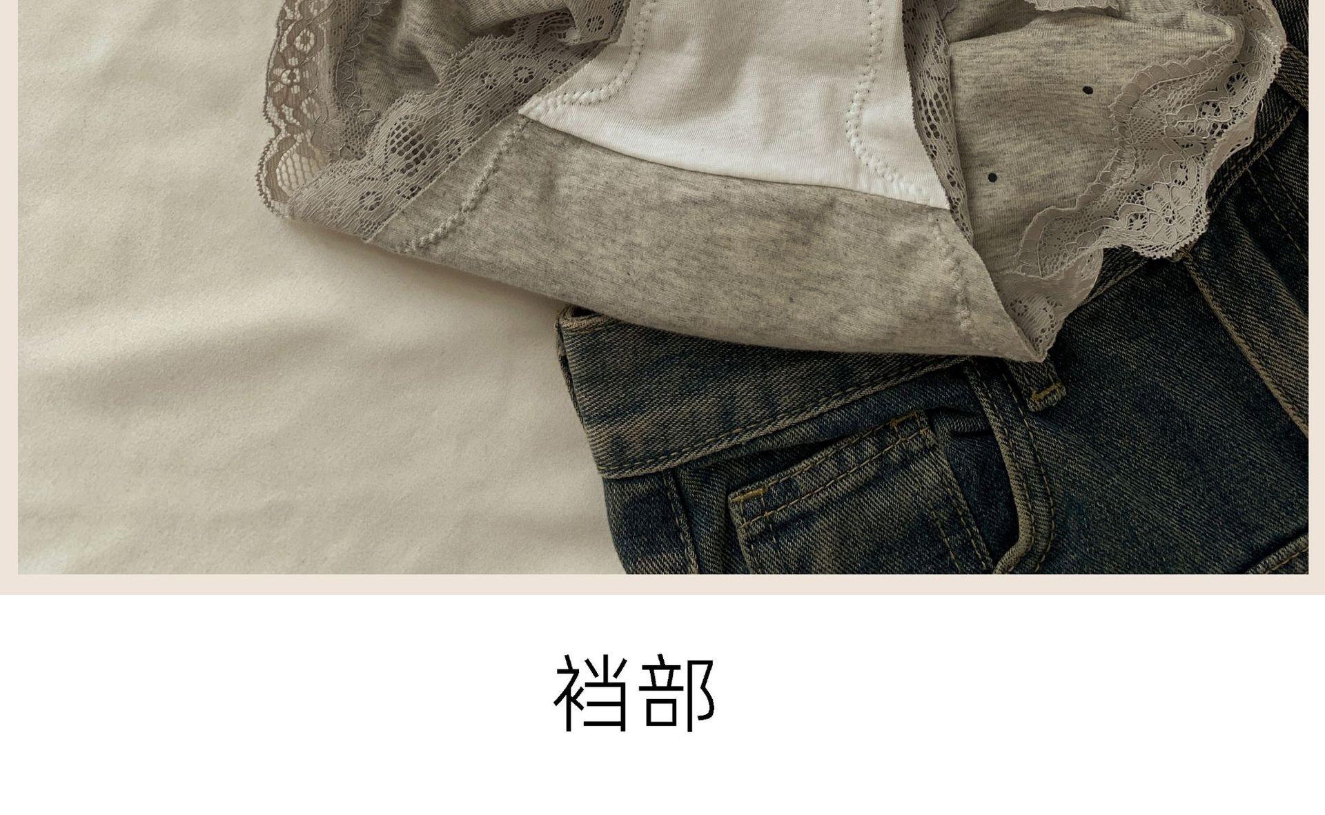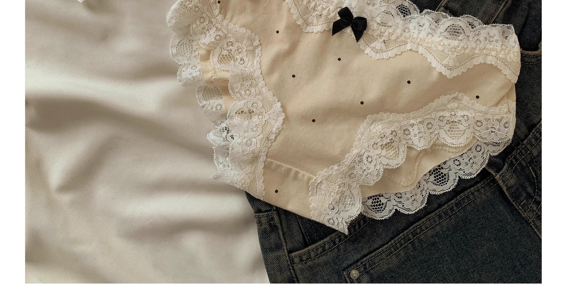 Ropa Interior de Algodón Puro Encaje Suave Vintage Corte Francés para Mujer Cintura Media Lunares Ondulados Sin Costuras Cómoda Transpirable Calzones de Algodón Puro