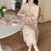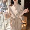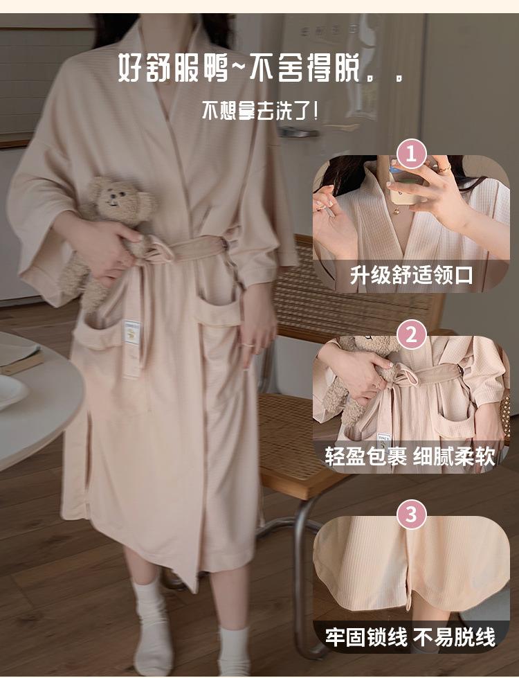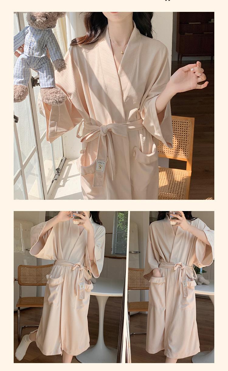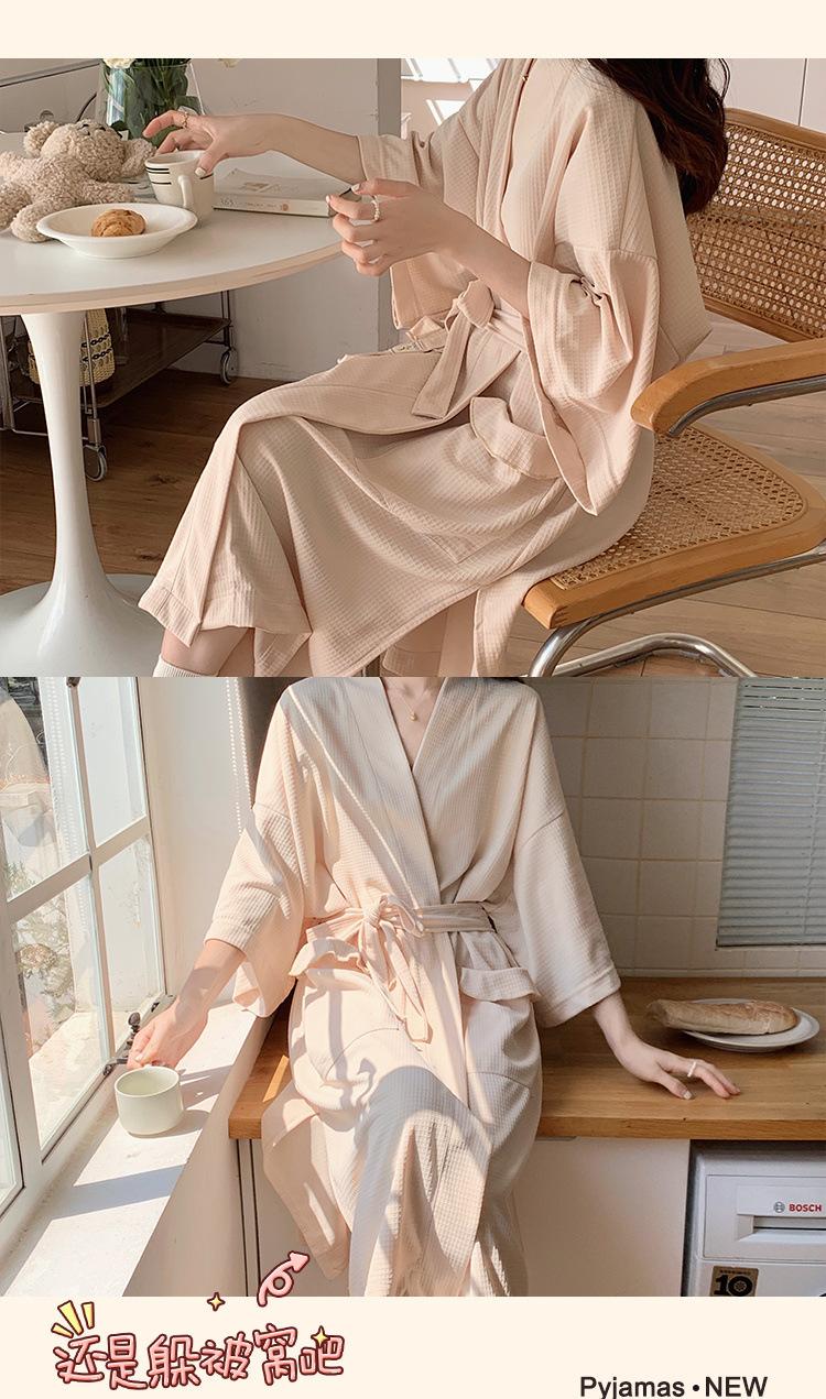 Camisón de verano para mujer, de media manga, de algodón gofrado, para el hogar, nuevo albornoz con cordones para mujer, pijama, bata de verano para la mañana.