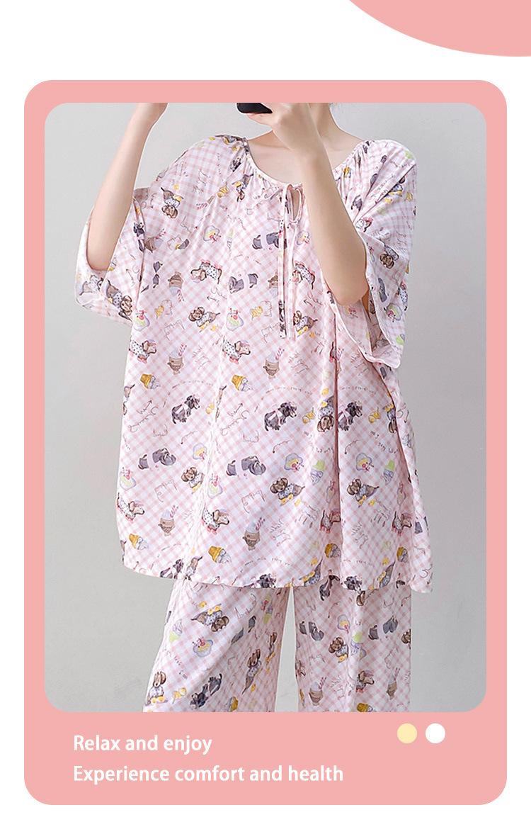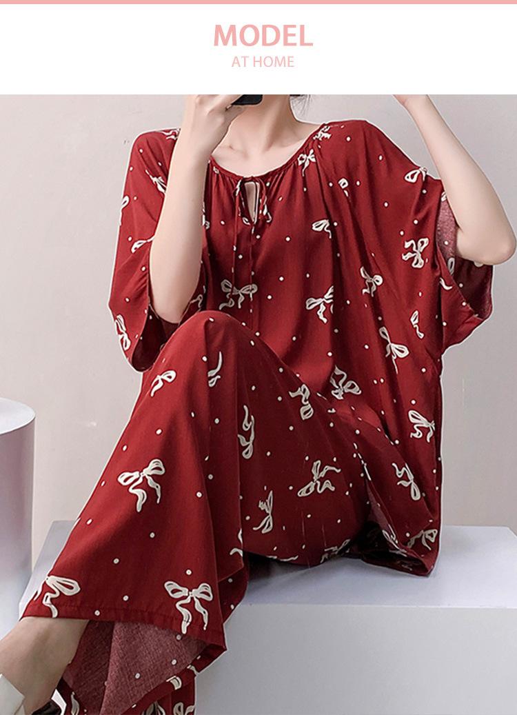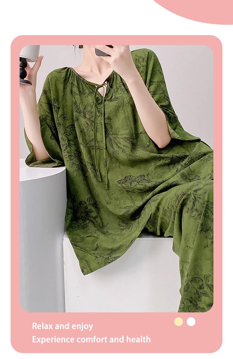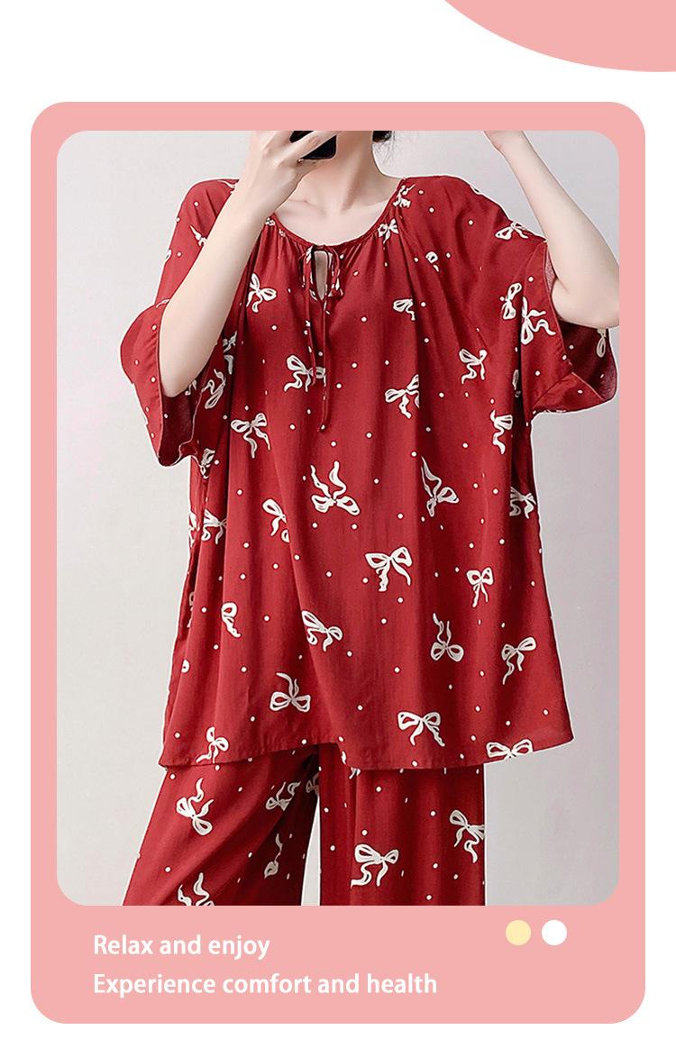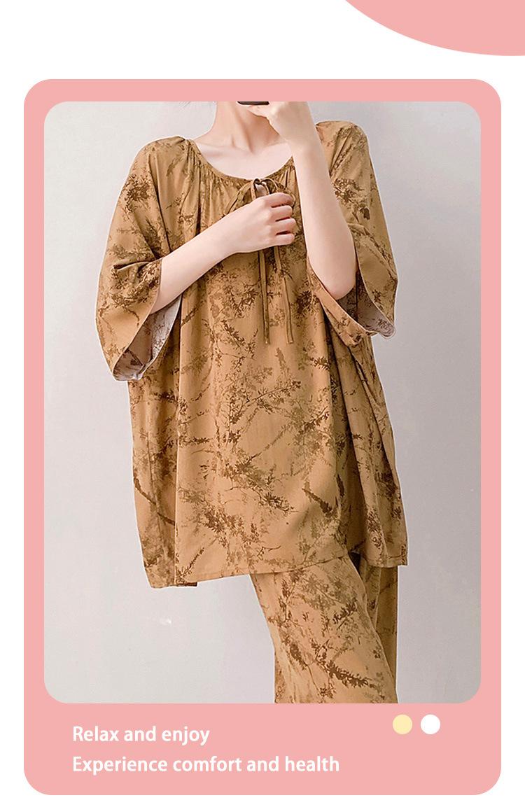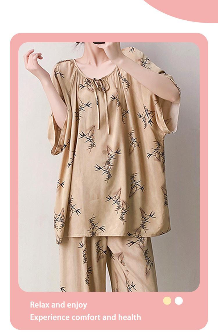 Pijamas de seda de algodón de manga corta para mujer, ropa de casa de estilo grande para primavera y verano, estilo chino, talla grande, novedad de 2025