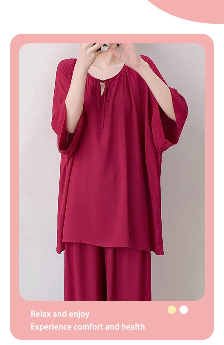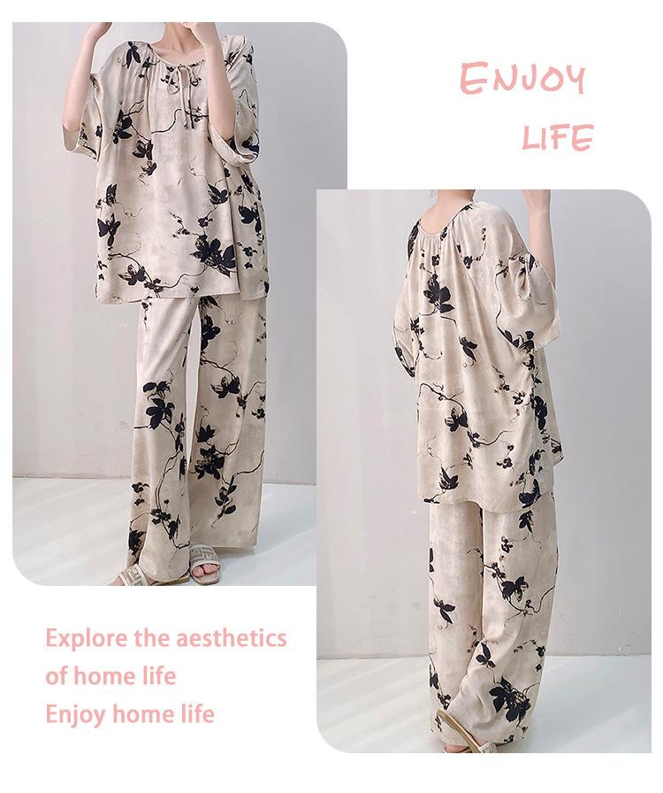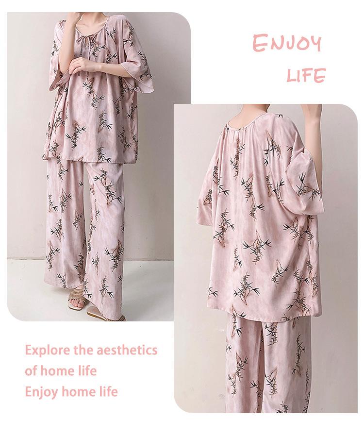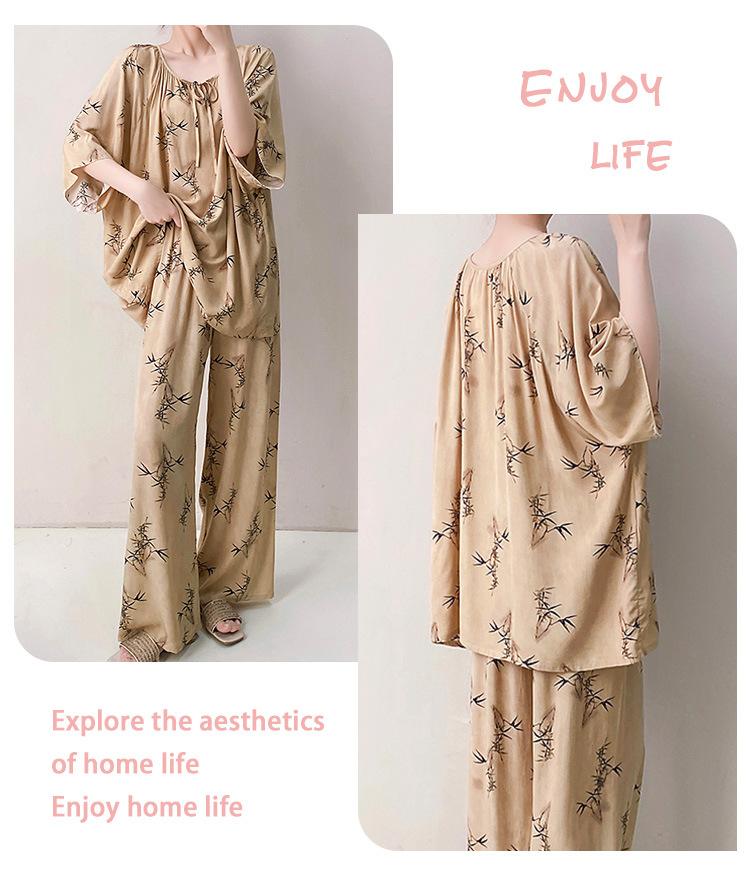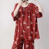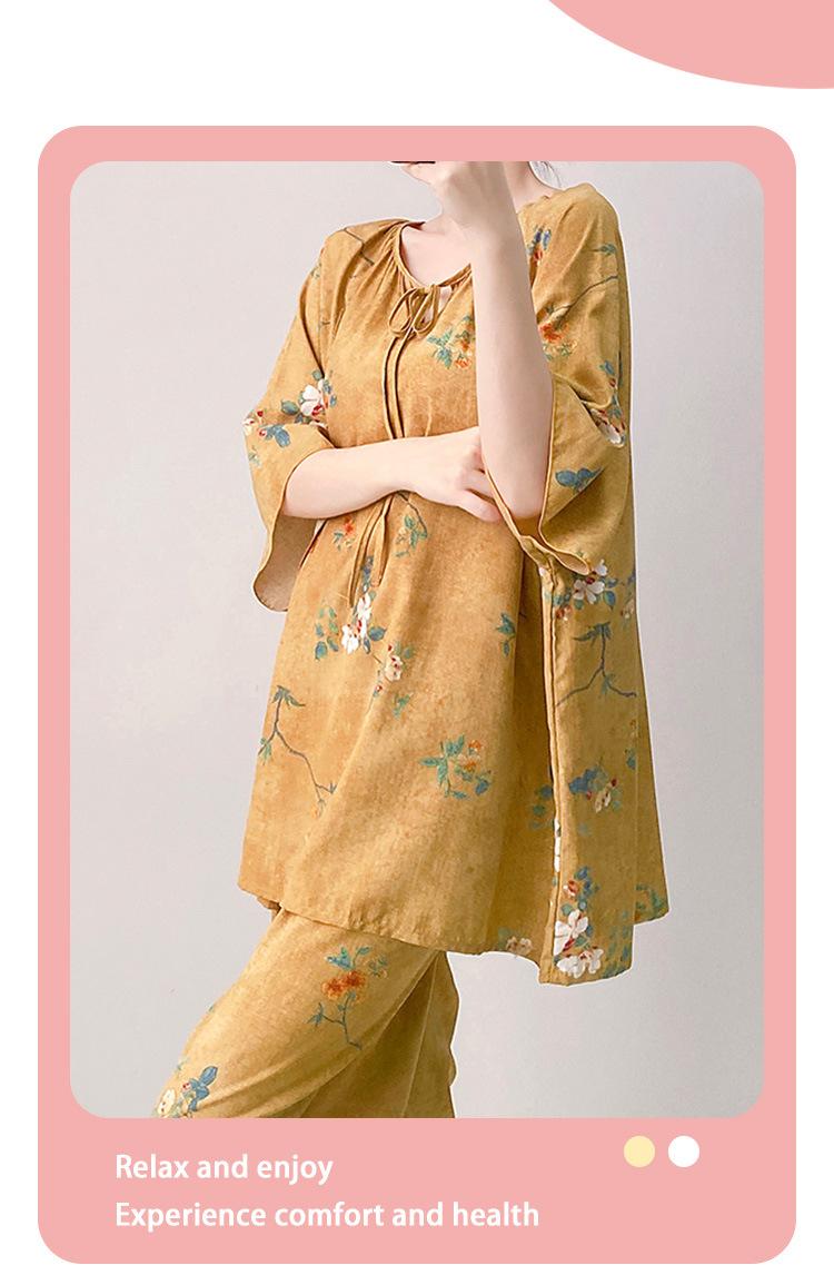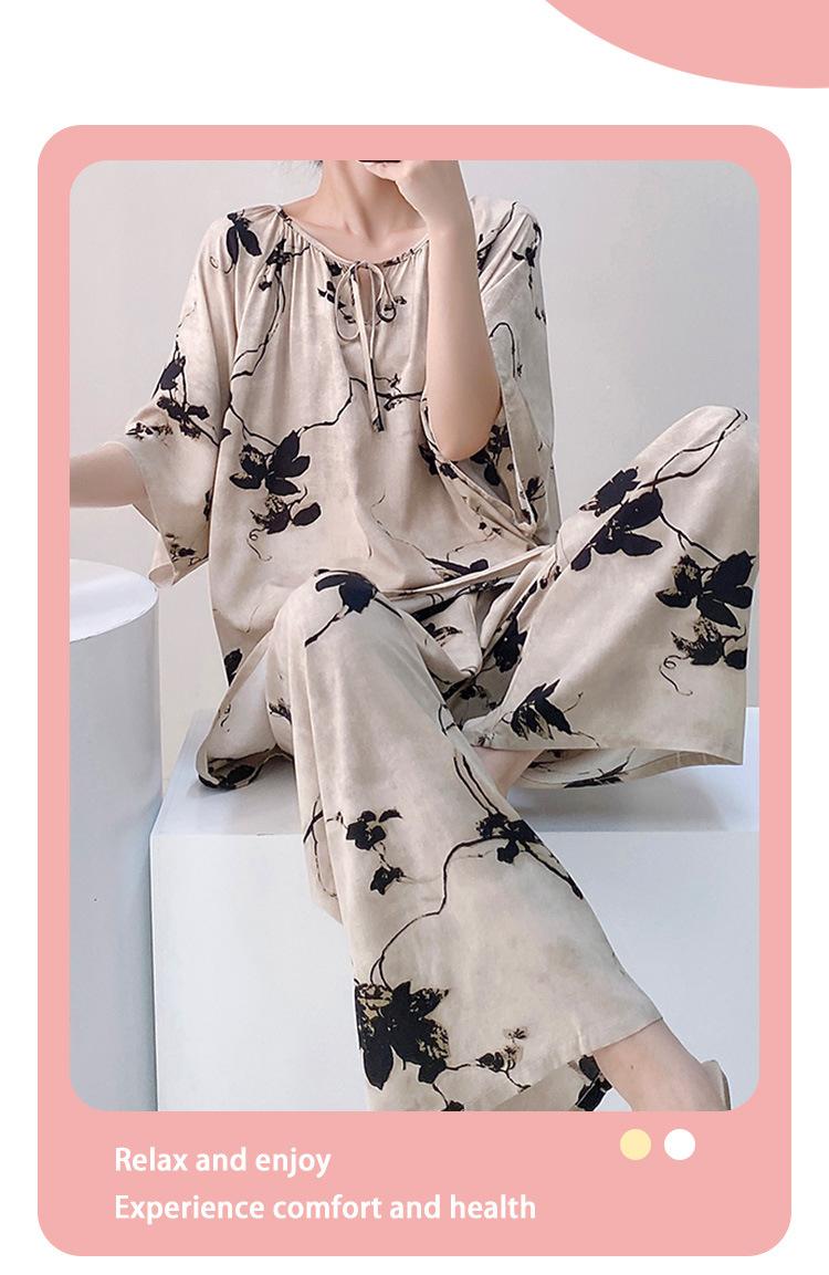 Pijamas de seda de algodón de manga corta para mujer, ropa de casa de estilo grande para primavera y verano, estilo chino, talla grande, novedad de 2025