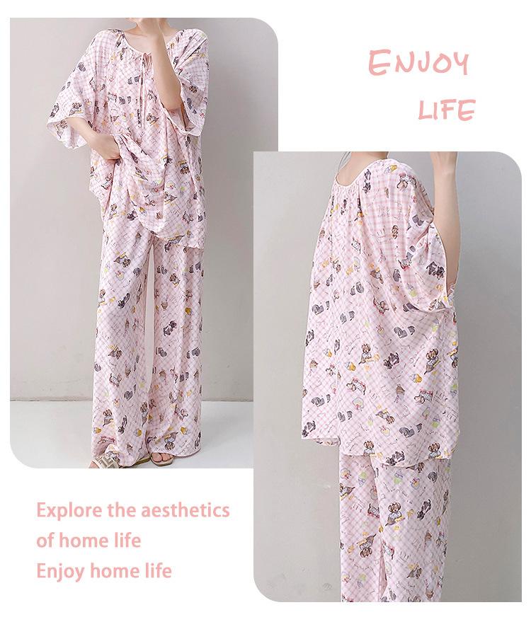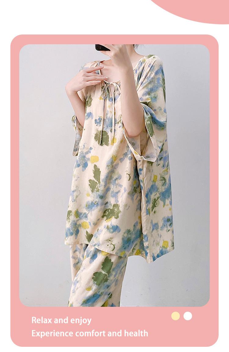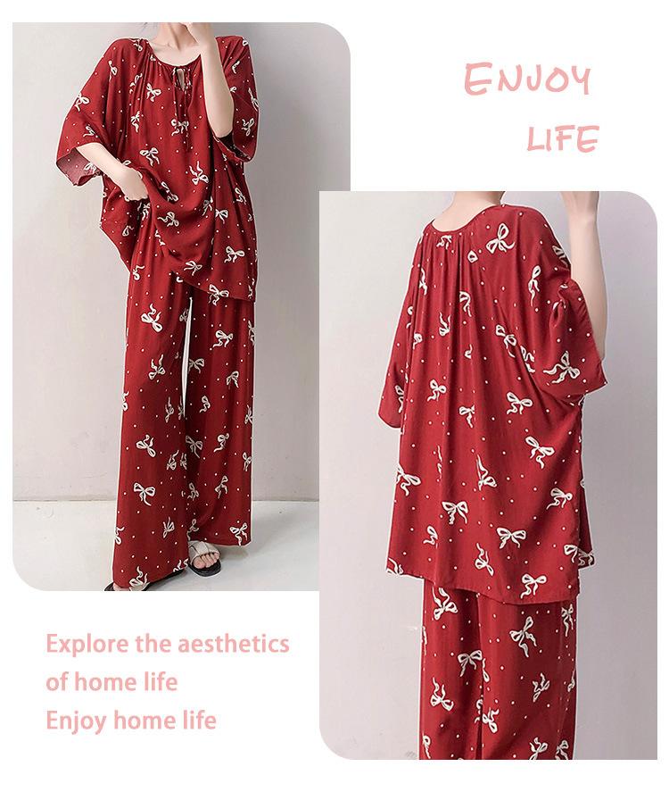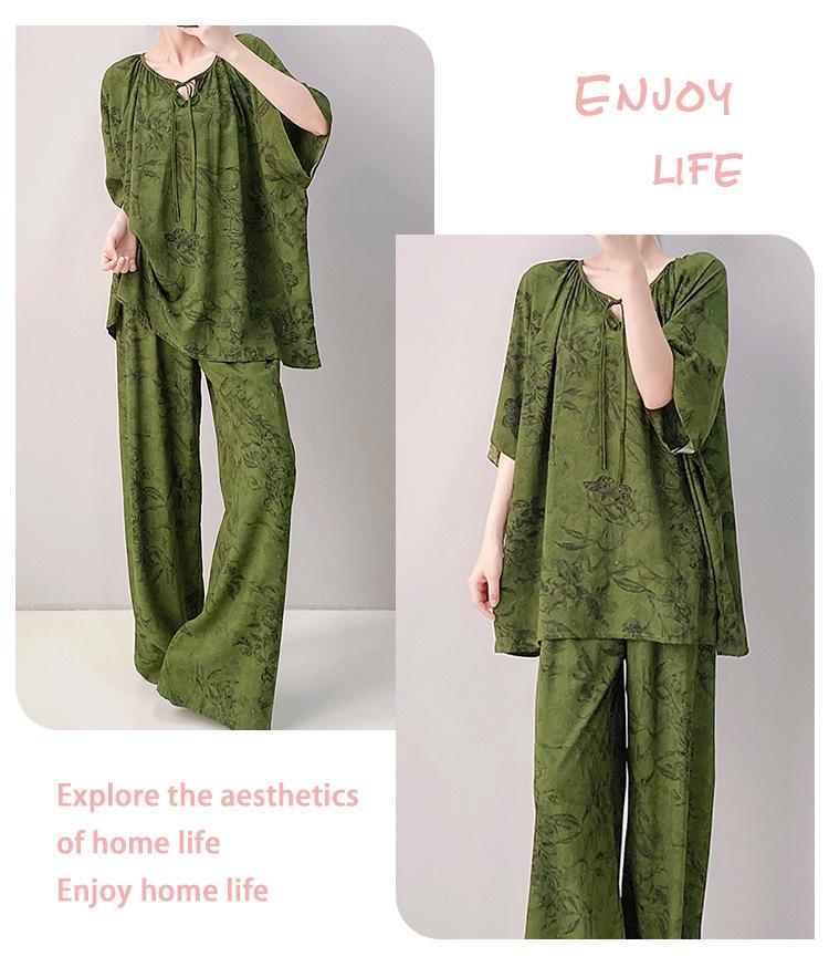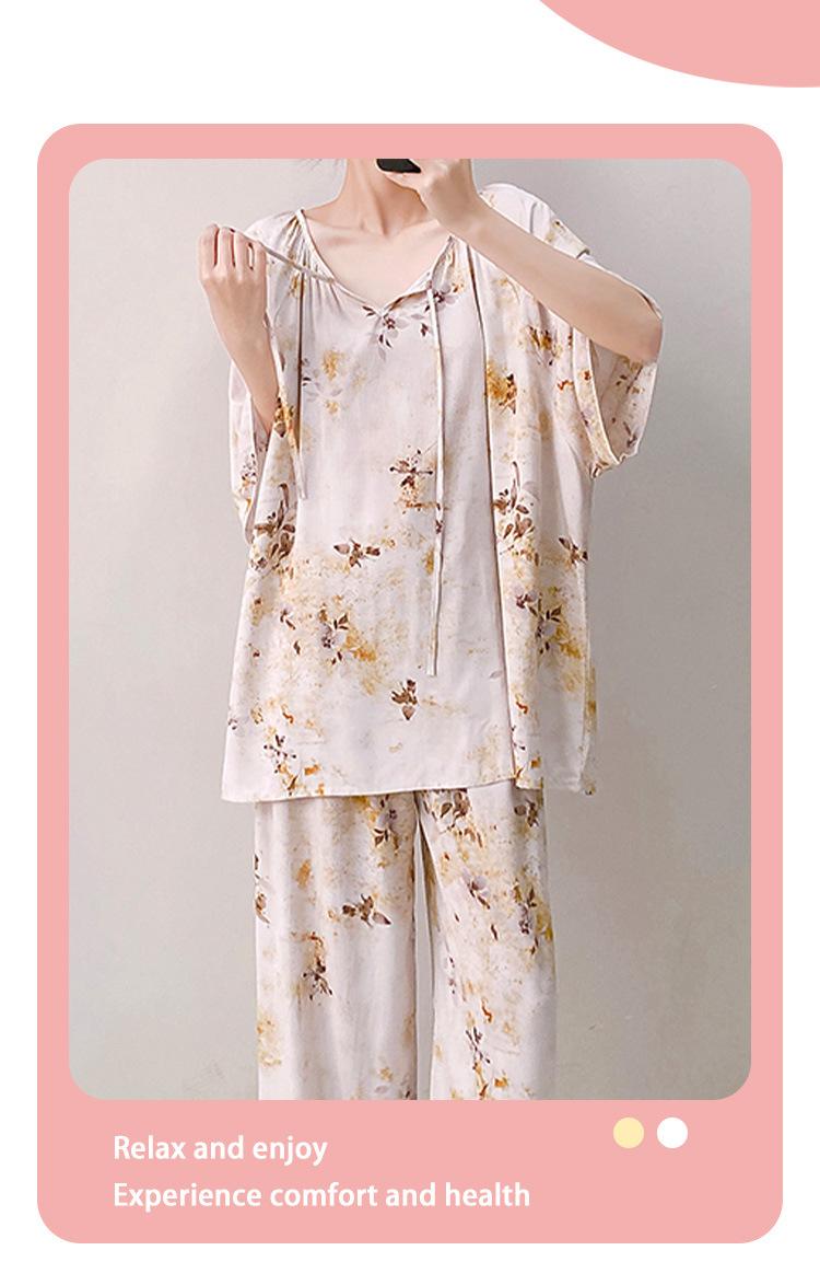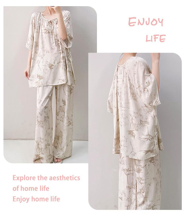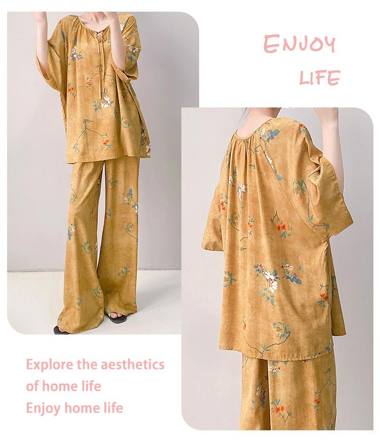Pijamas de seda de algodón de manga corta para mujer, ropa de casa de estilo grande para primavera y verano, estilo chino, talla grande, novedad de 2025