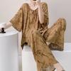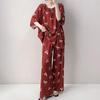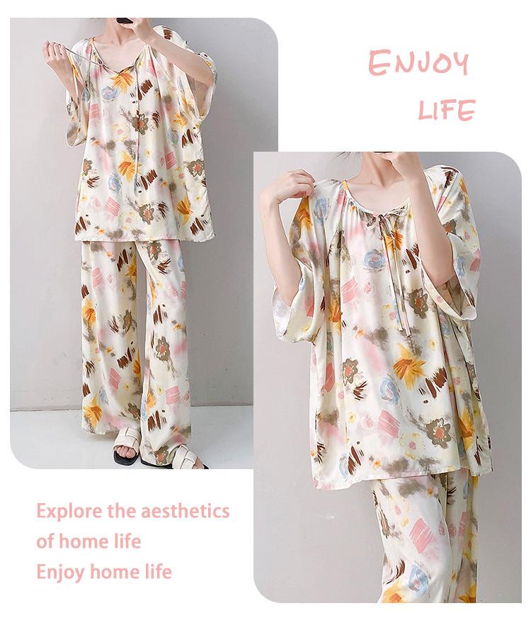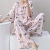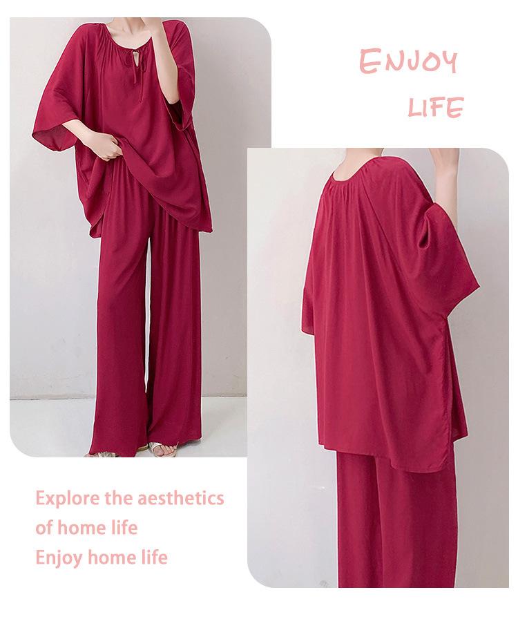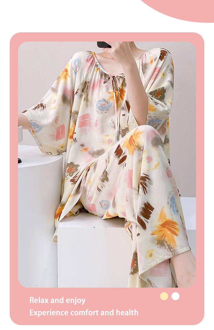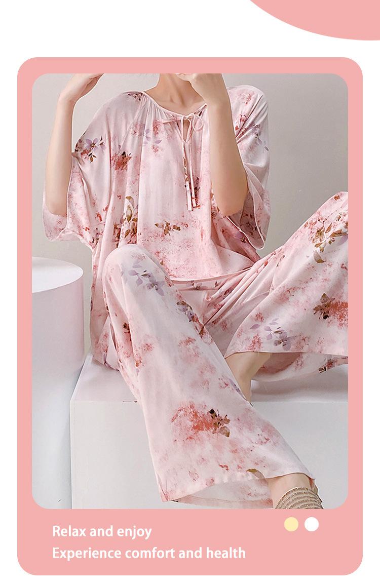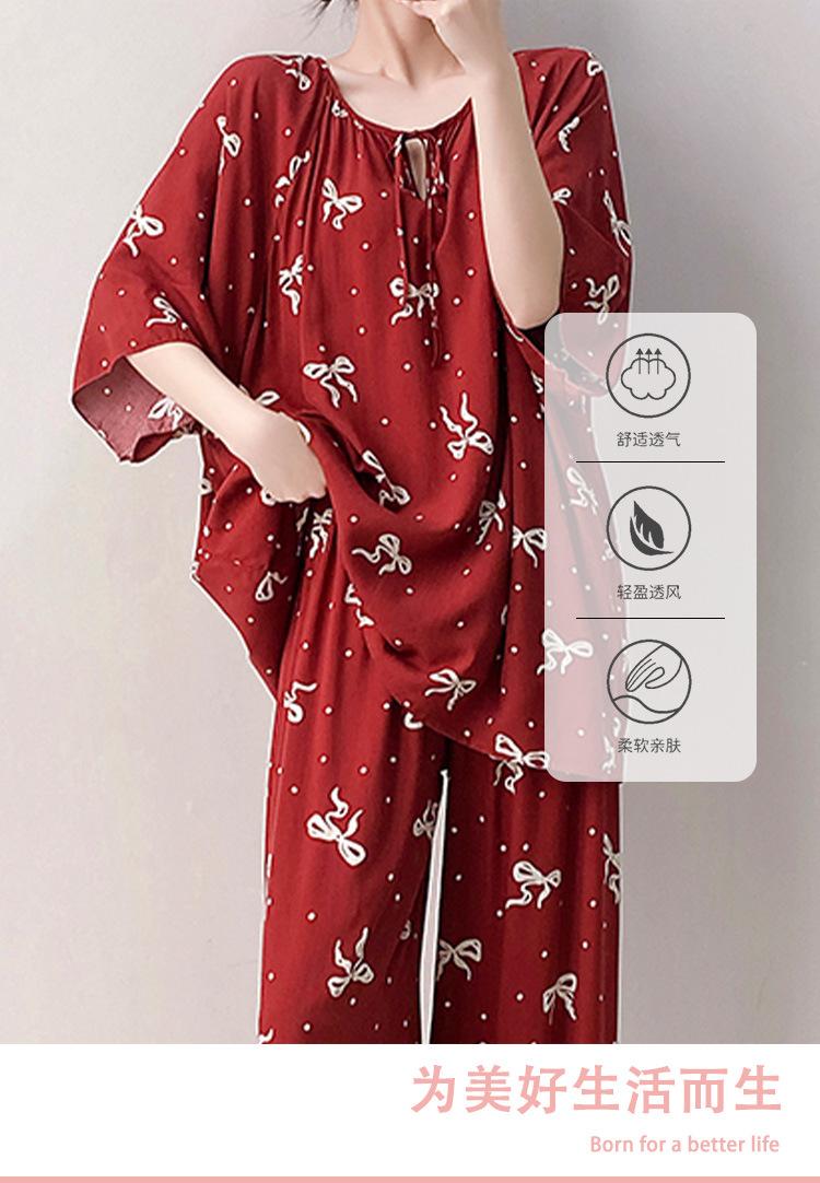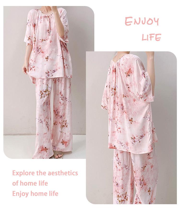 Pijamas de seda de algodón de manga corta para mujer, ropa de casa de estilo grande para primavera y verano, estilo chino, talla grande, novedad de 2025