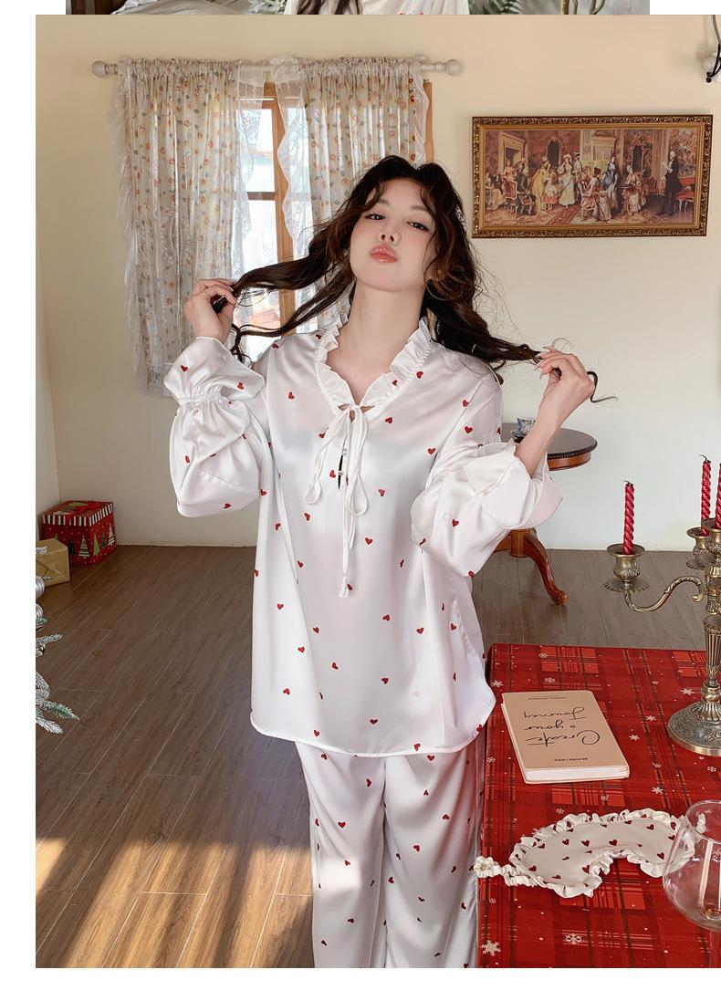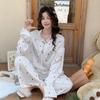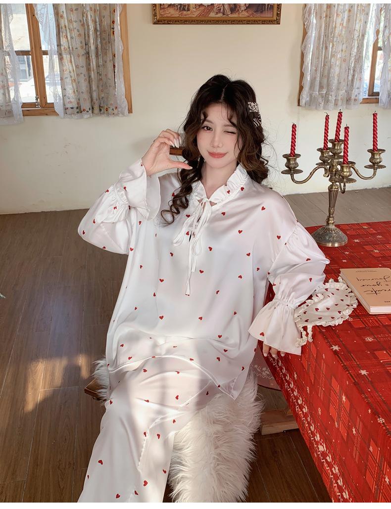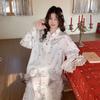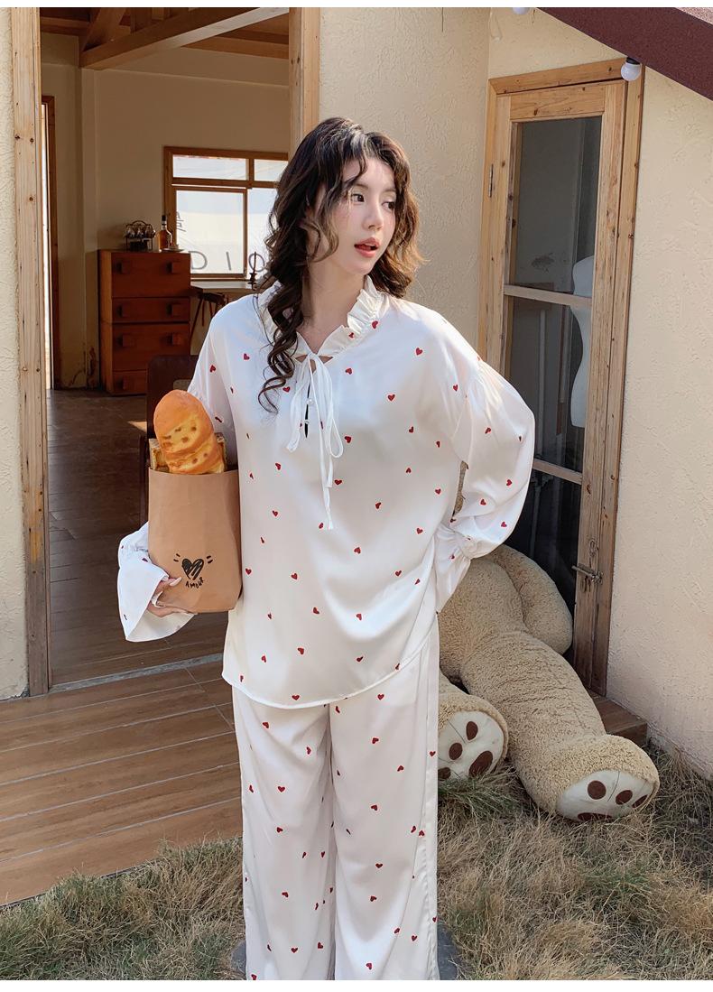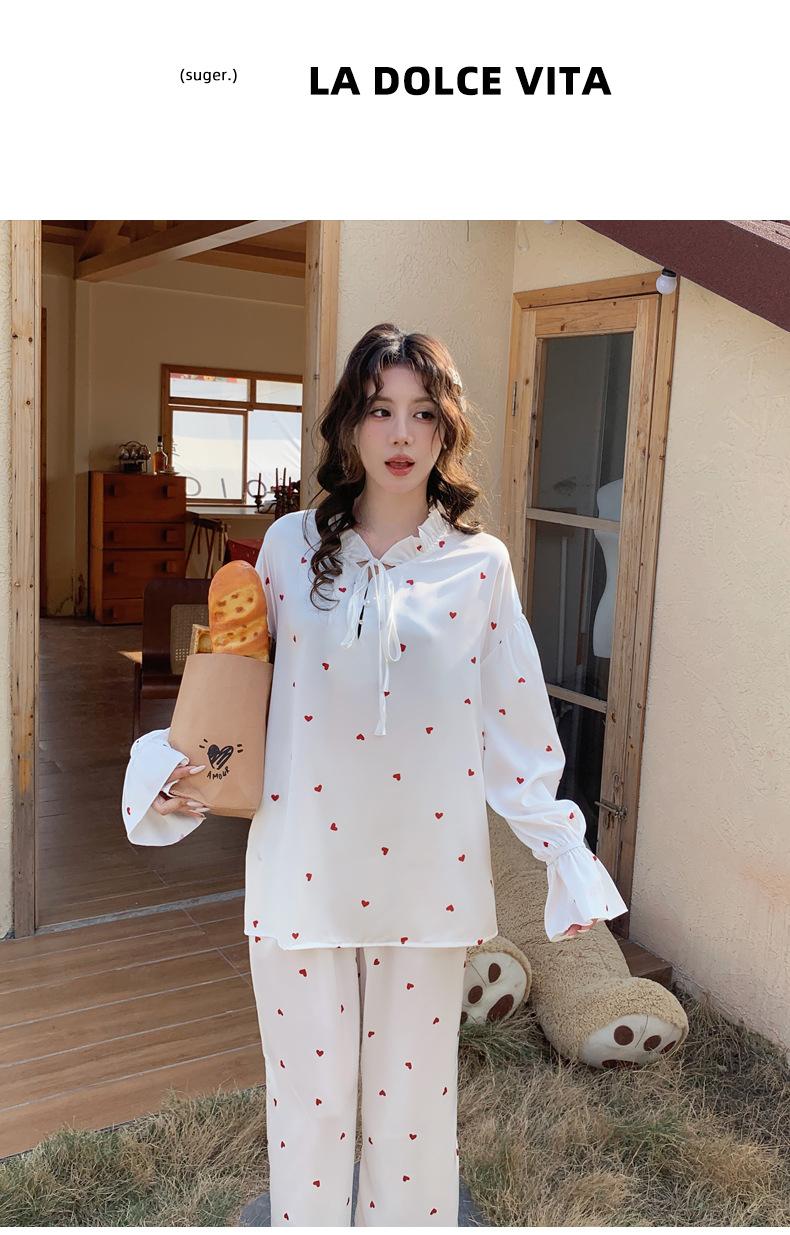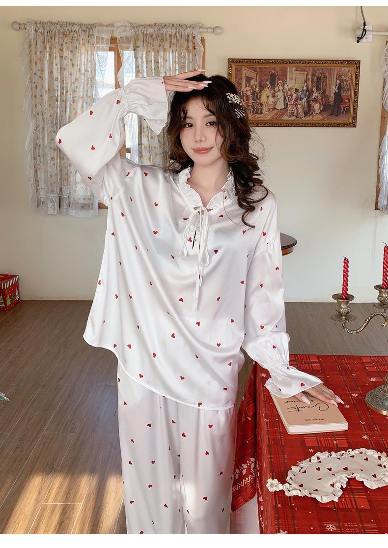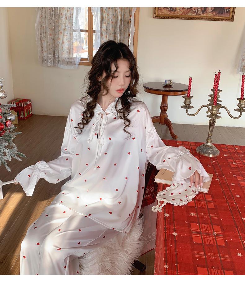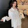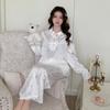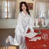 Pijamas de estilo francés recién llegados para mujer, primavera y otoño, seda de hielo, estilo princesa, estampado, pantalones de manga larga, traje, ropa de casa para uso exterior.