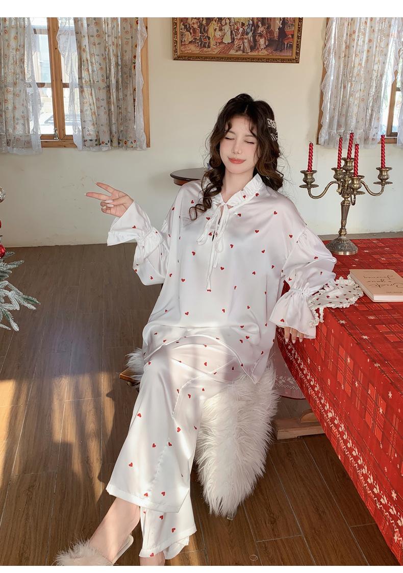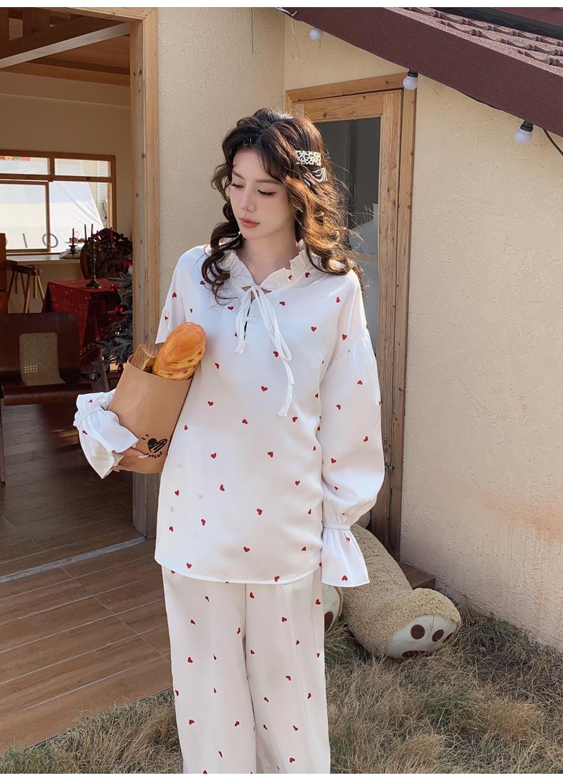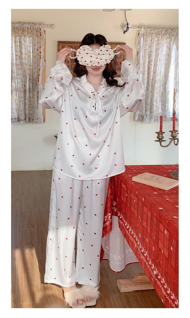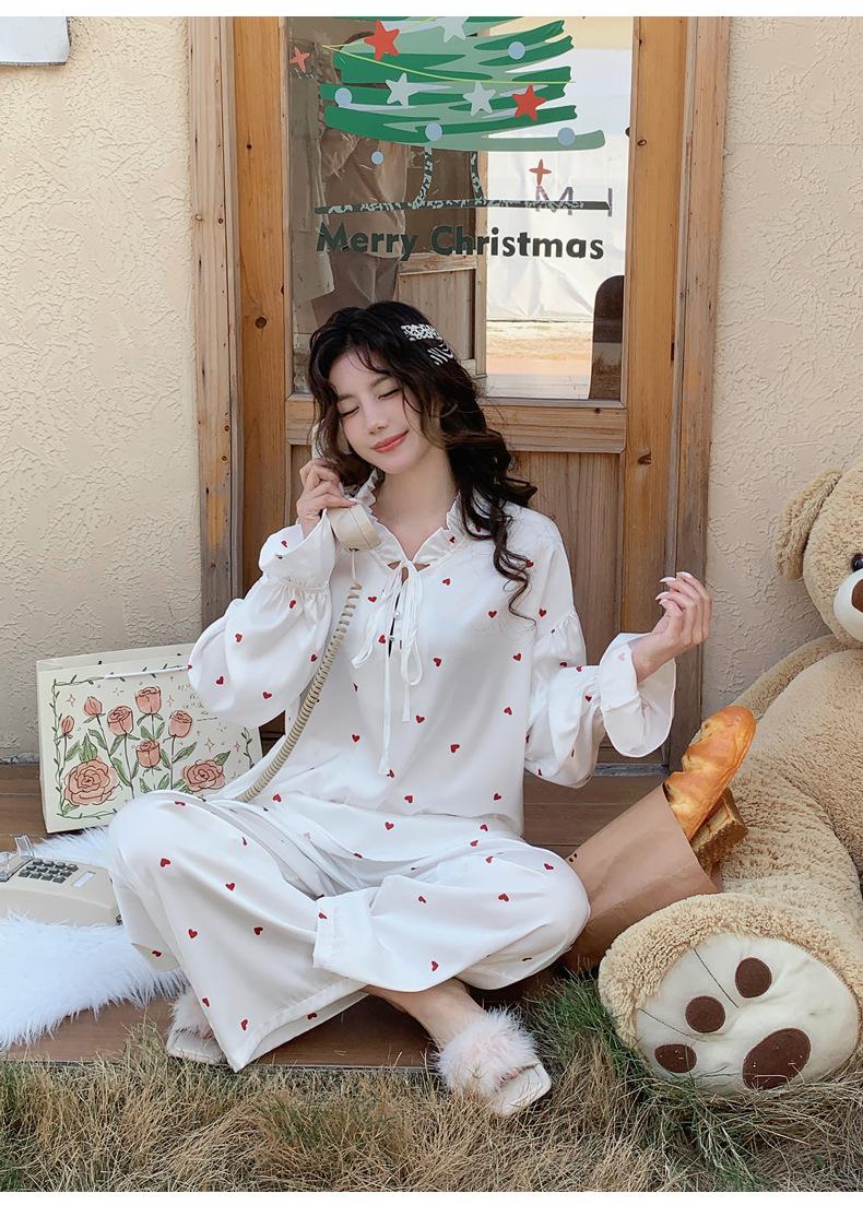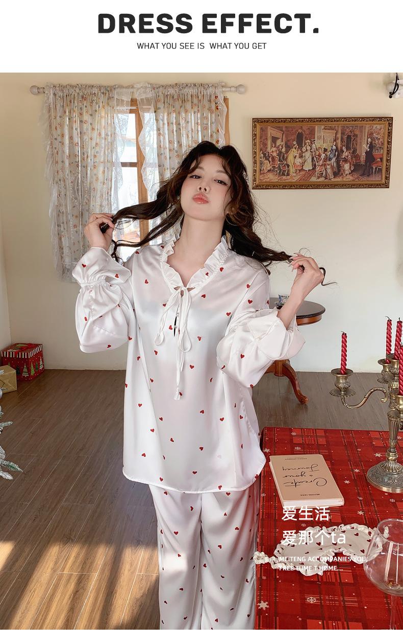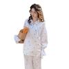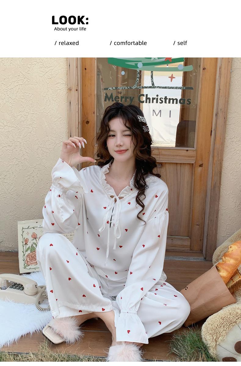 Pijamas de estilo francés recién llegados para mujer, primavera y otoño, seda de hielo, estilo princesa, estampado, pantalones de manga larga, traje, ropa de casa para uso exterior.
