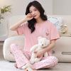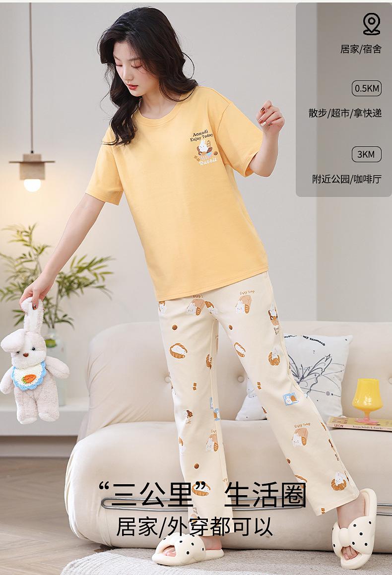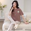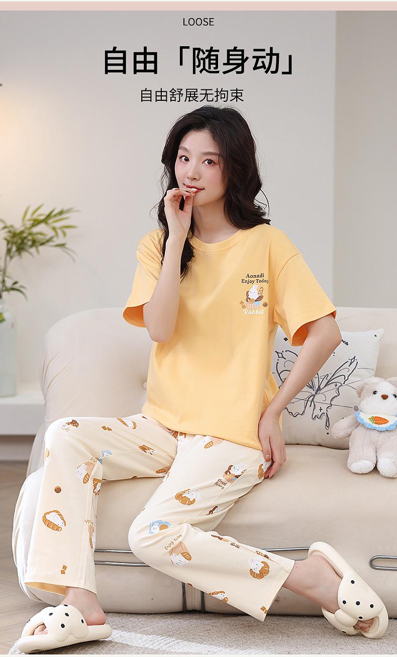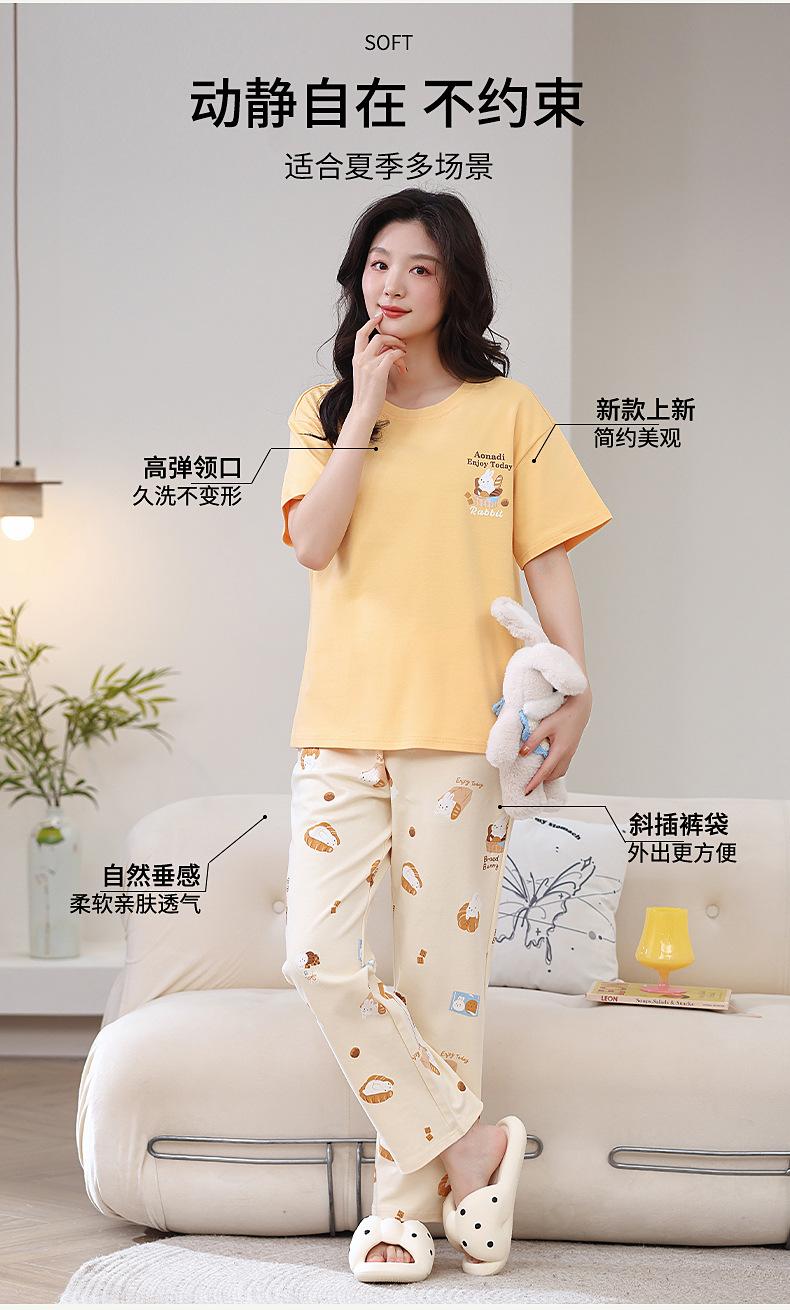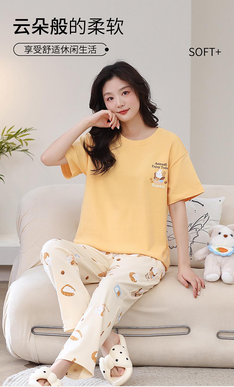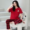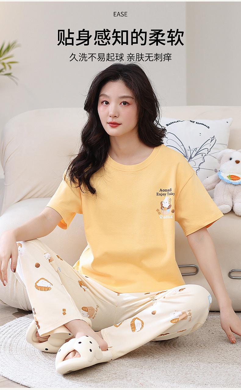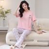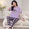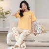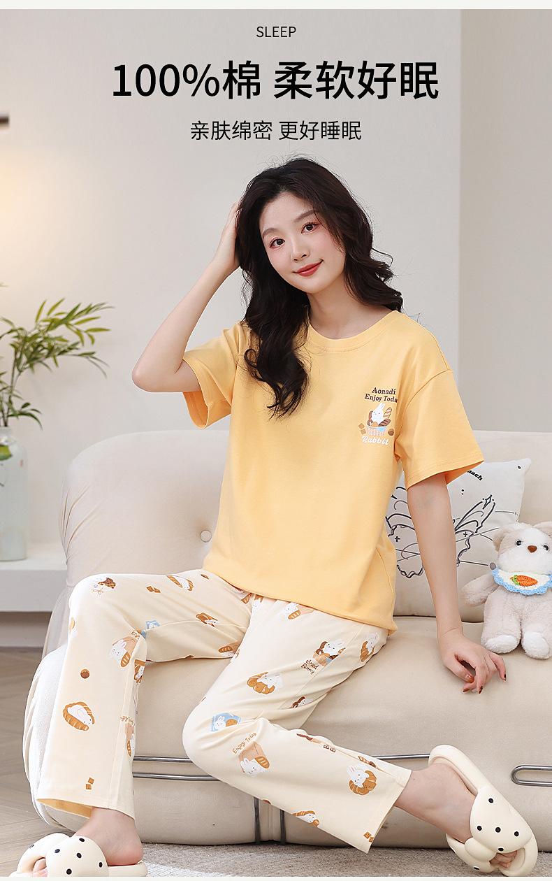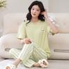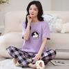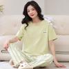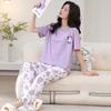 Pijama Nuevo de Verano para Mujer de Manga Corta y Pantalón Cómodo Transpirable Algodón Puro Delgado Casual Pulóver Ropa para el Hogar para Exterior Cubierta