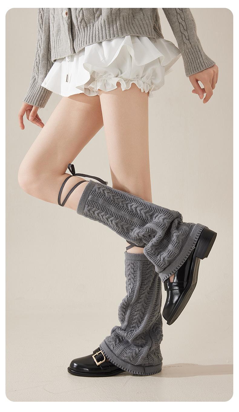 Calcetines de Punto Grises con Correas Torcidas, Calcetines de Rizo, Cubre Pantorrillas Sexys Y2K, Elementos de Subcultura Estudiantil