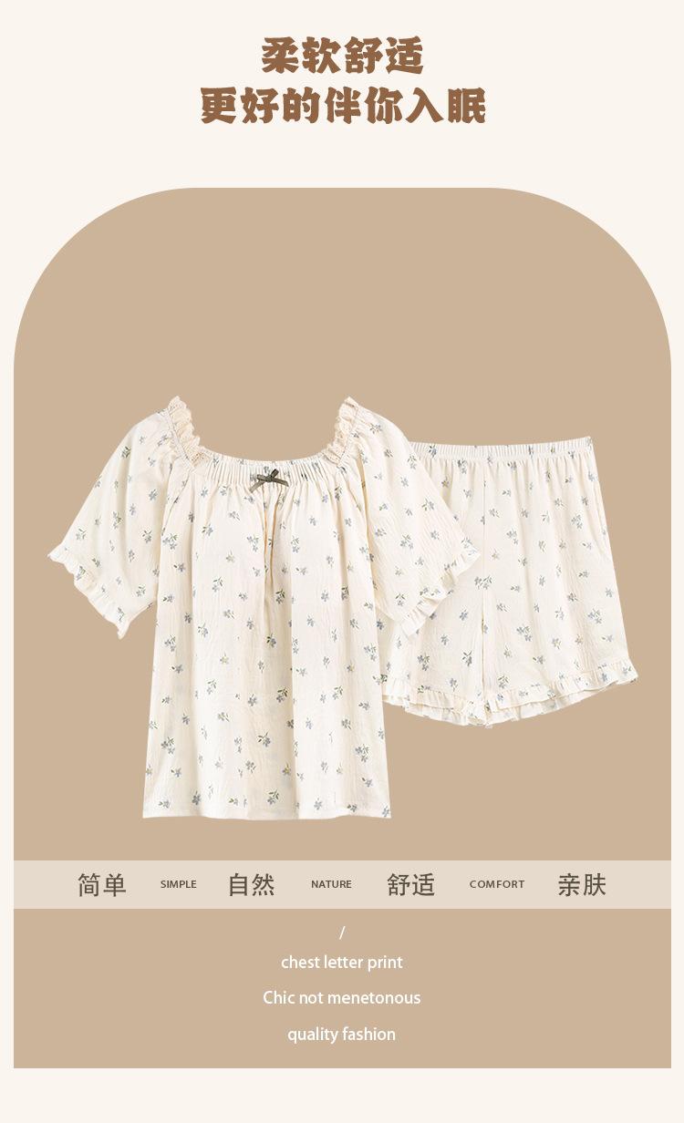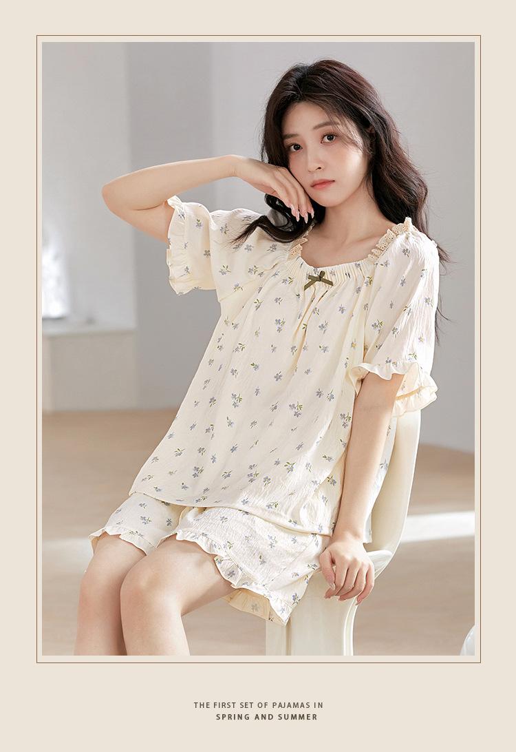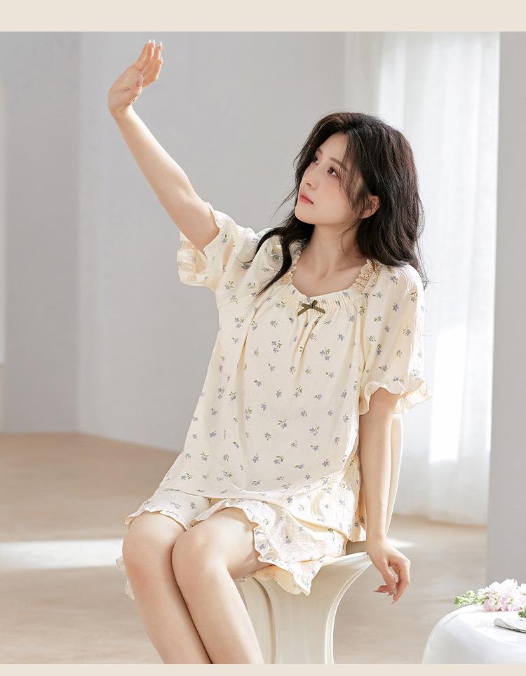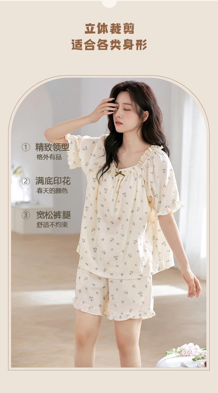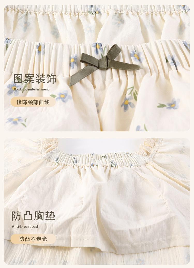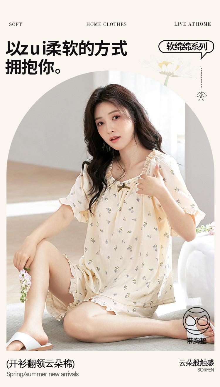 Pijama con almohadilla para el pecho para mujer, pantalones cortos de verano de manga corta, jersey bonito de estilo coreano, ropa de casa fina con estampado floral de talla grande