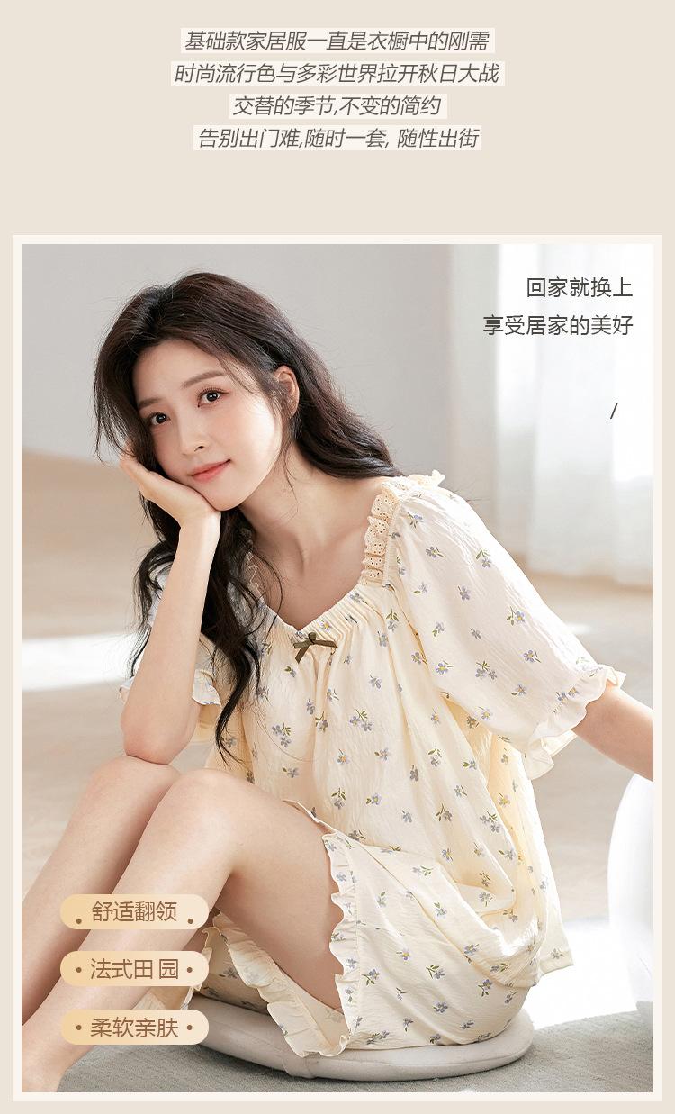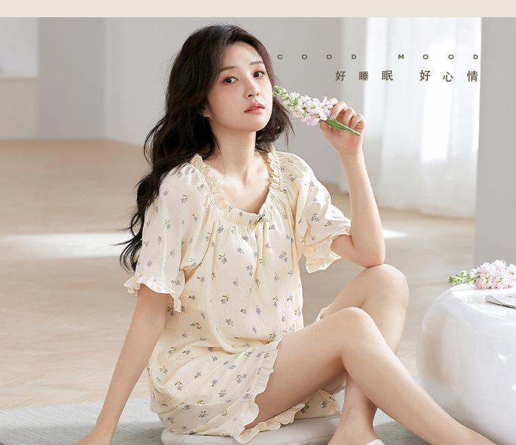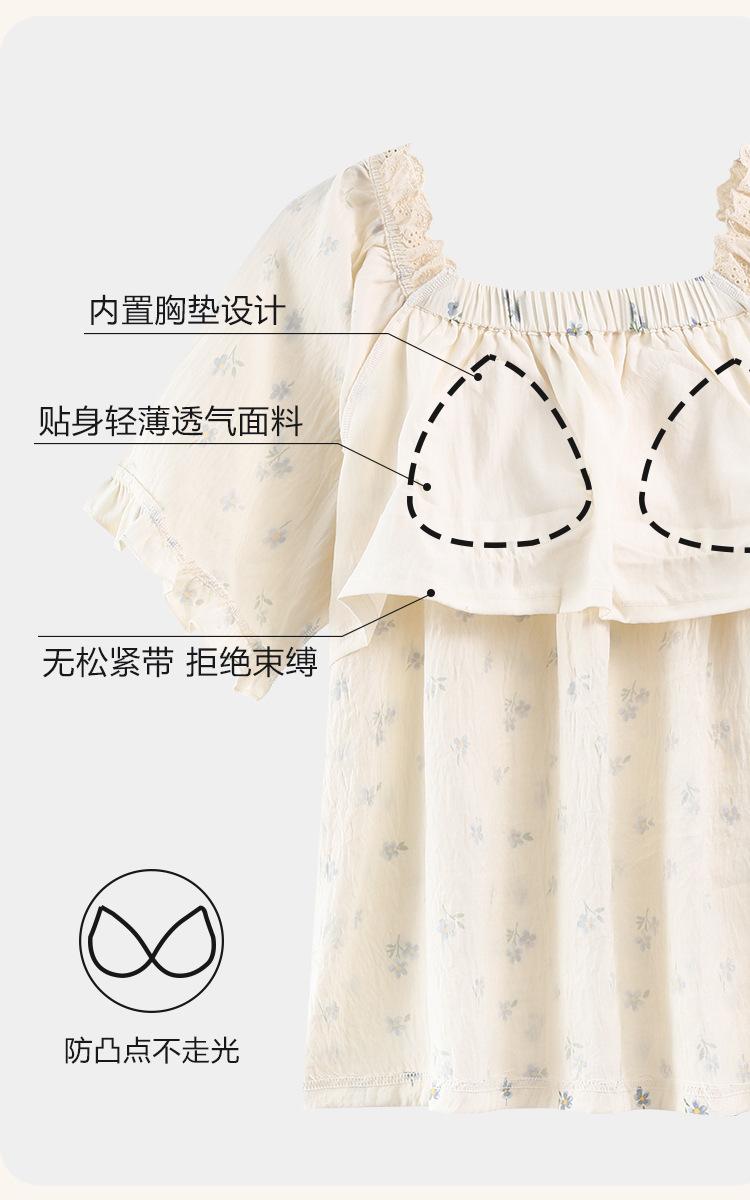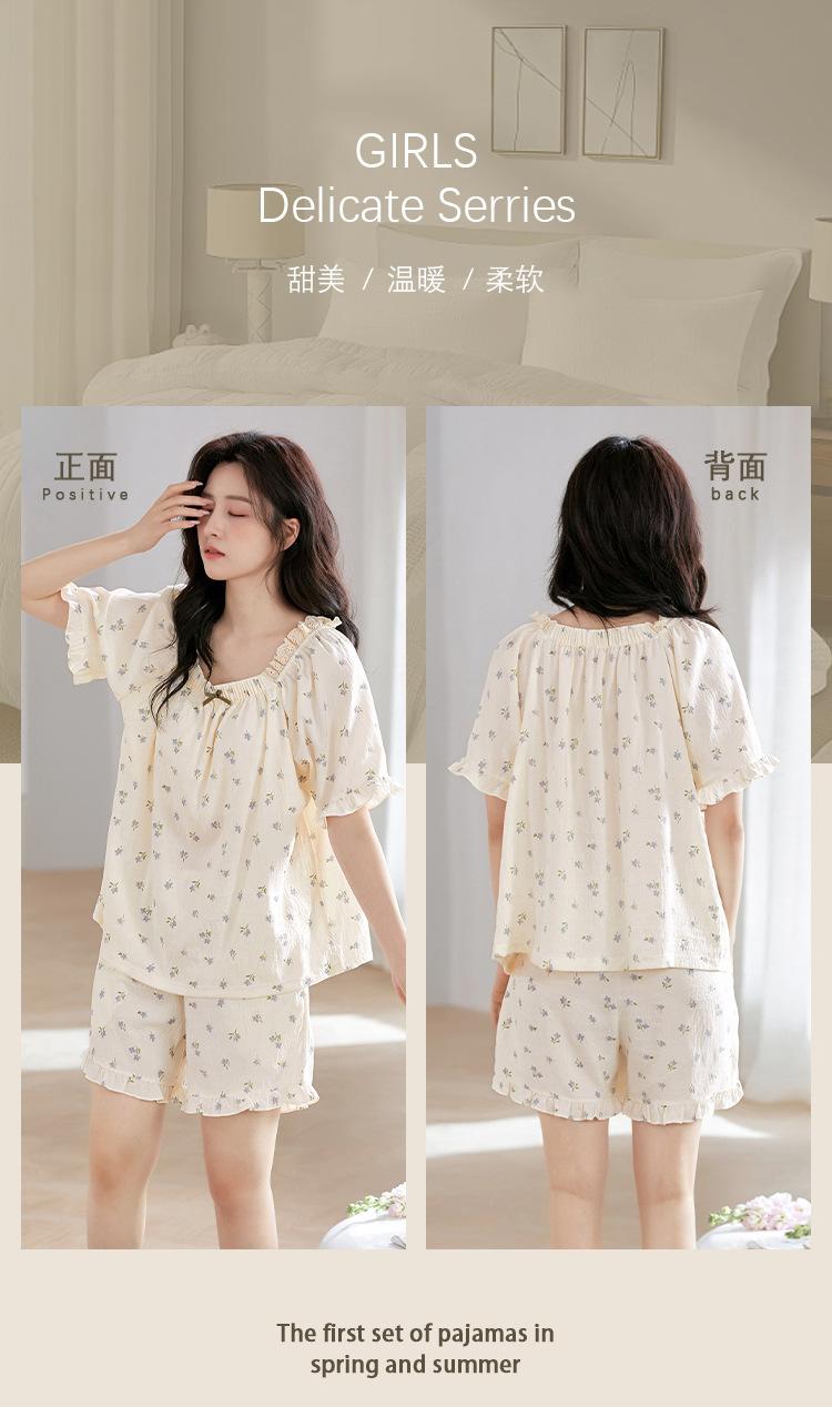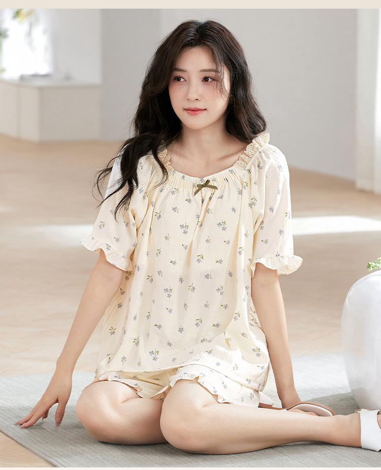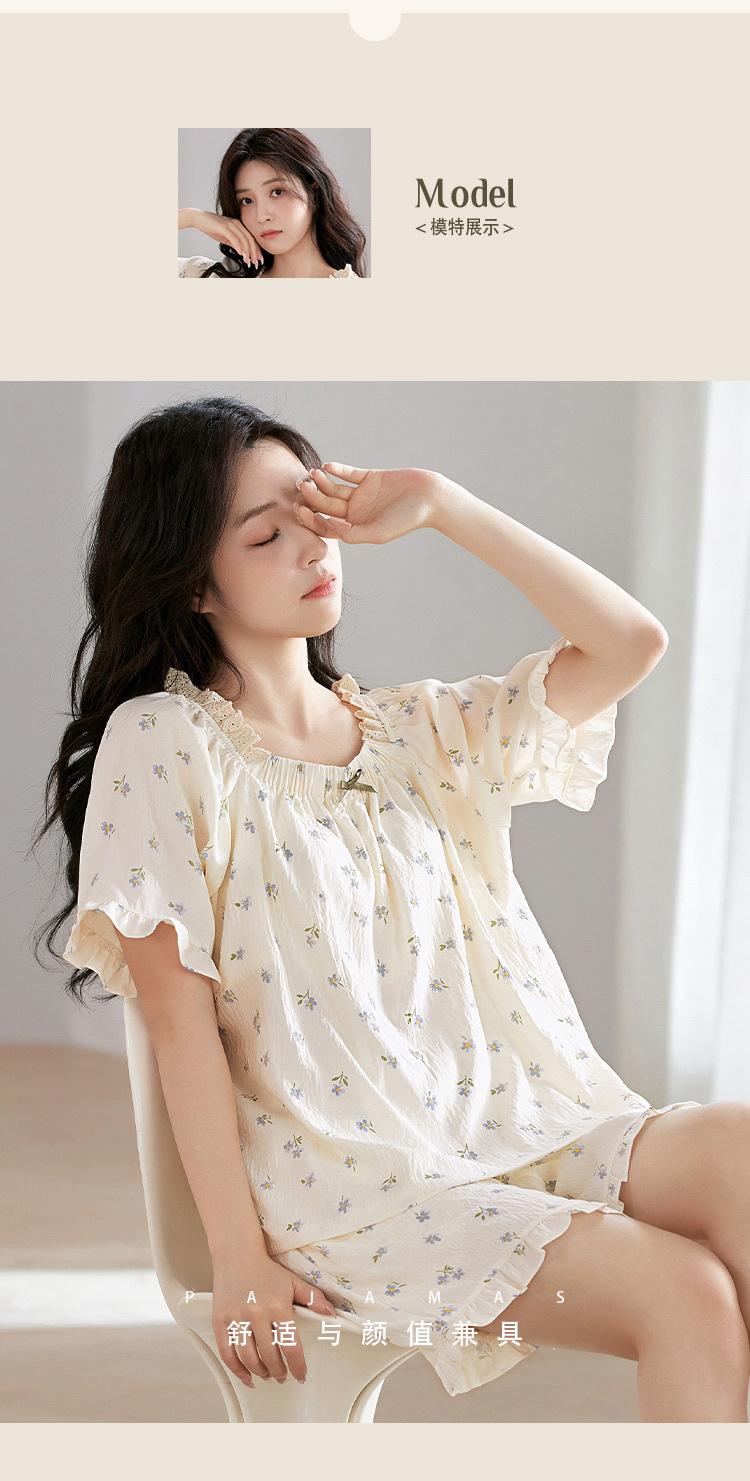 Pijama con almohadilla para el pecho para mujer, pantalones cortos de verano de manga corta, jersey bonito de estilo coreano, ropa de casa fina con estampado floral de talla grande