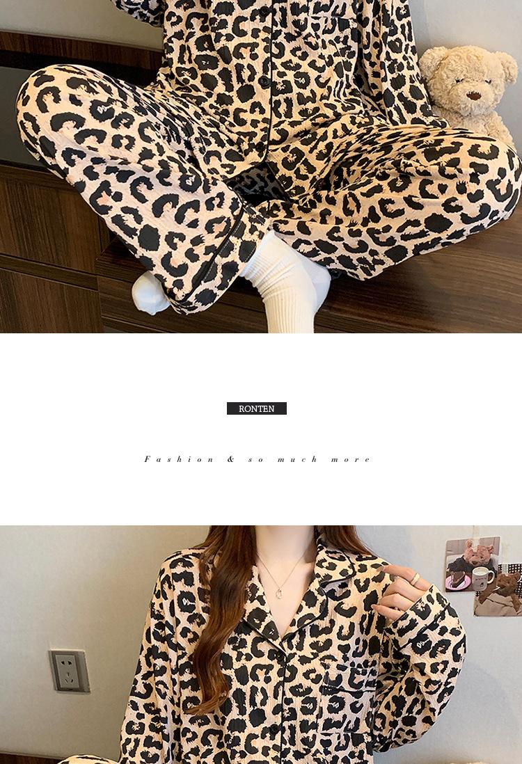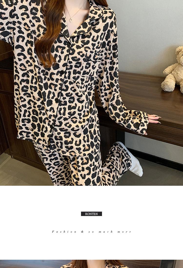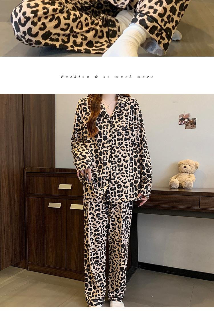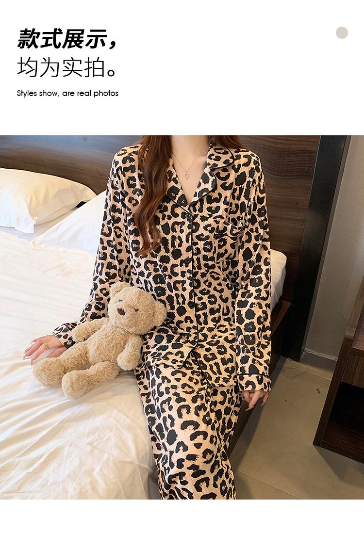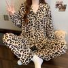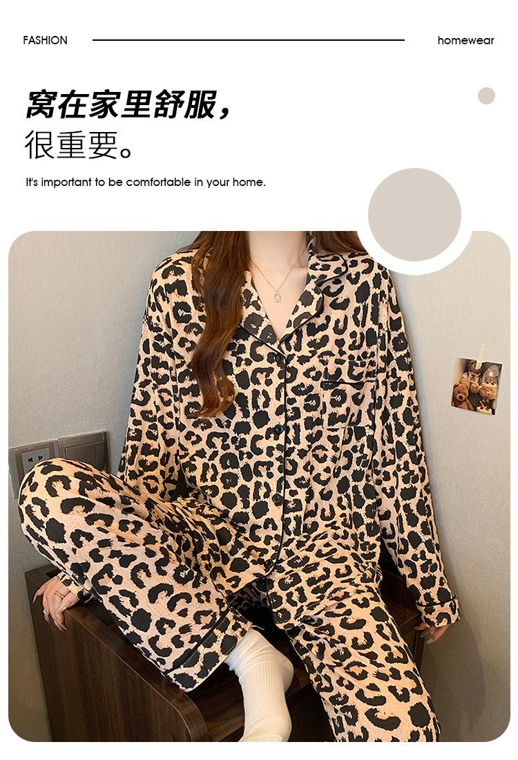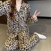 Pijama holgado con estampado de leopardo para mujer, nueva versión coreana de primavera, ropa de casa, pantalones de manga larga, traje informal, venta al por mayor