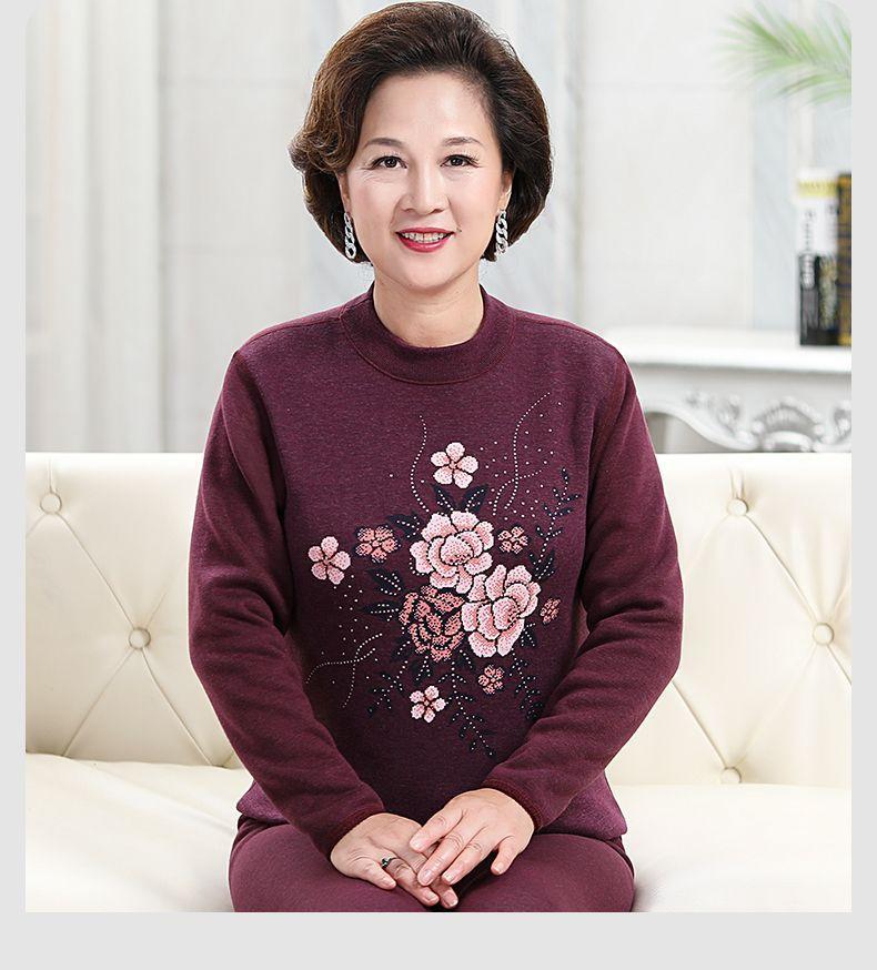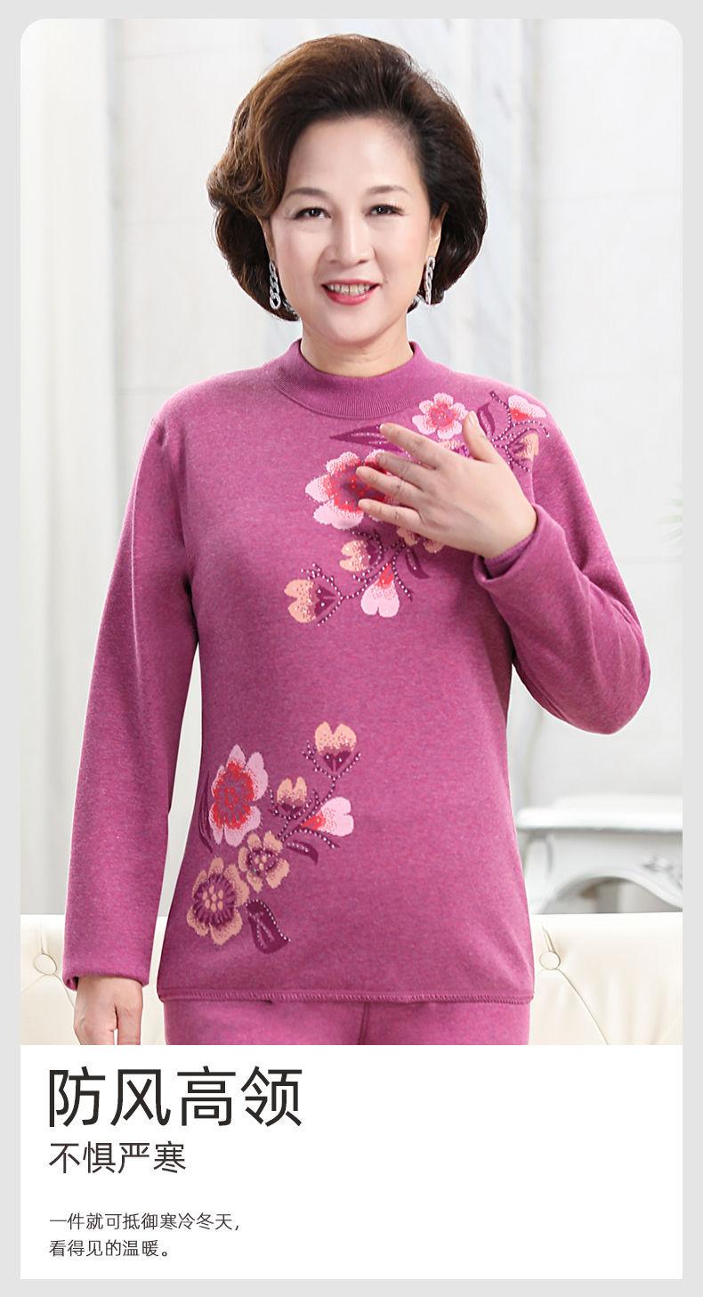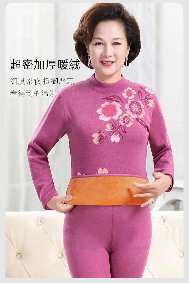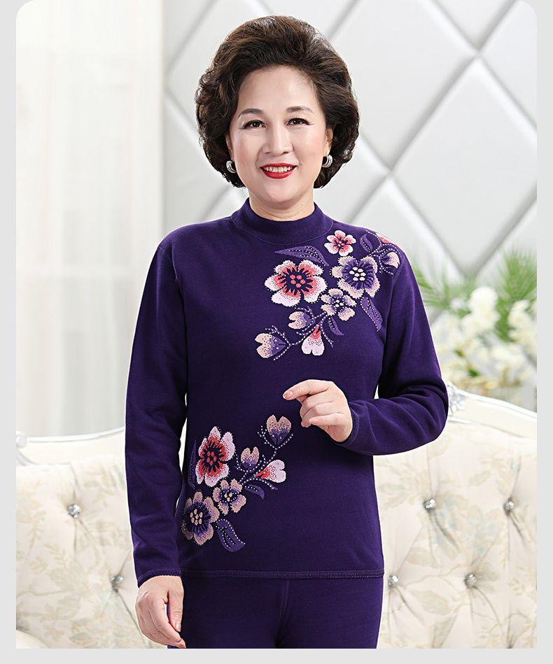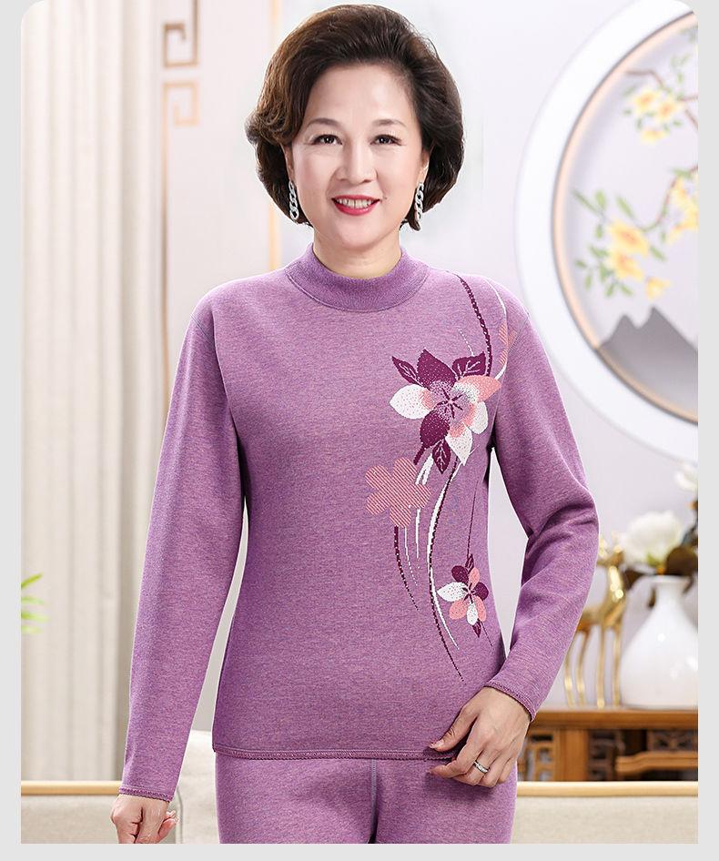 Conjunto de Ropa Interior Térmica para Mujeres Mayores para Madres, Tops y Pantalones Estampados de Otoño e Invierno para Mujeres de Mediana Edad y Mayores