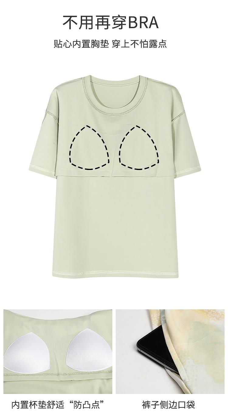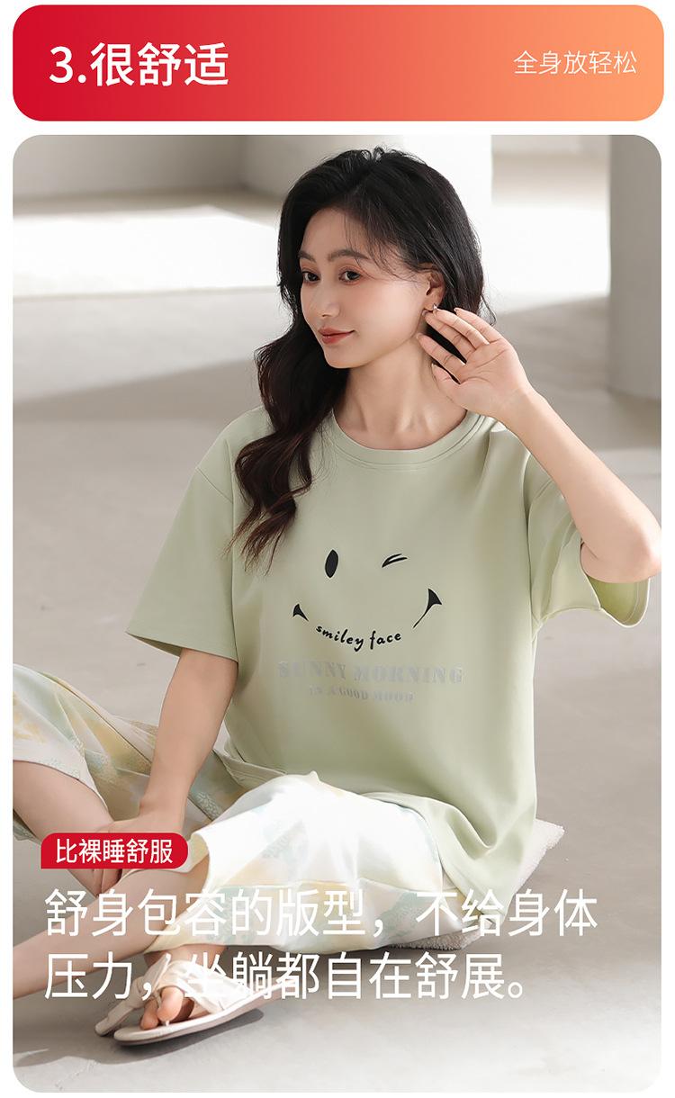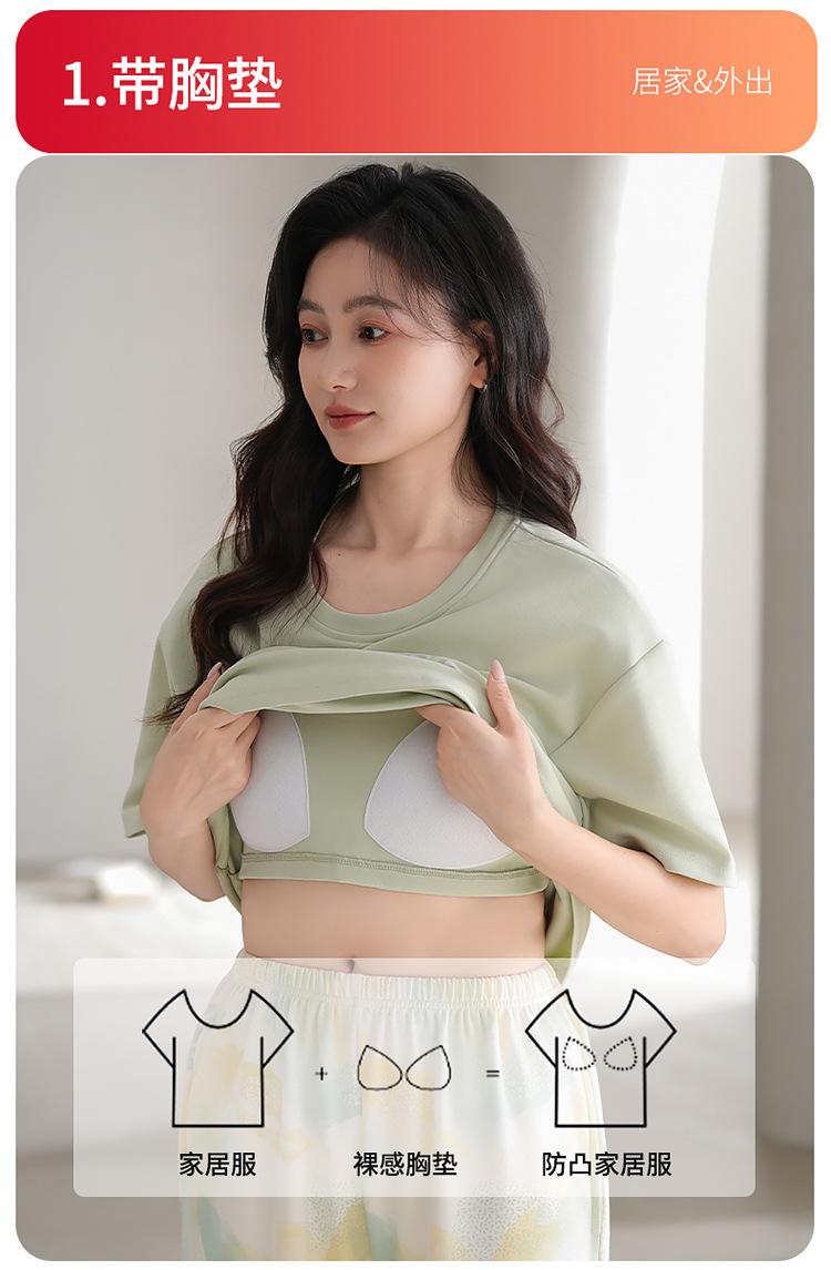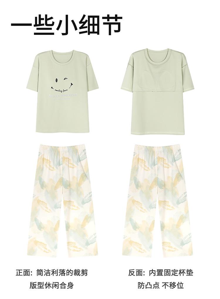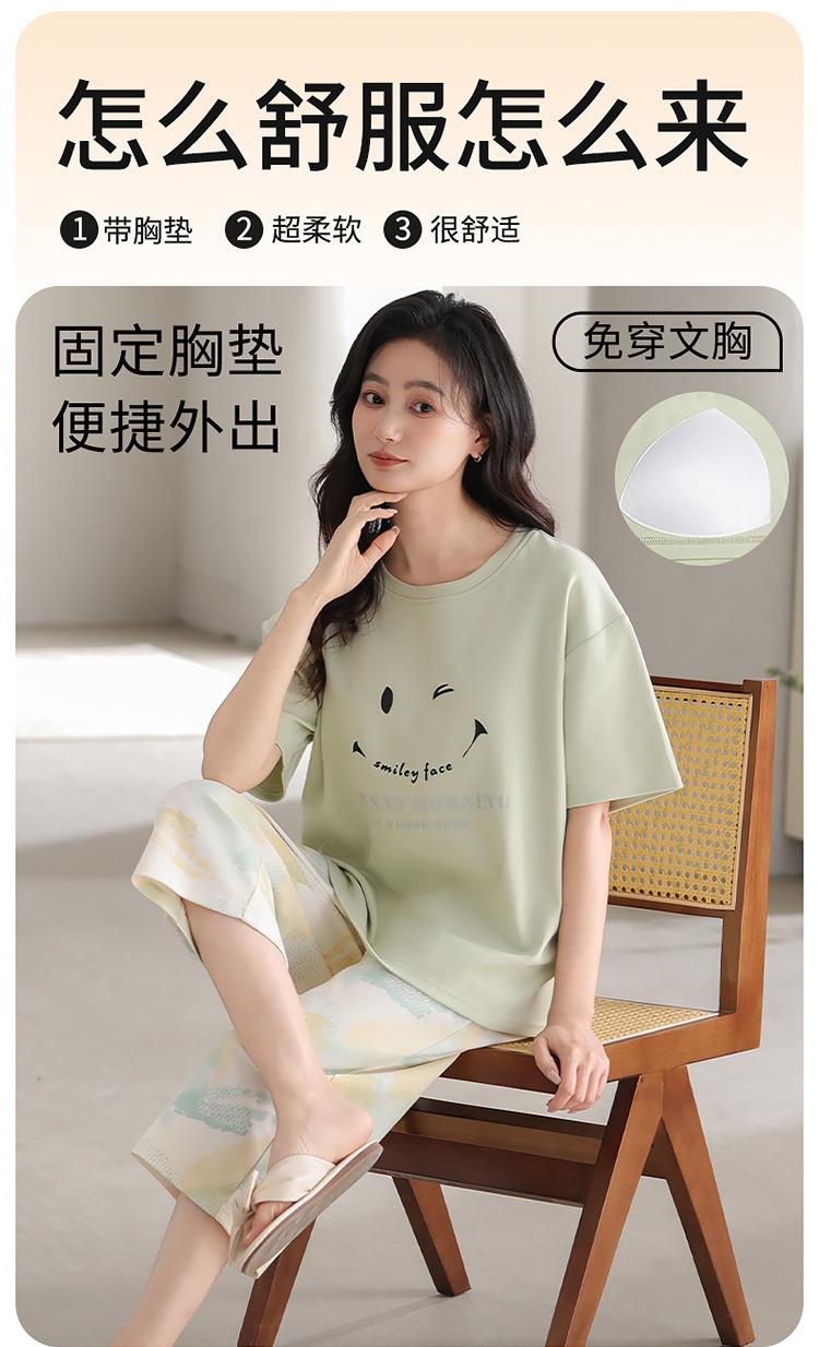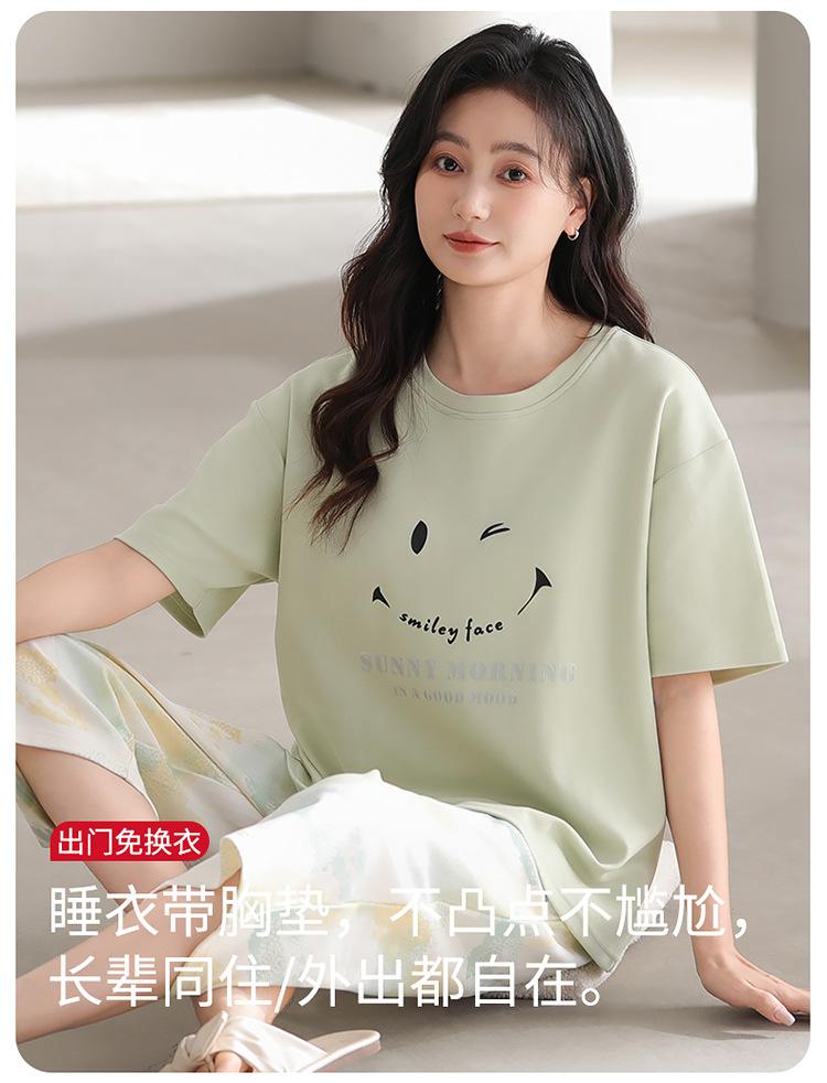 Pijama de verano para mujer, de manga corta, fino, con almohadilla para el pecho, bonito conjunto de dos piezas holgado con dibujos animados, ropa de casa para uso exterior.