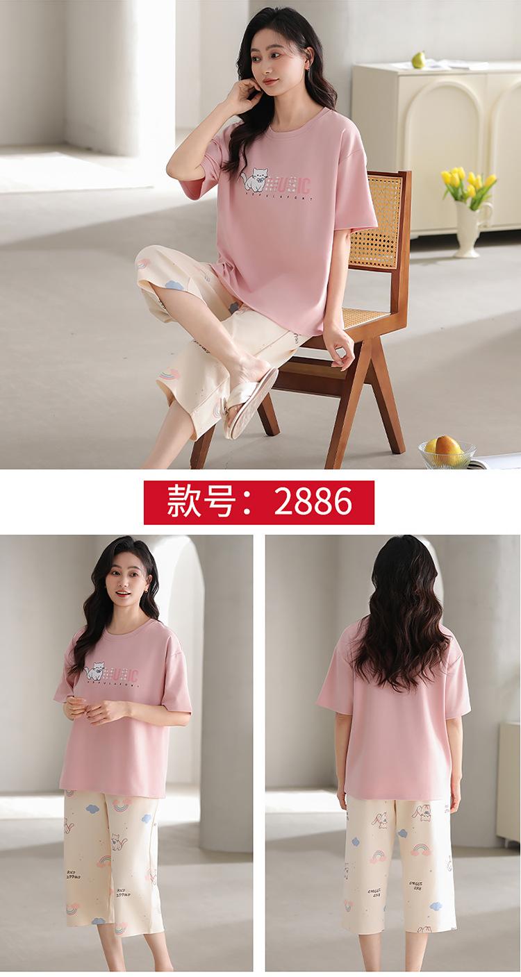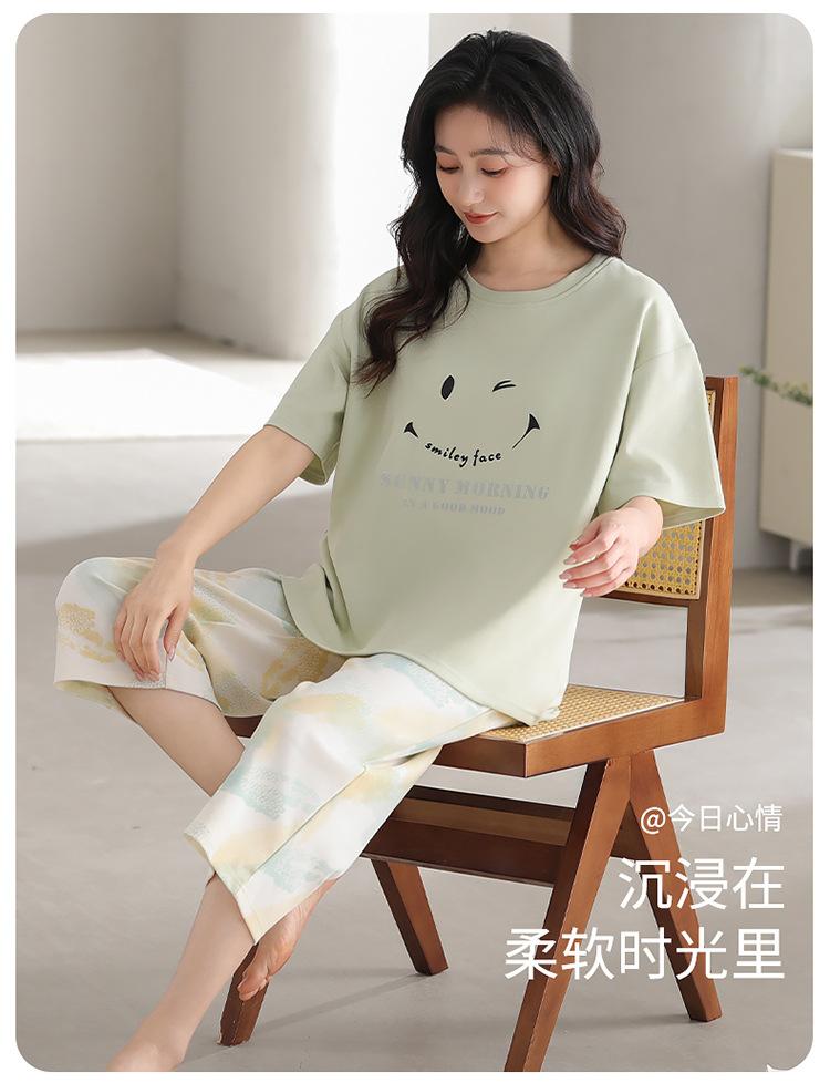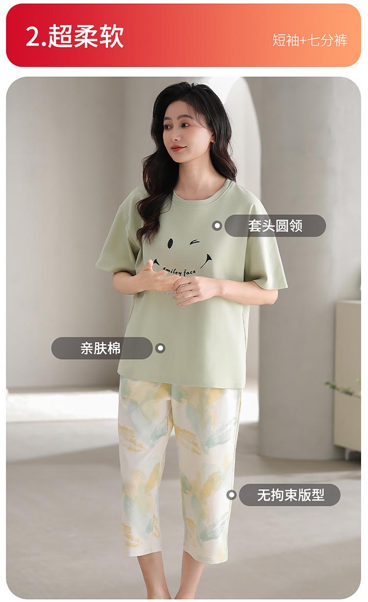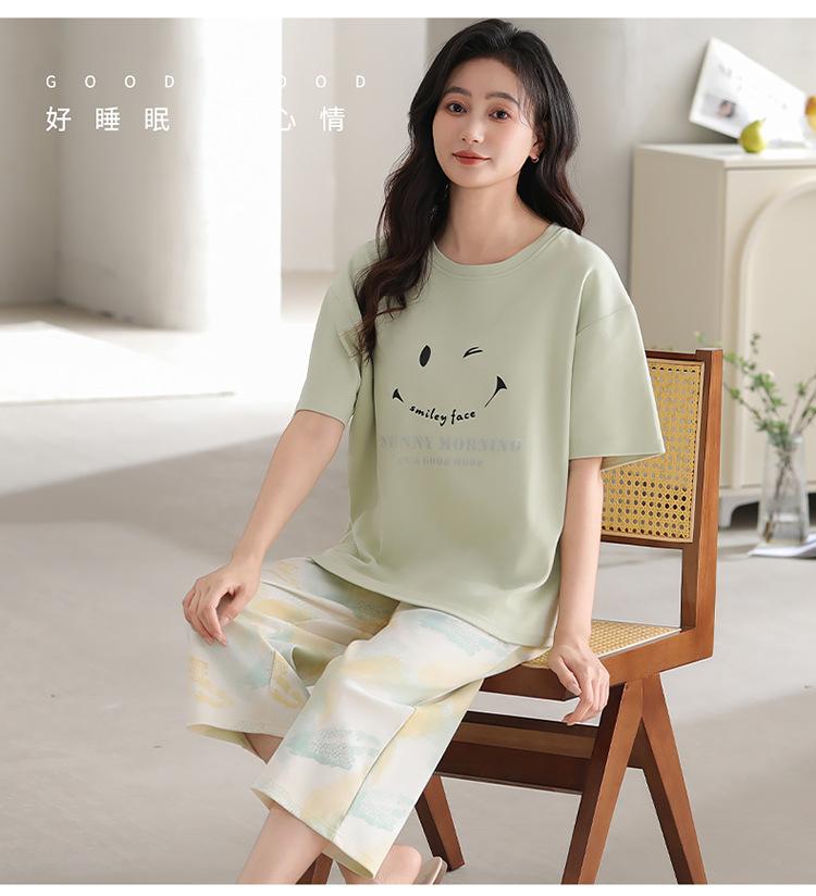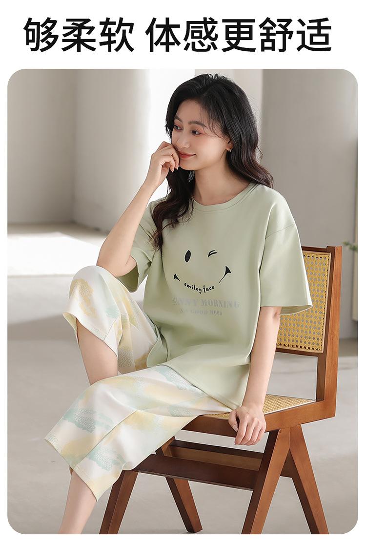 Pijama de verano para mujer, de manga corta, fino, con almohadilla para el pecho, bonito conjunto de dos piezas holgado con dibujos animados, ropa de casa para uso exterior.