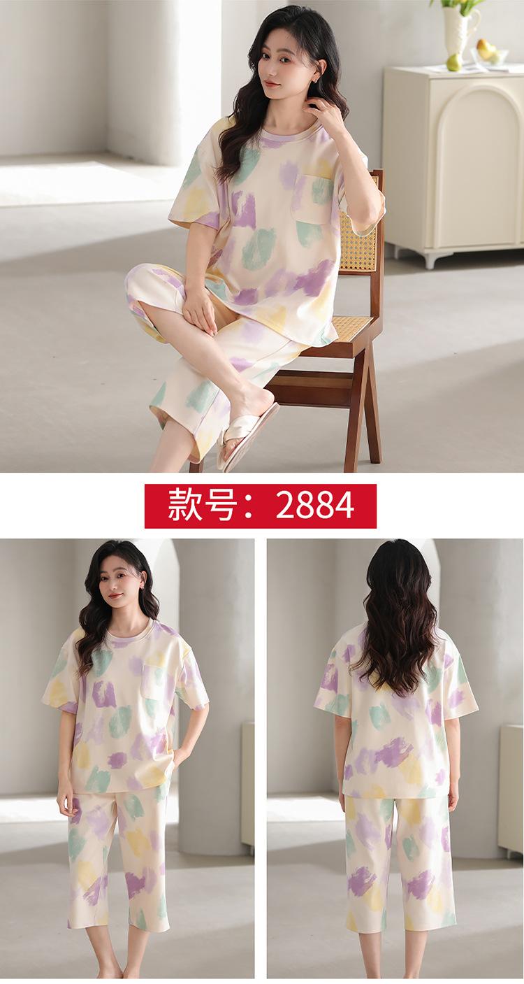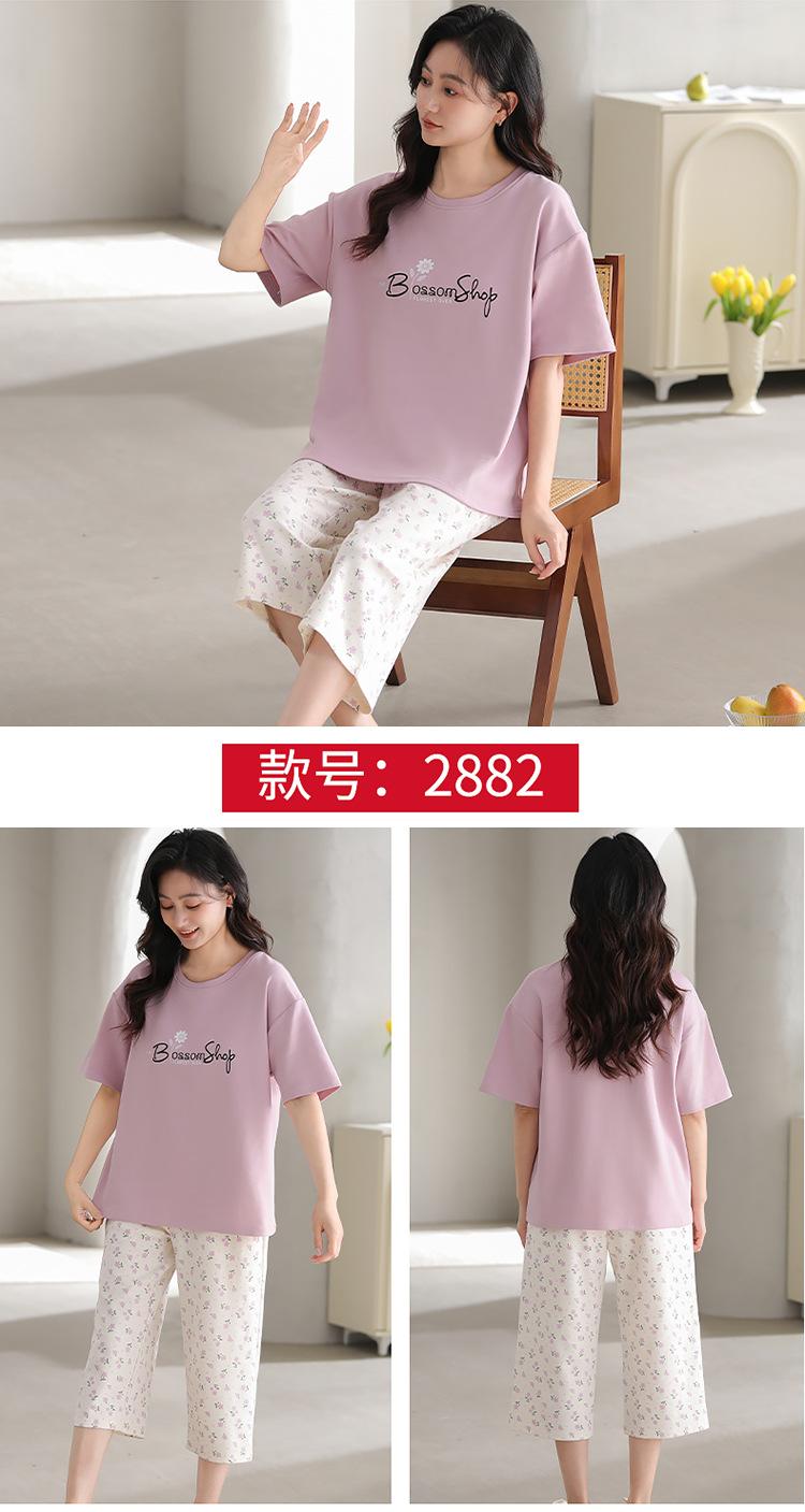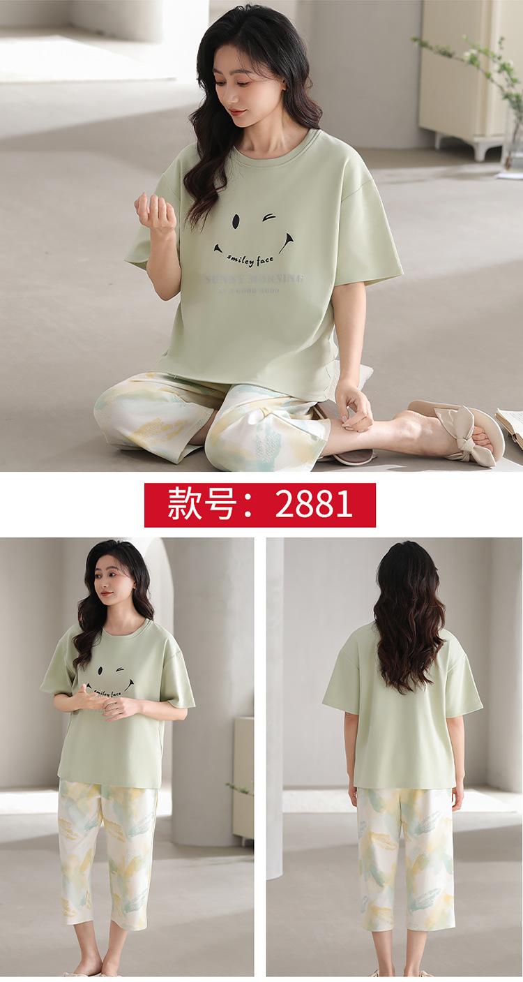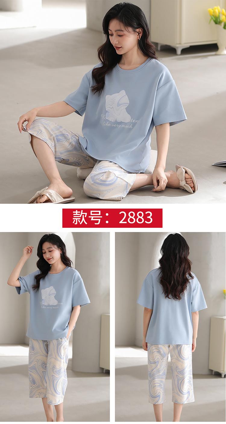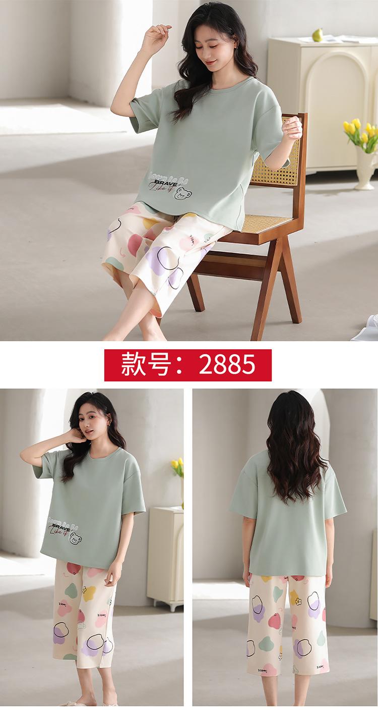 Pijama de verano para mujer, de manga corta, fino, con almohadilla para el pecho, bonito conjunto de dos piezas holgado con dibujos animados, ropa de casa para uso exterior.