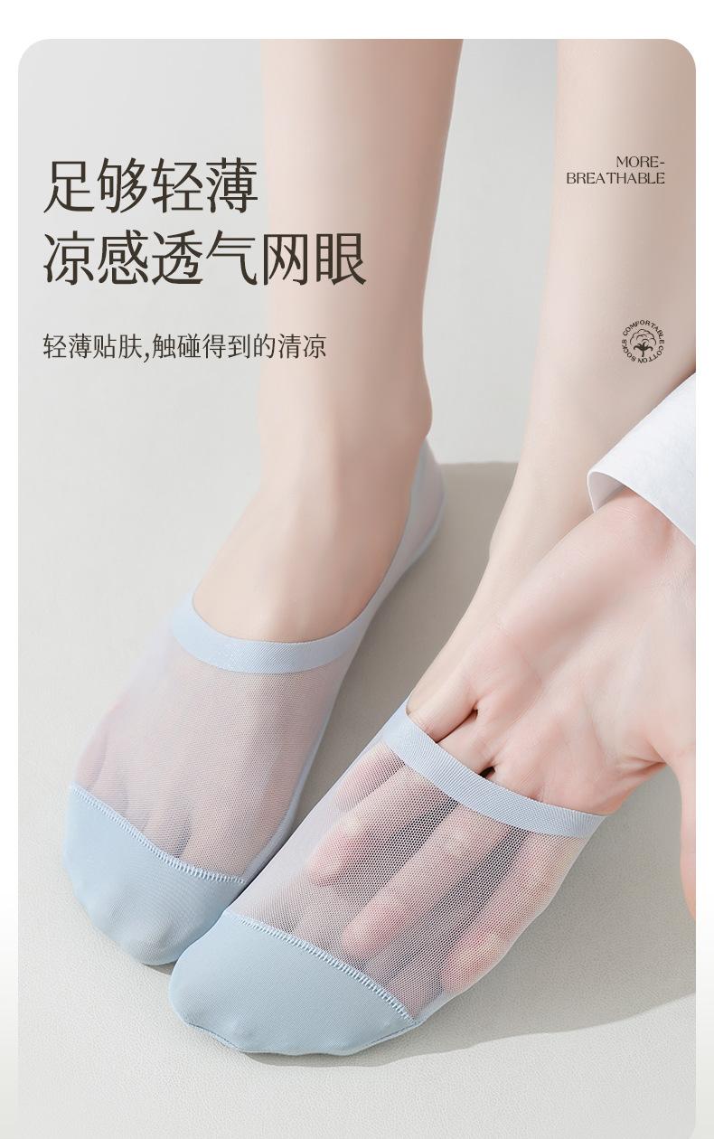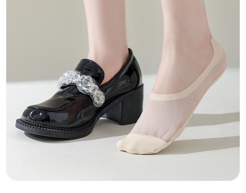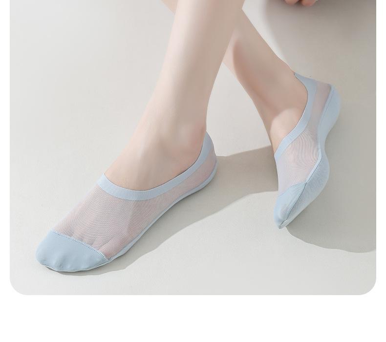 Calcetines náuticos de verano para mujer, finos, antideslizantes, de tacón alto, cortos, de seda helada, sin costuras, con contraste de colores.