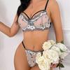 Nuevo sujetador francés sexy de malla de encaje bordado, ropa interior ultrafina con efecto push up, suministro transfronterizo de Amazon.