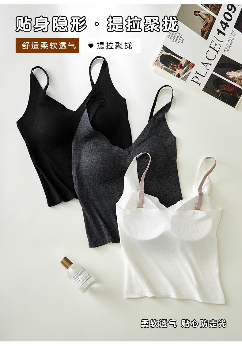 Chaleco push-up de seda de hielo de color sólido para primavera y verano, sin marcas, pequeño cabestrillo, cómodo y antiluz con almohadilla para el pecho.