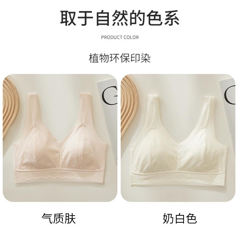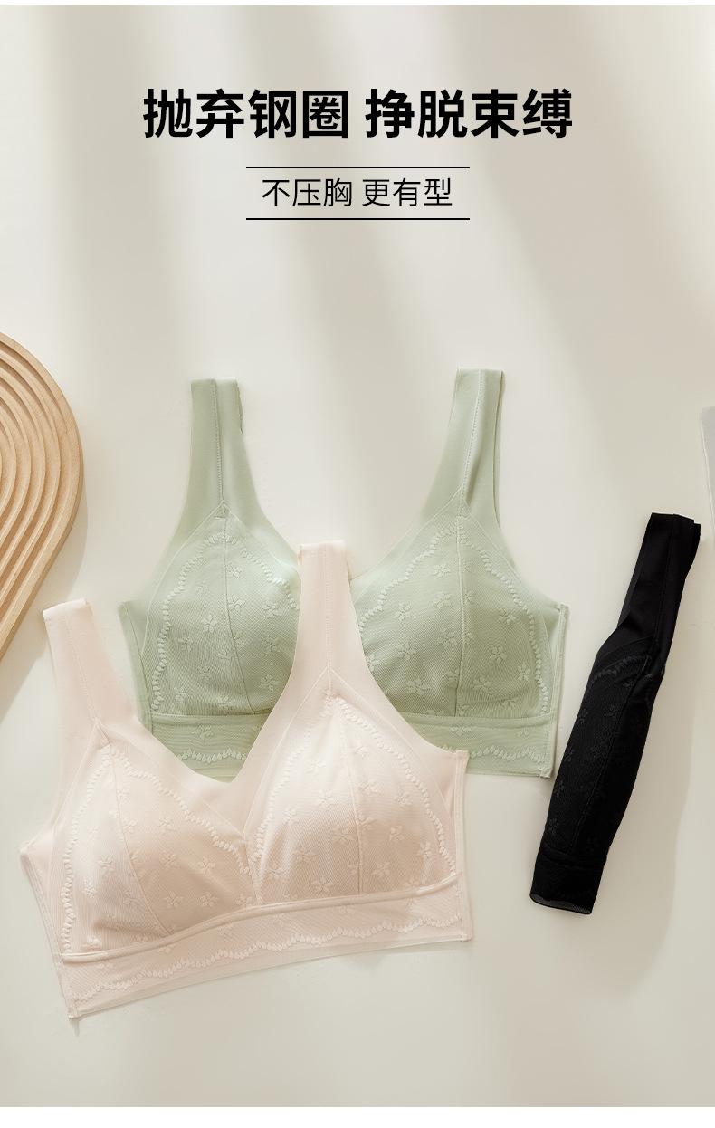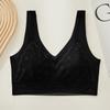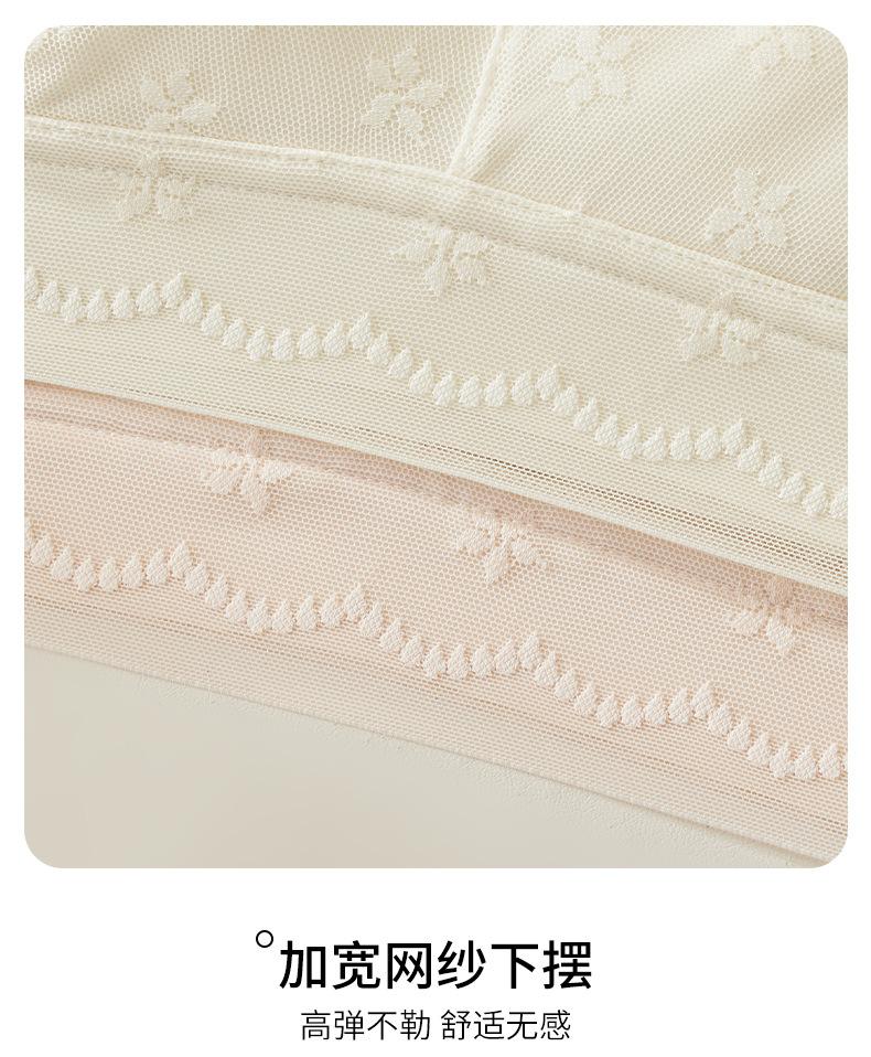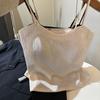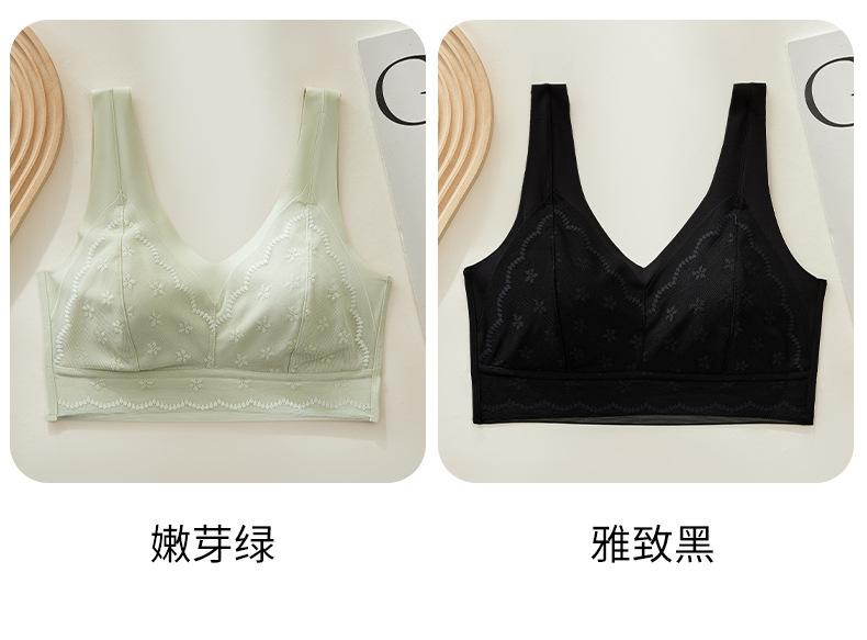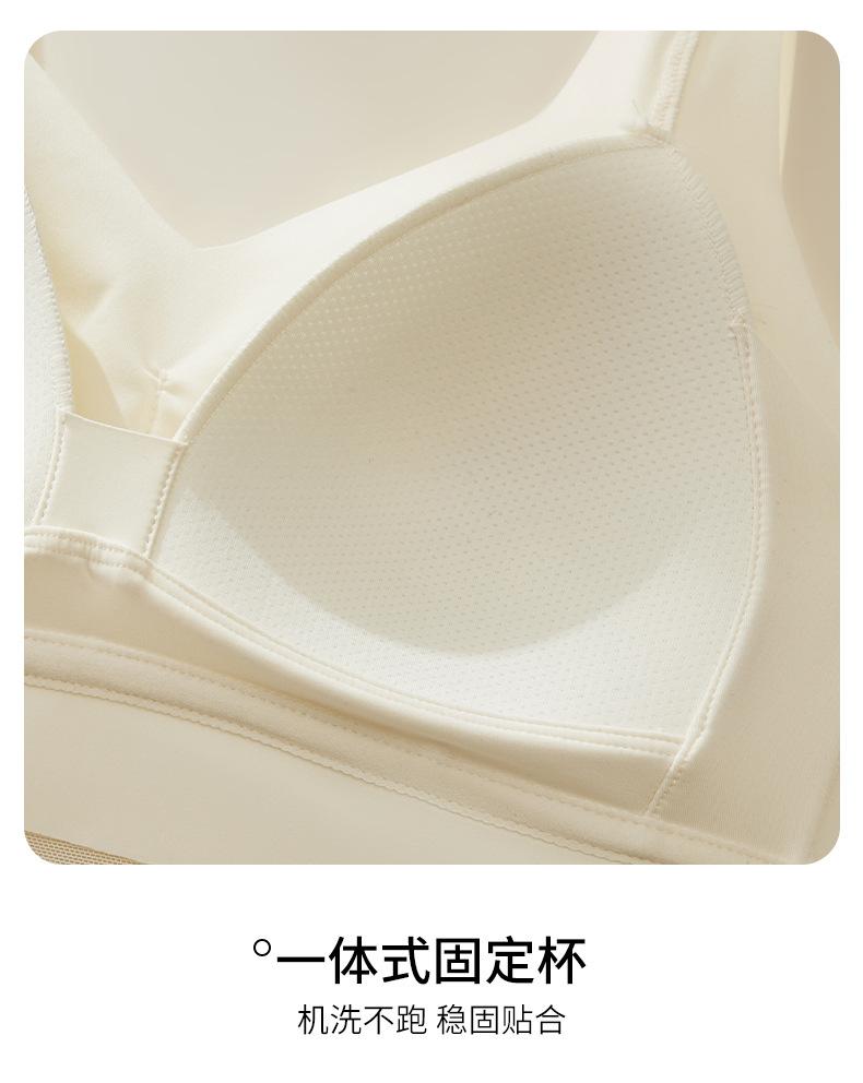 Sujetador de una pieza con copa triangular fija de malla, escote en V profundo y tirantes en el pecho, de seda helada francesa, estilo francés