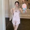 Pijama de seda de hielo para mujer, primavera y verano, pantalones cortos finos con tirantes, ropa de dormir de seda de hielo para el hogar, pijamas en línea en vivo