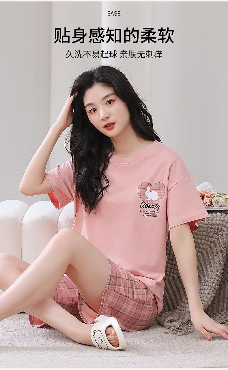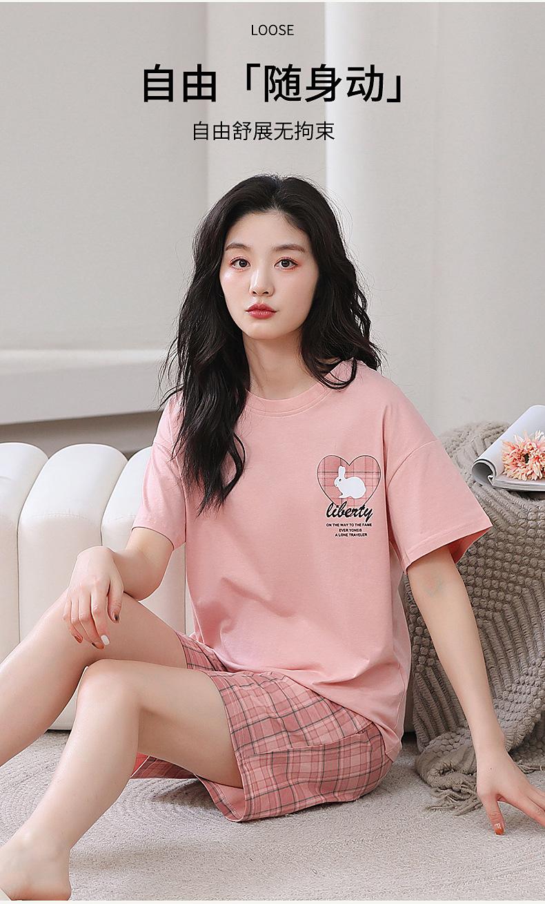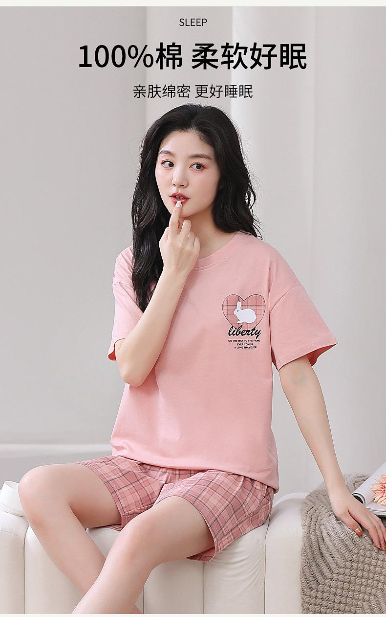Pijama corto de algodón puro de verano para mujer, de manga corta, holgado, bonito y estampado, traje fino de verano, ropa para el hogar