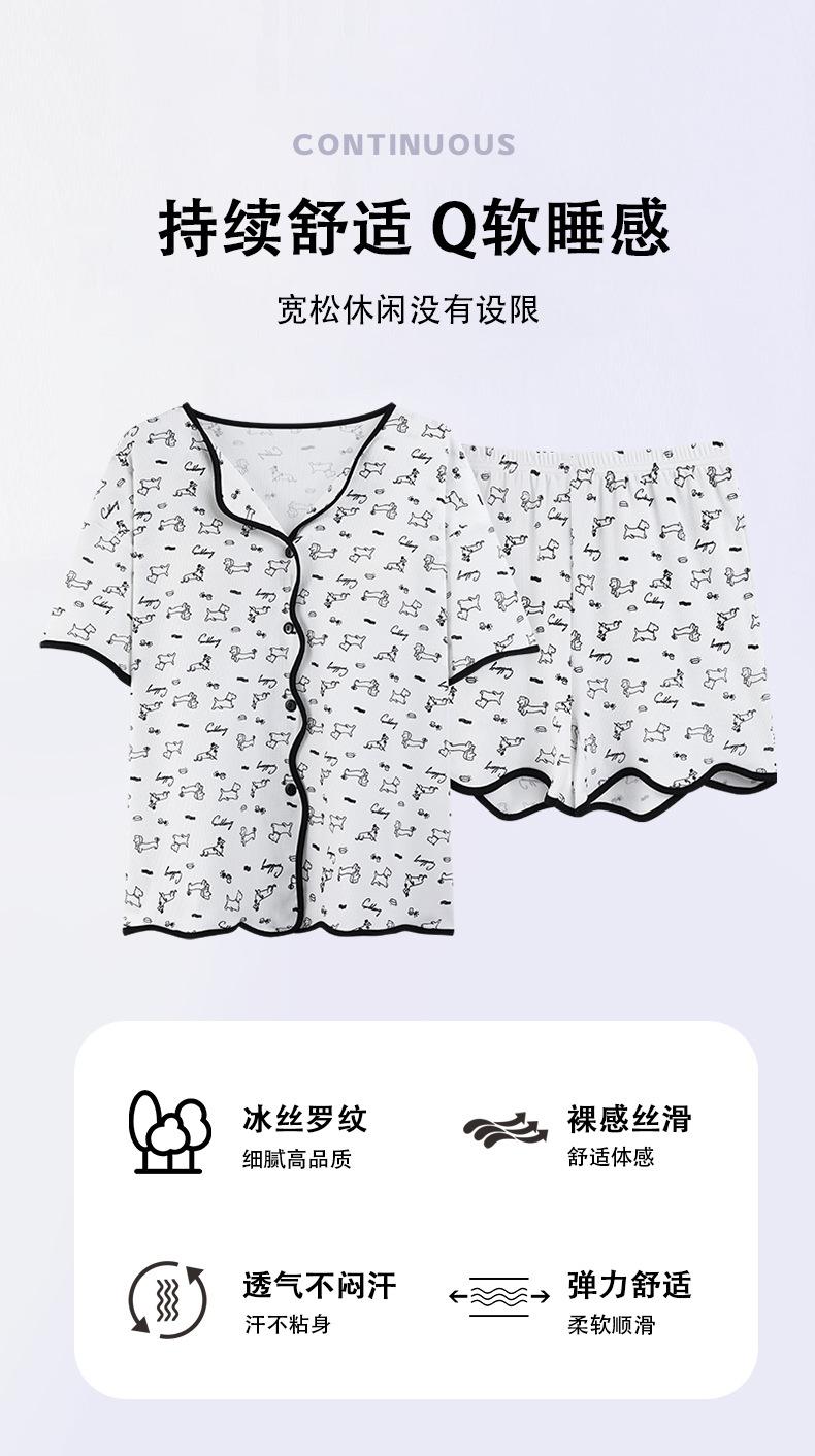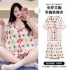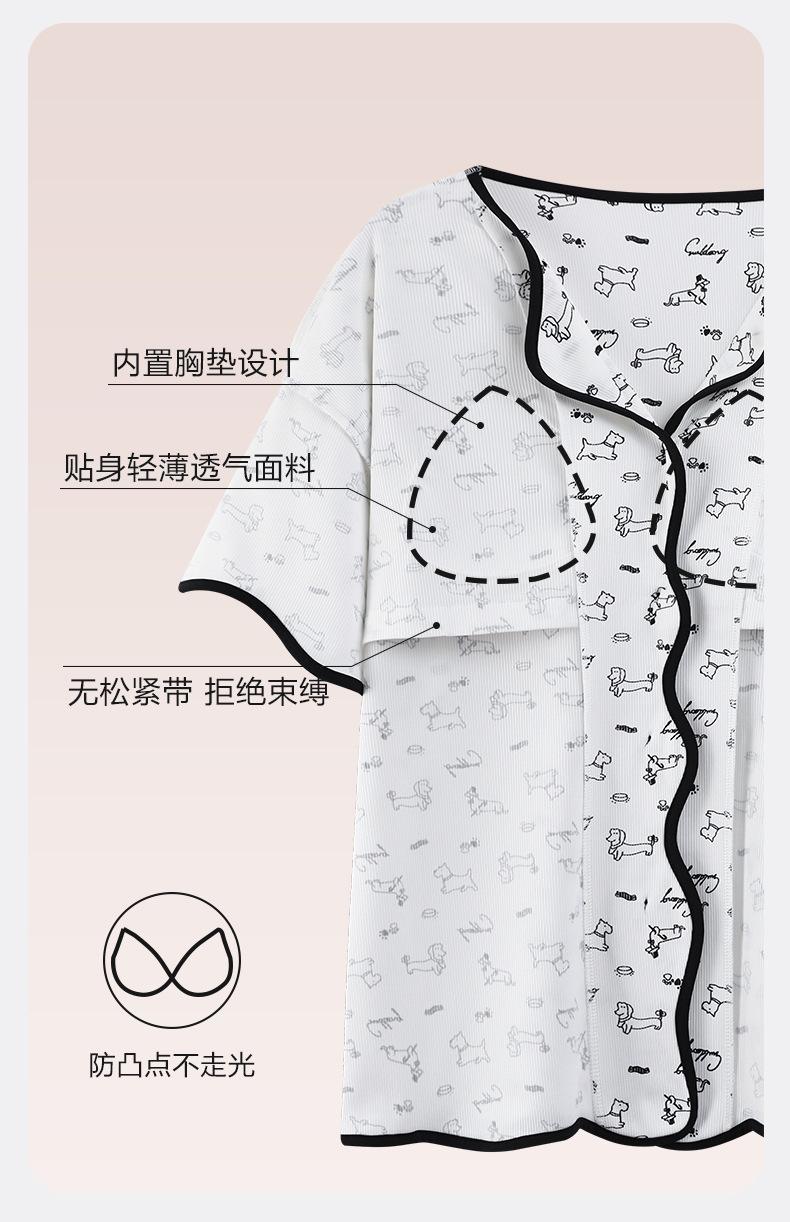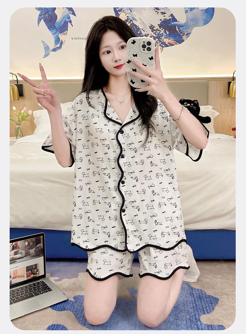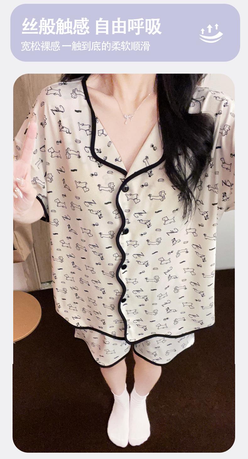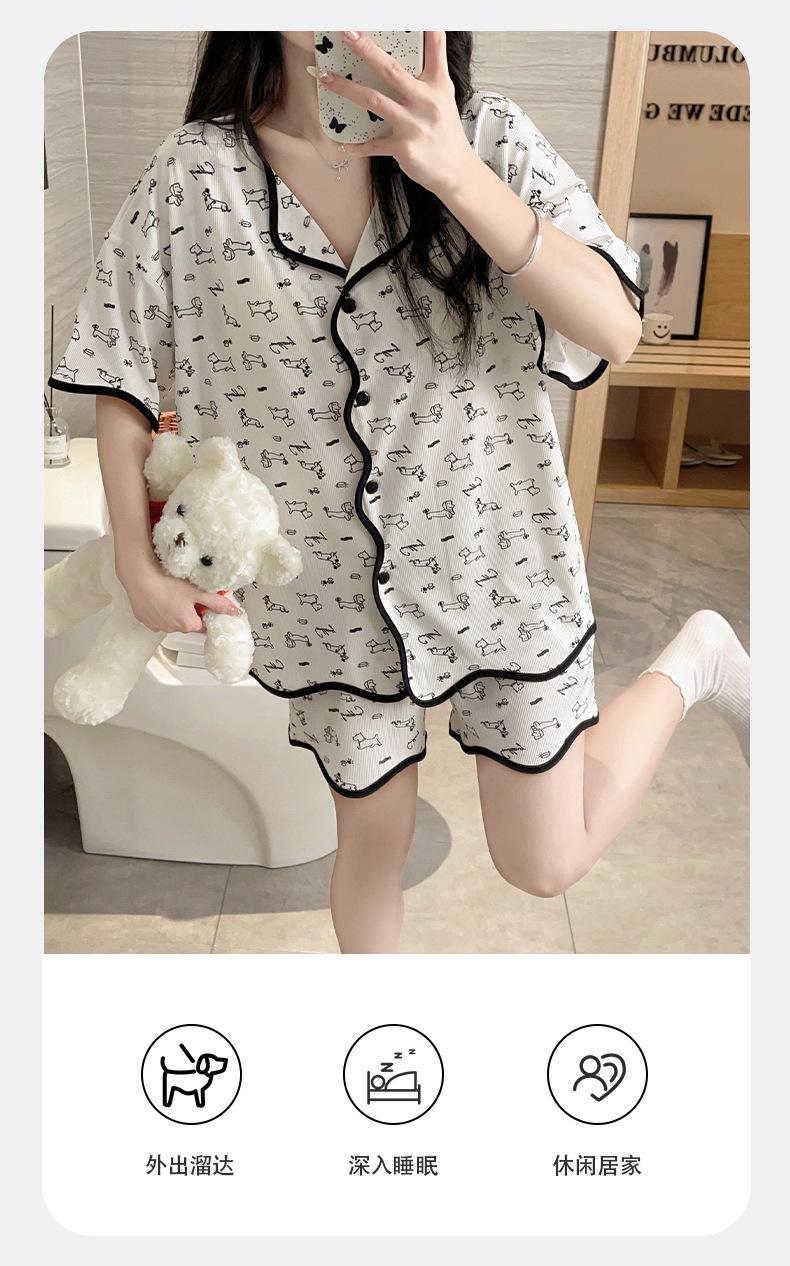 Pijama de una pieza con almohadilla para el pecho para mujer, pantalones cortos de verano de manga corta, cárdigan con bonitos dibujos de cachorros, ropa de verano para el hogar.