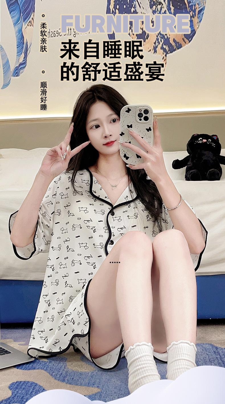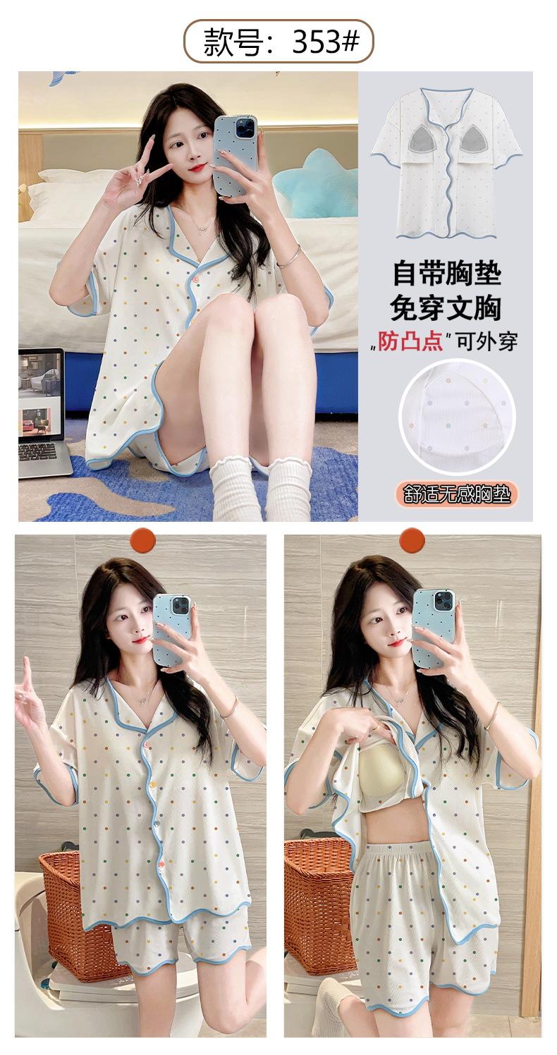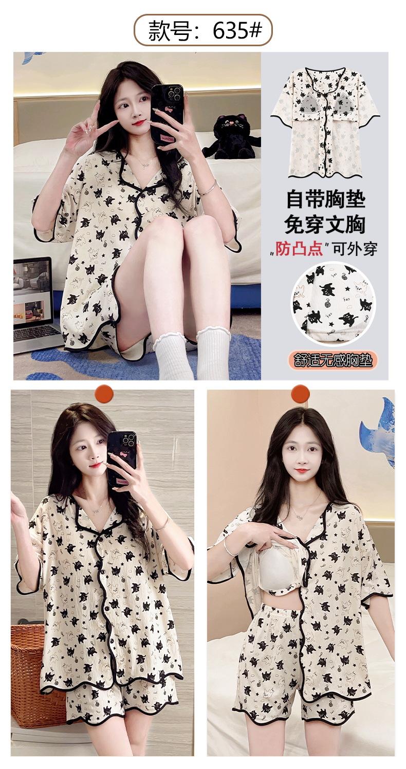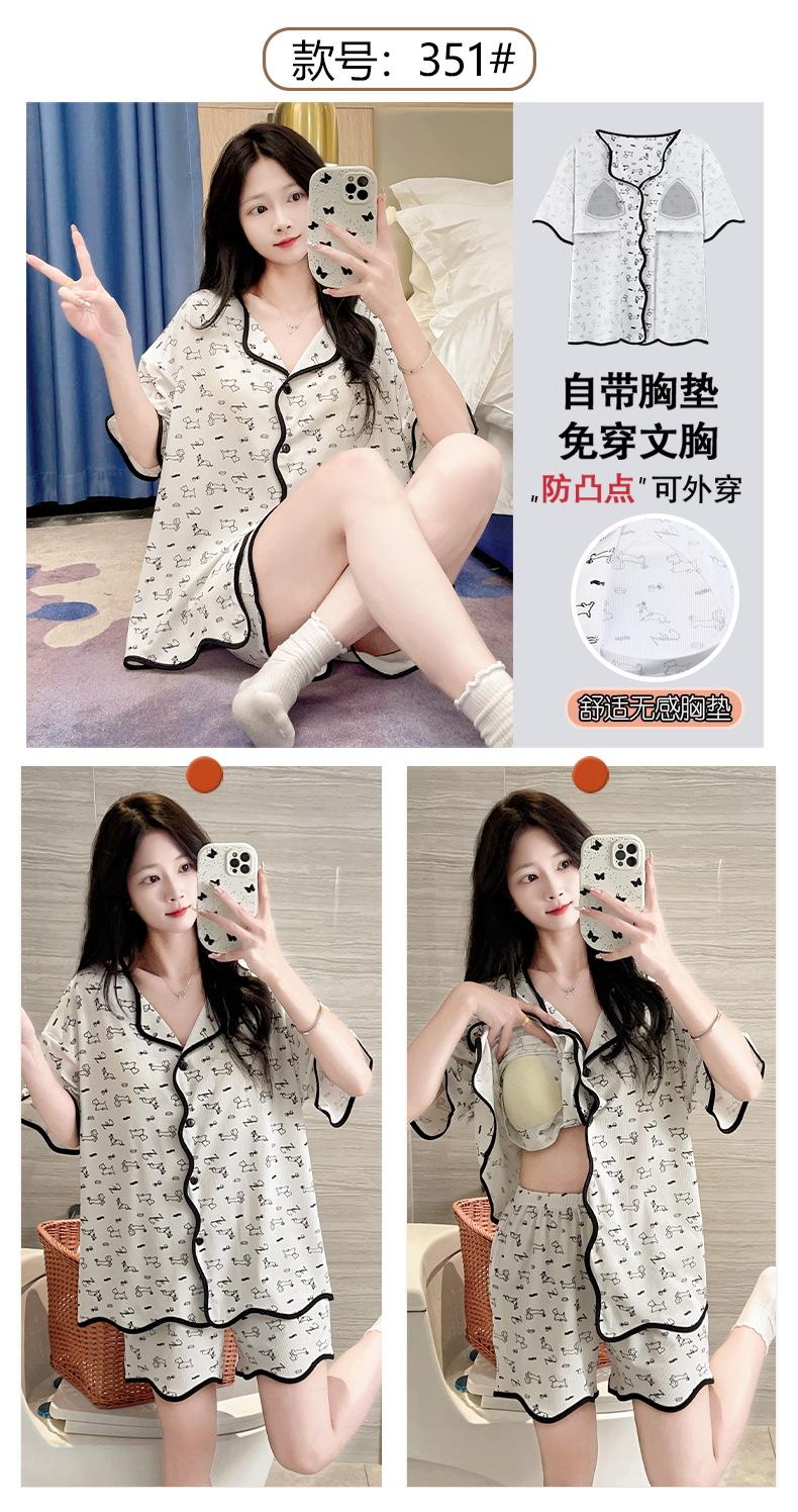 Pijama de una pieza con almohadilla para el pecho para mujer, pantalones cortos de verano de manga corta, cárdigan con bonitos dibujos de cachorros, ropa de verano para el hogar.