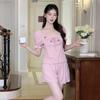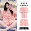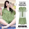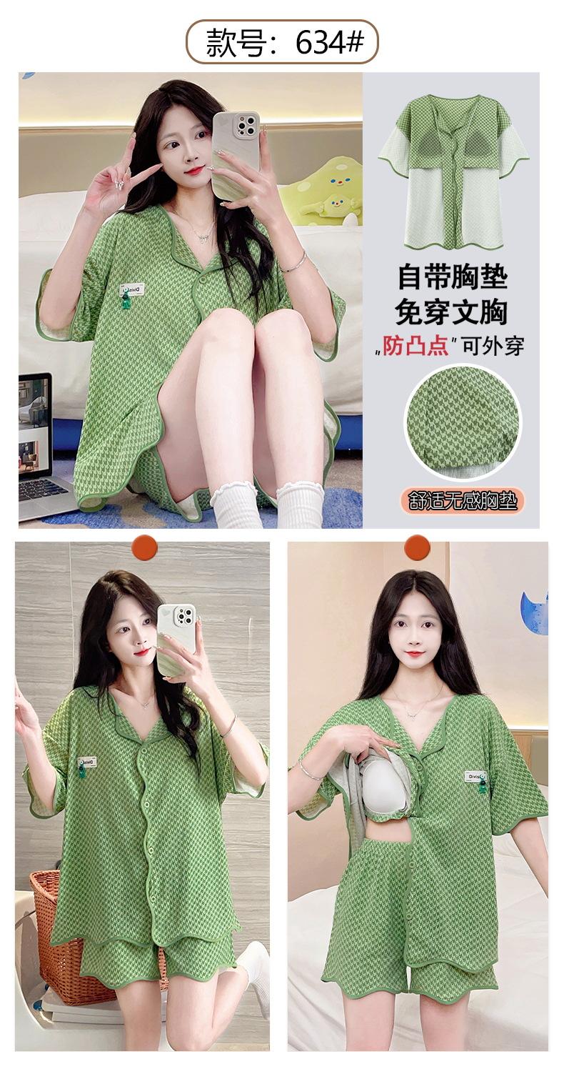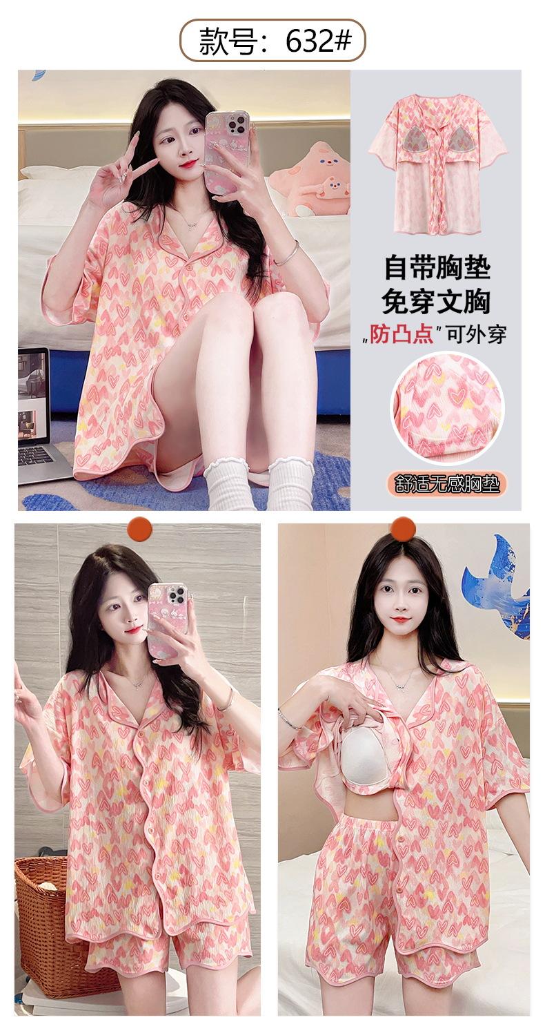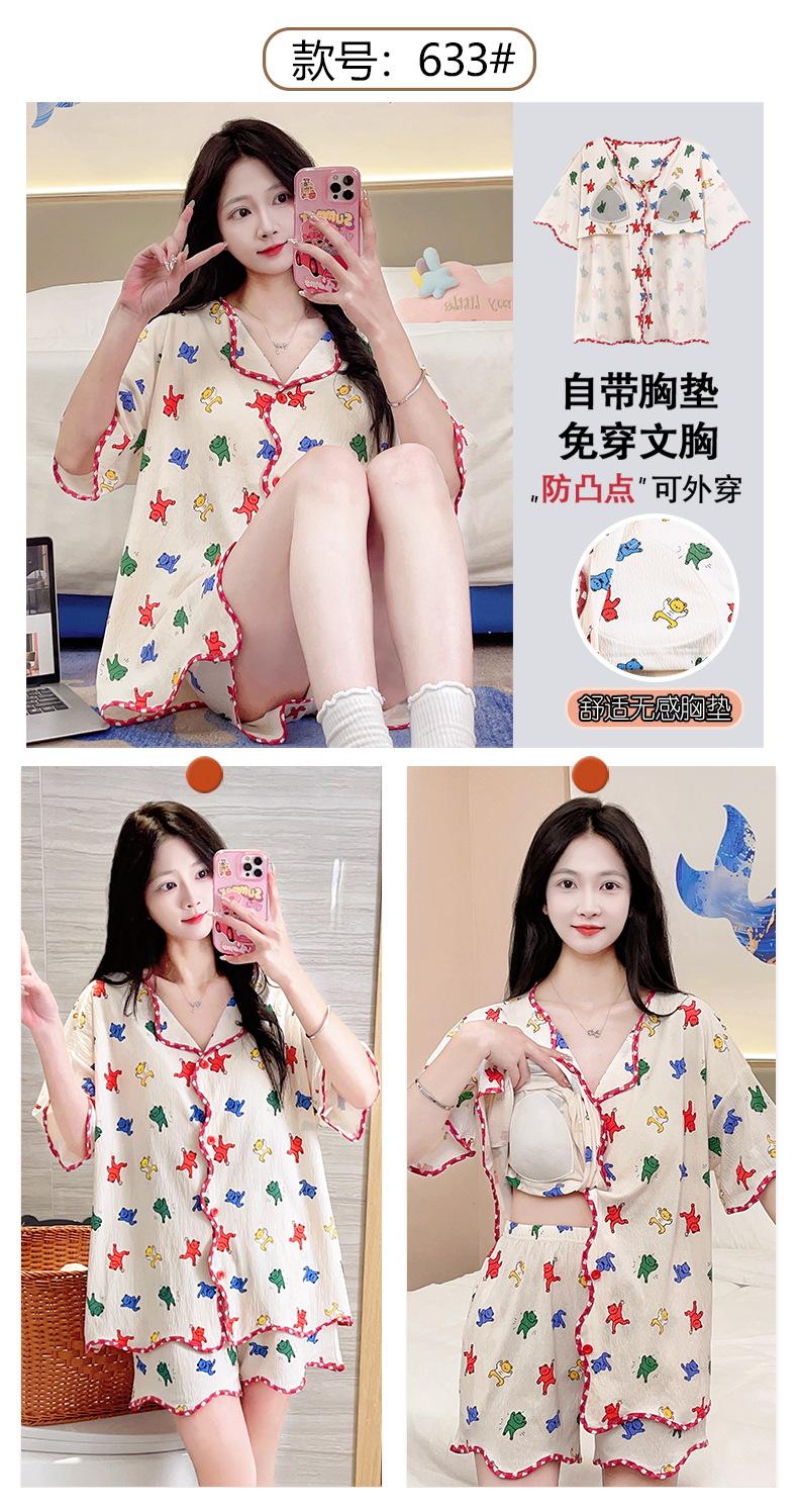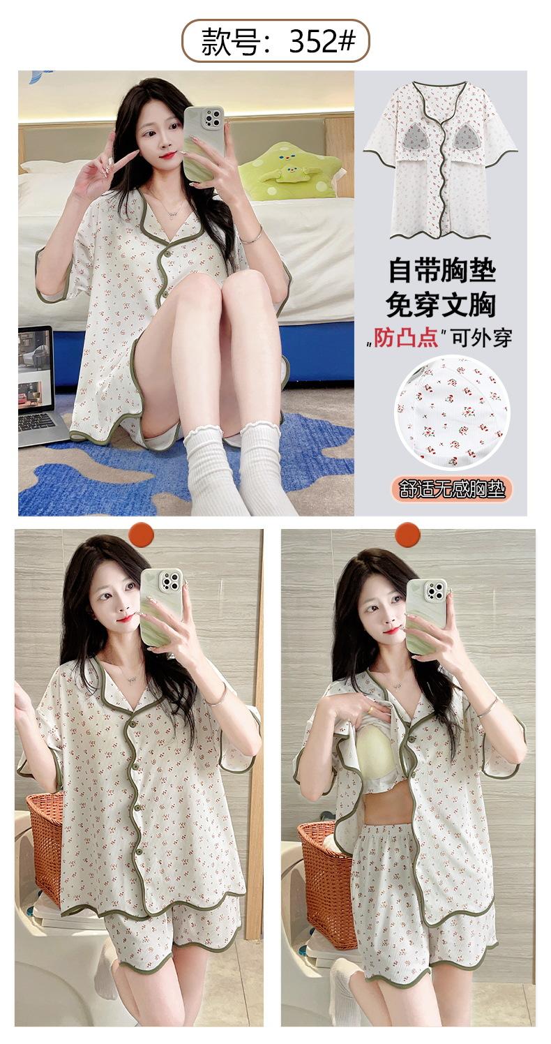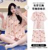 Pijama de una pieza con almohadilla para el pecho para mujer, pantalones cortos de verano de manga corta, cárdigan con bonitos dibujos de cachorros, ropa de verano para el hogar.