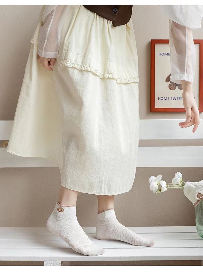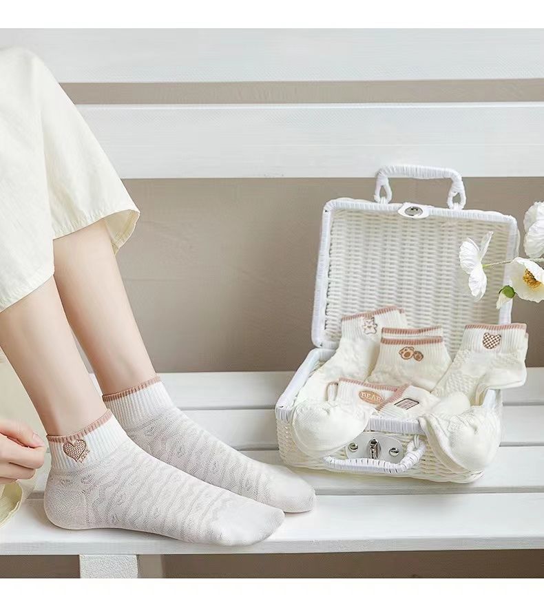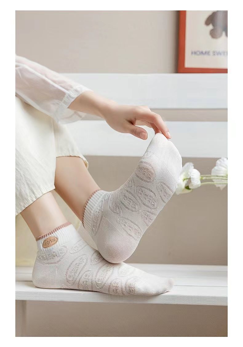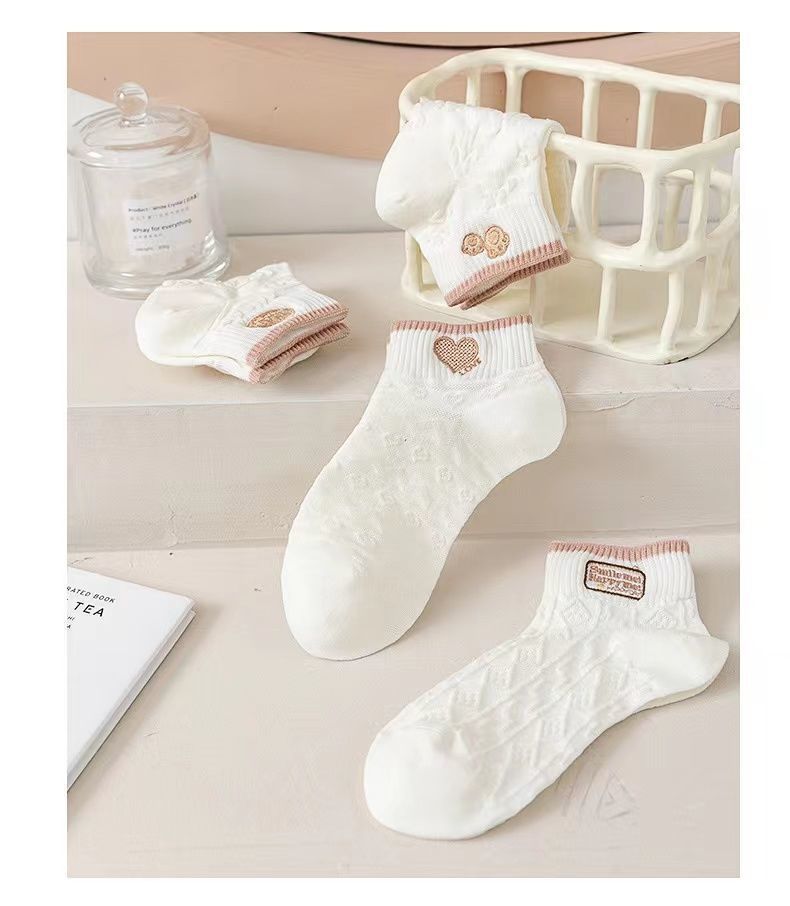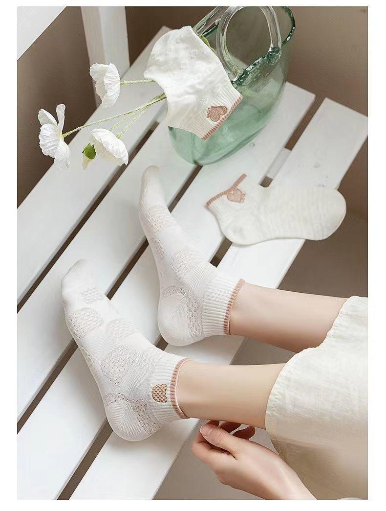 Calcetines blancos de mujer para primavera y verano, calcetines de mujer, calcetines de verano finos, transpirables, desodorantes, dibujos animados, lindos calcetines japoneses de caña baja hasta el tobillo.