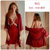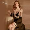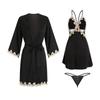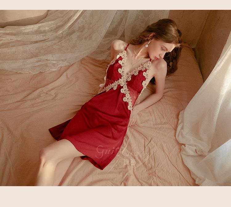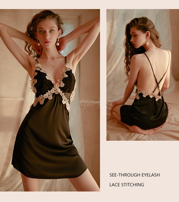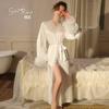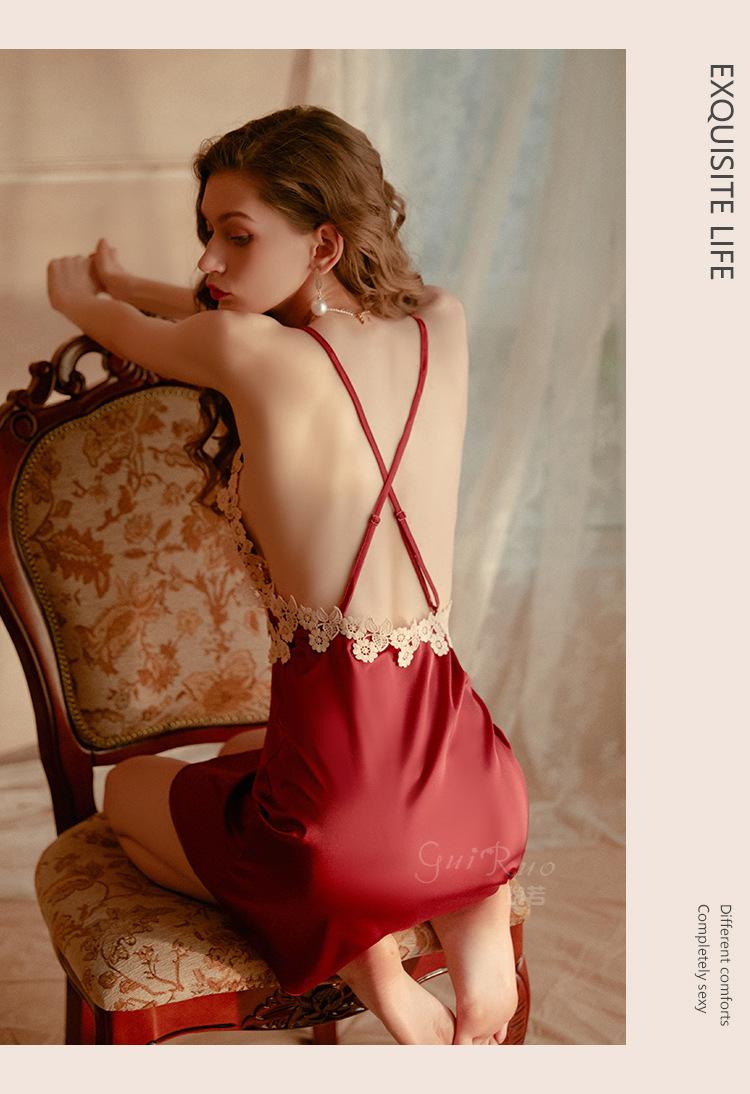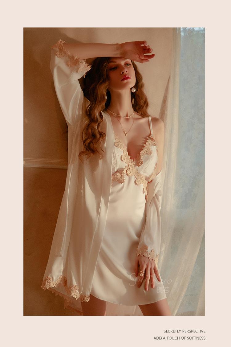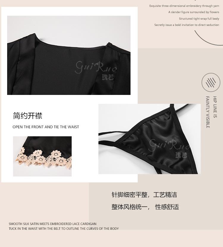 Guiruo - Camisón de manga larga con encaje y satén sedoso para mujer, cómodo, tipo cárdigan, para el hogar, 1203