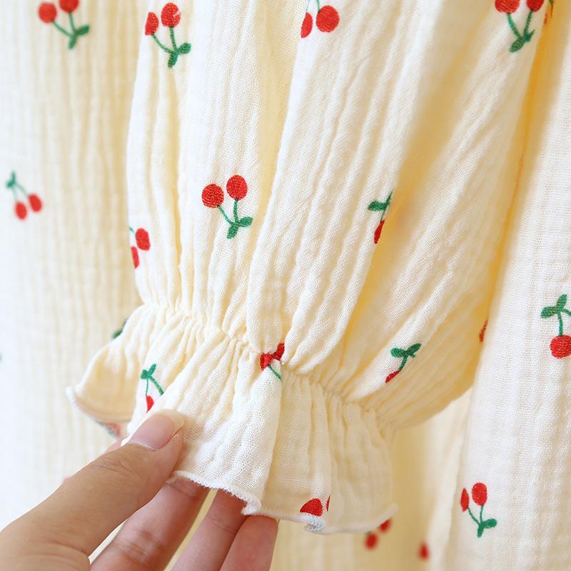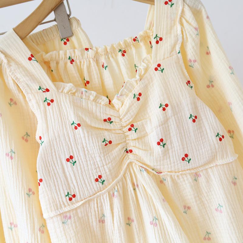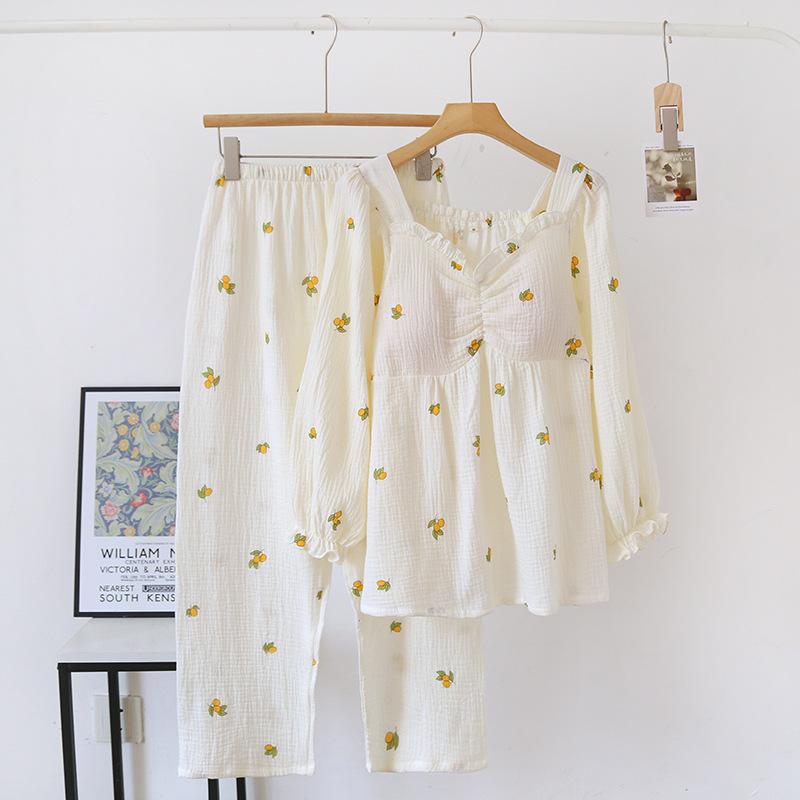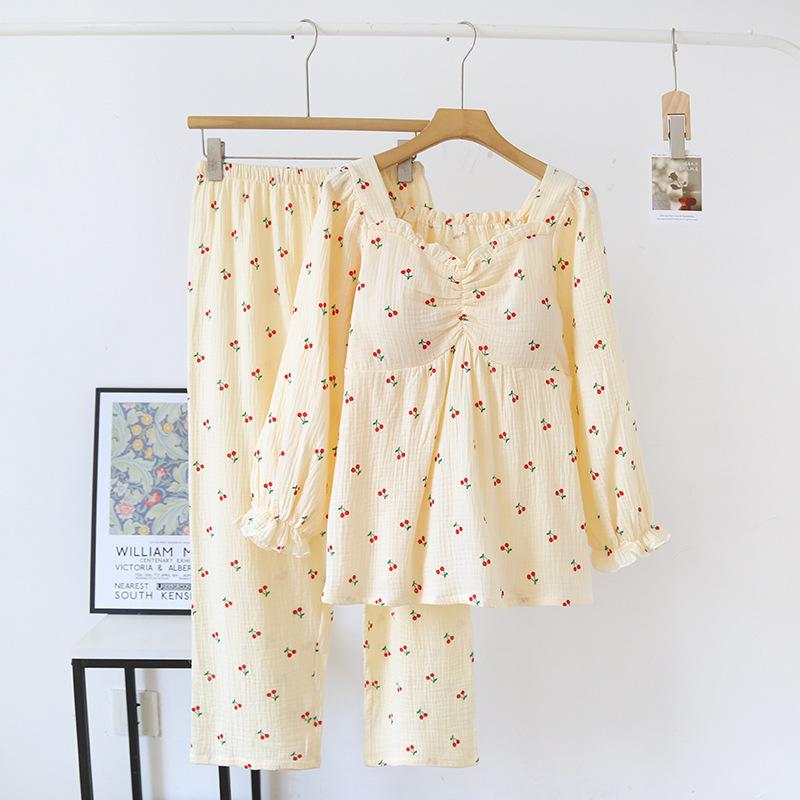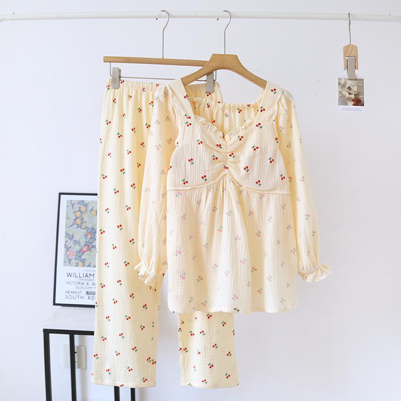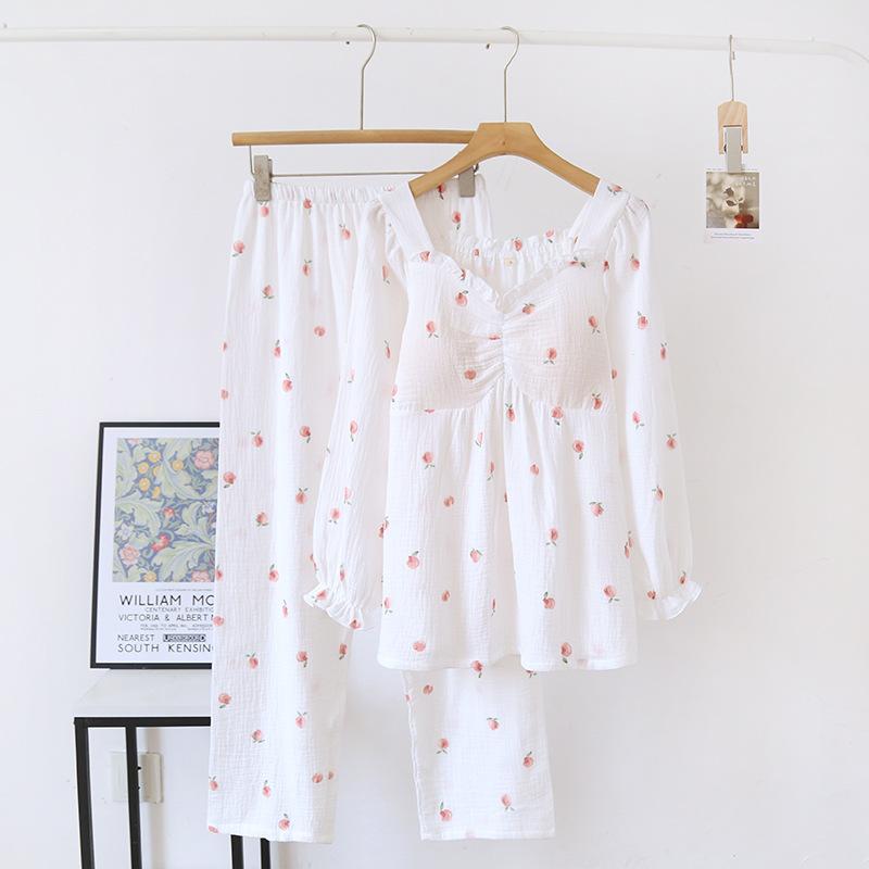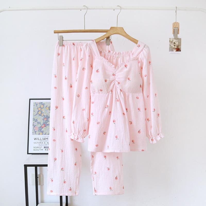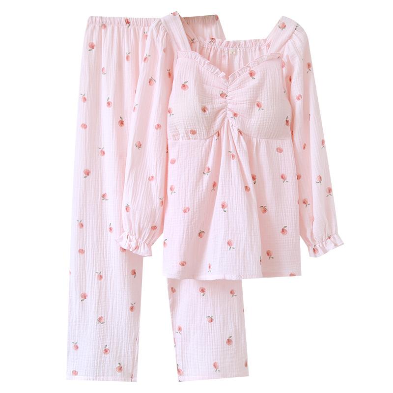 Pijama nuevo de gasa con almohadilla para el pecho, bonito y dulce pijama holgado de manga larga con hilo de algodón y burbujas, ropa de abrigo para niña, ropa de casa