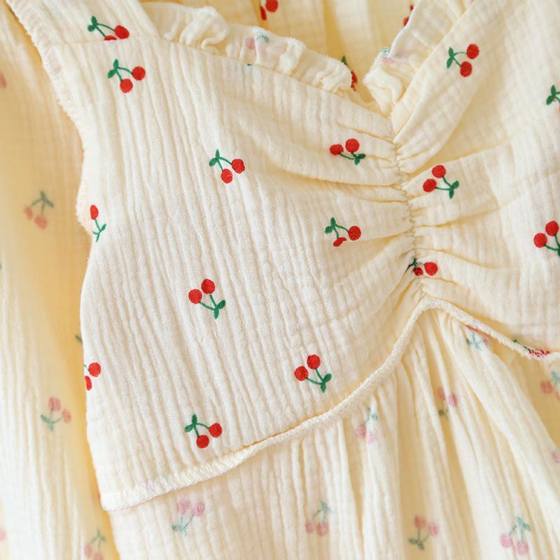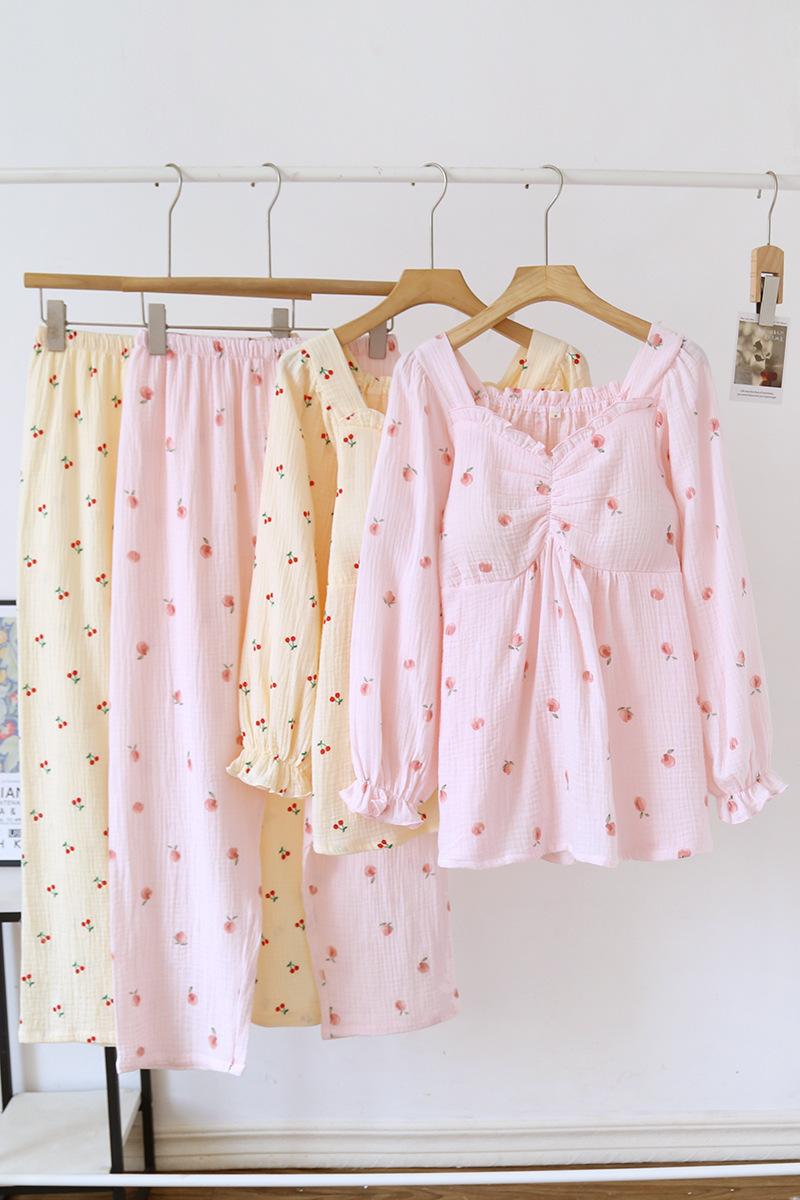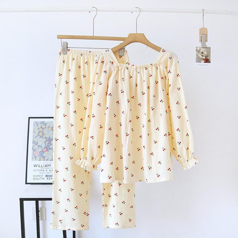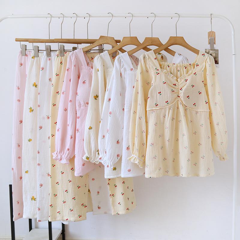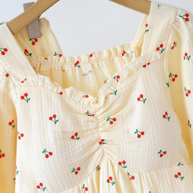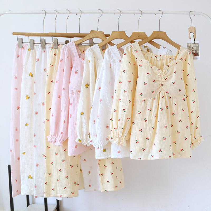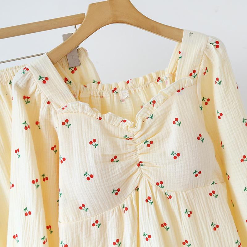 Pijama nuevo de gasa con almohadilla para el pecho, bonito y dulce pijama holgado de manga larga con hilo de algodón y burbujas, ropa de abrigo para niña, ropa de casa