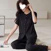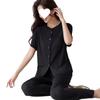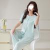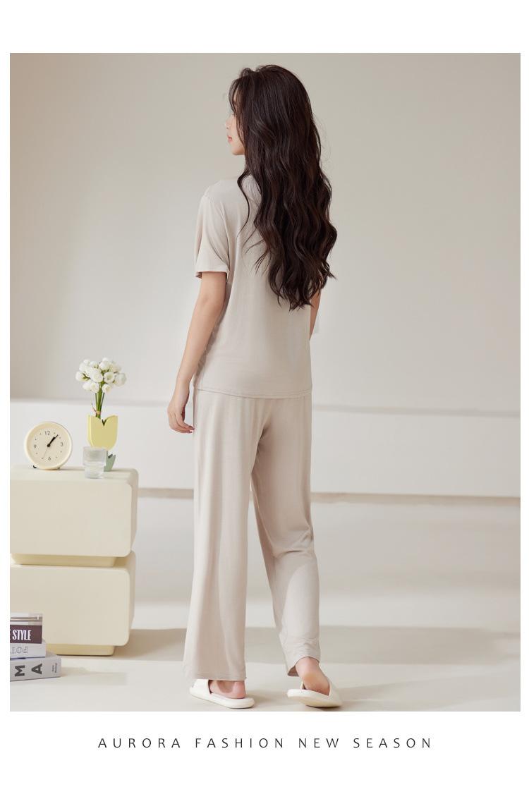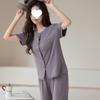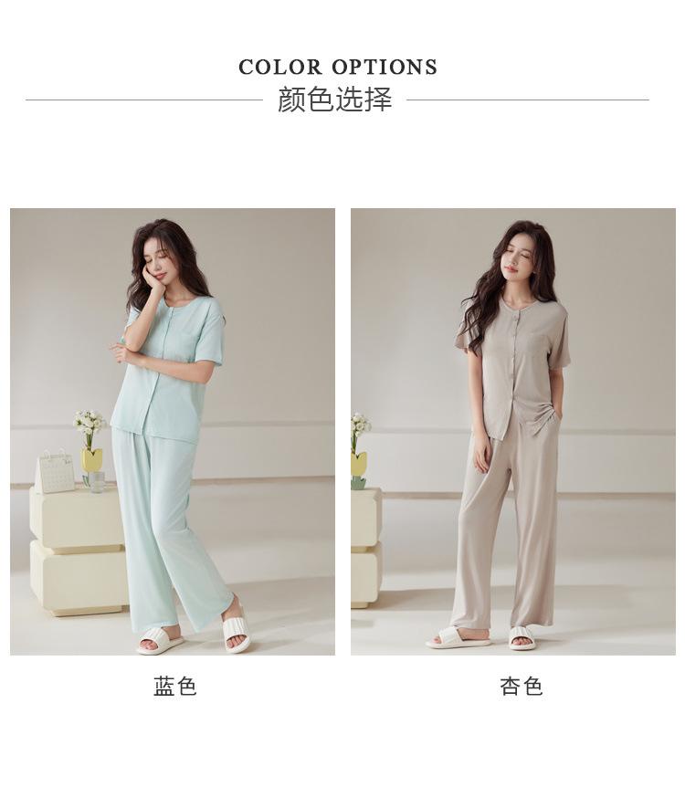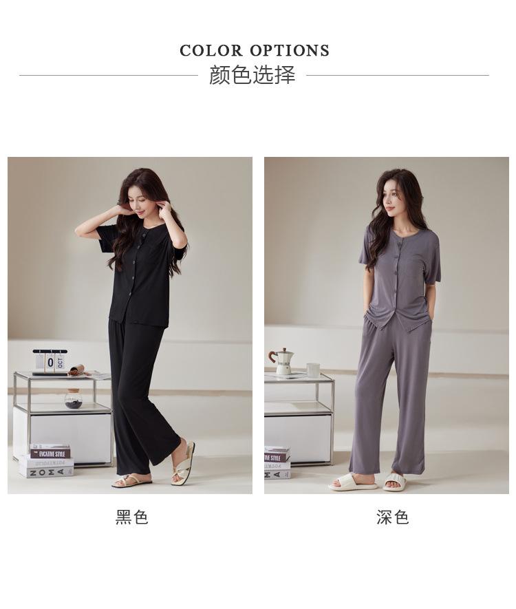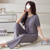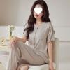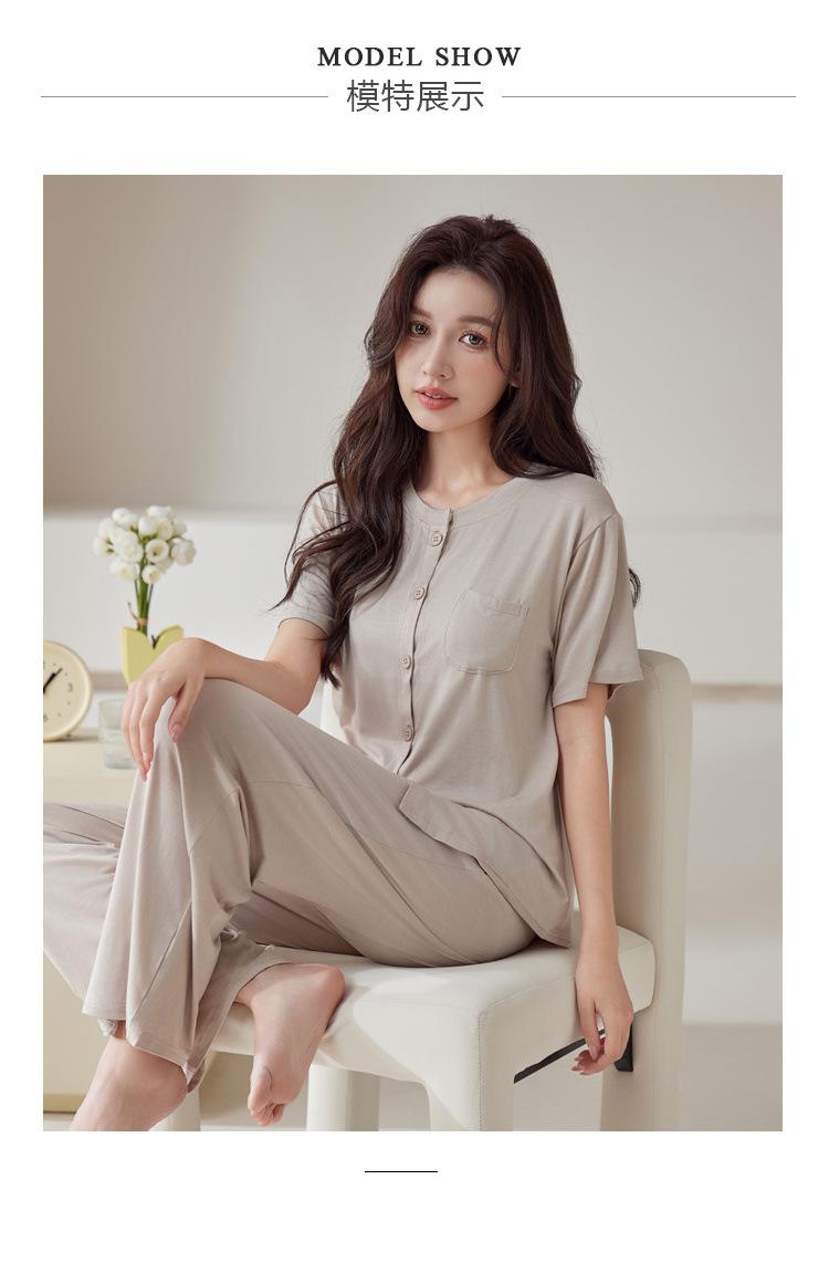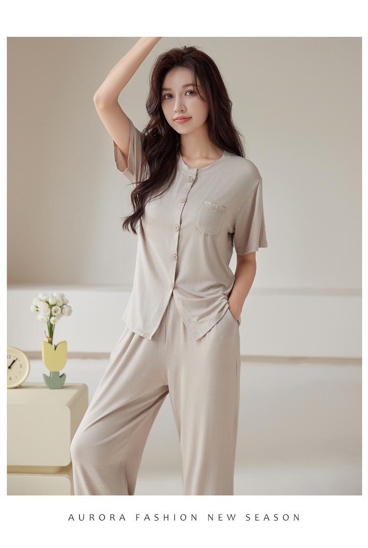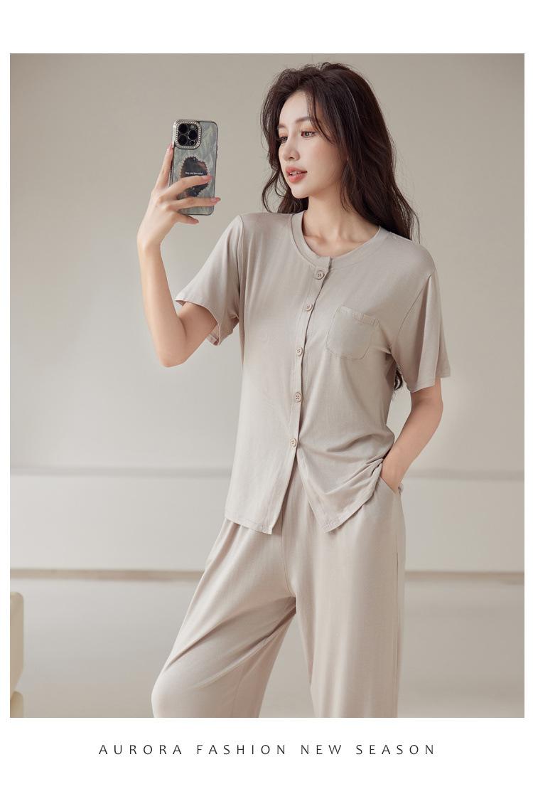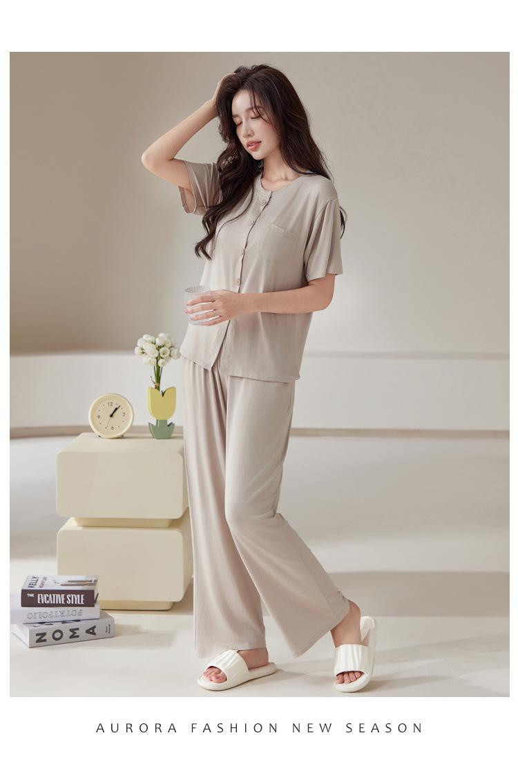 Pijama de modal para mujer, de verano, de manga corta, con pantalones, cárdigan, holgado, de talla grande, sencillo, de color liso, ropa de alta gama para el hogar.