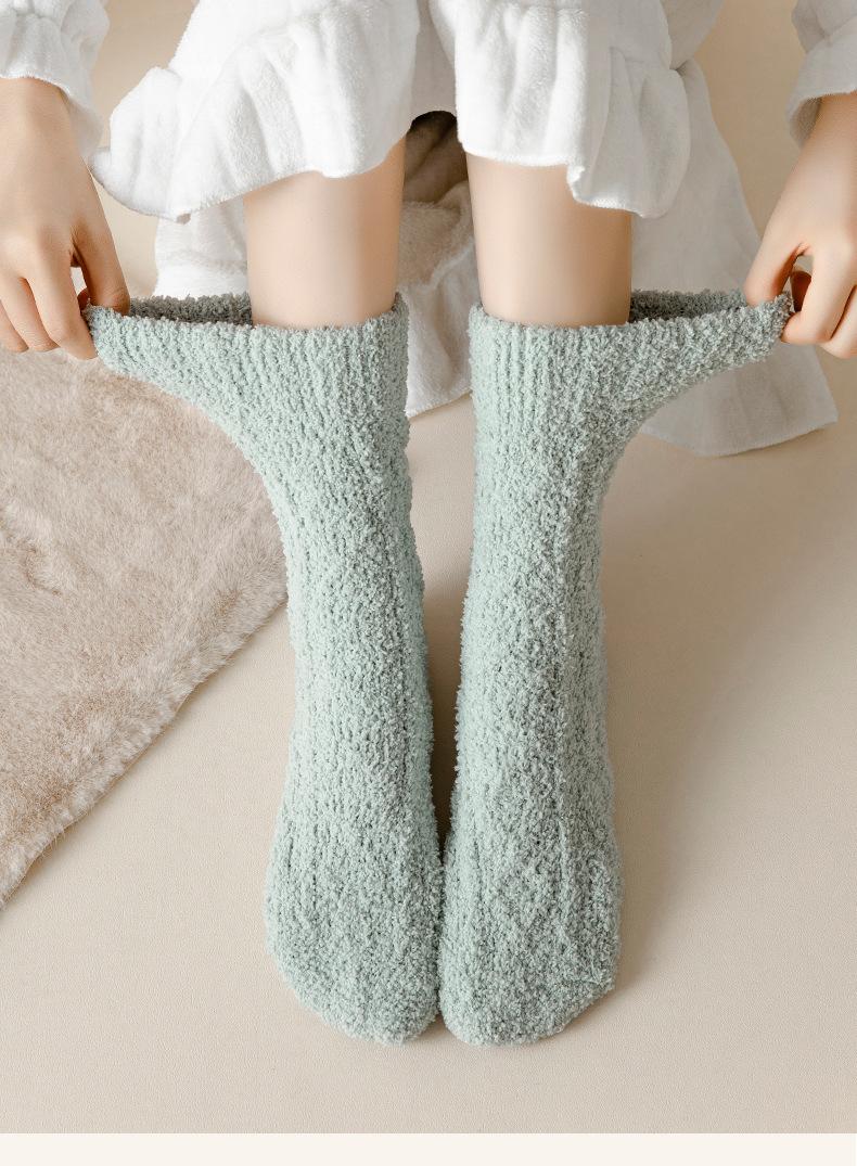 Calcetines de terciopelo coral para mujer, calcetines hasta media pantorrilla, otoño e invierno, forrados de vellón, gruesos, para dormir en casa, calcetines de confinamiento, largos y cálidos