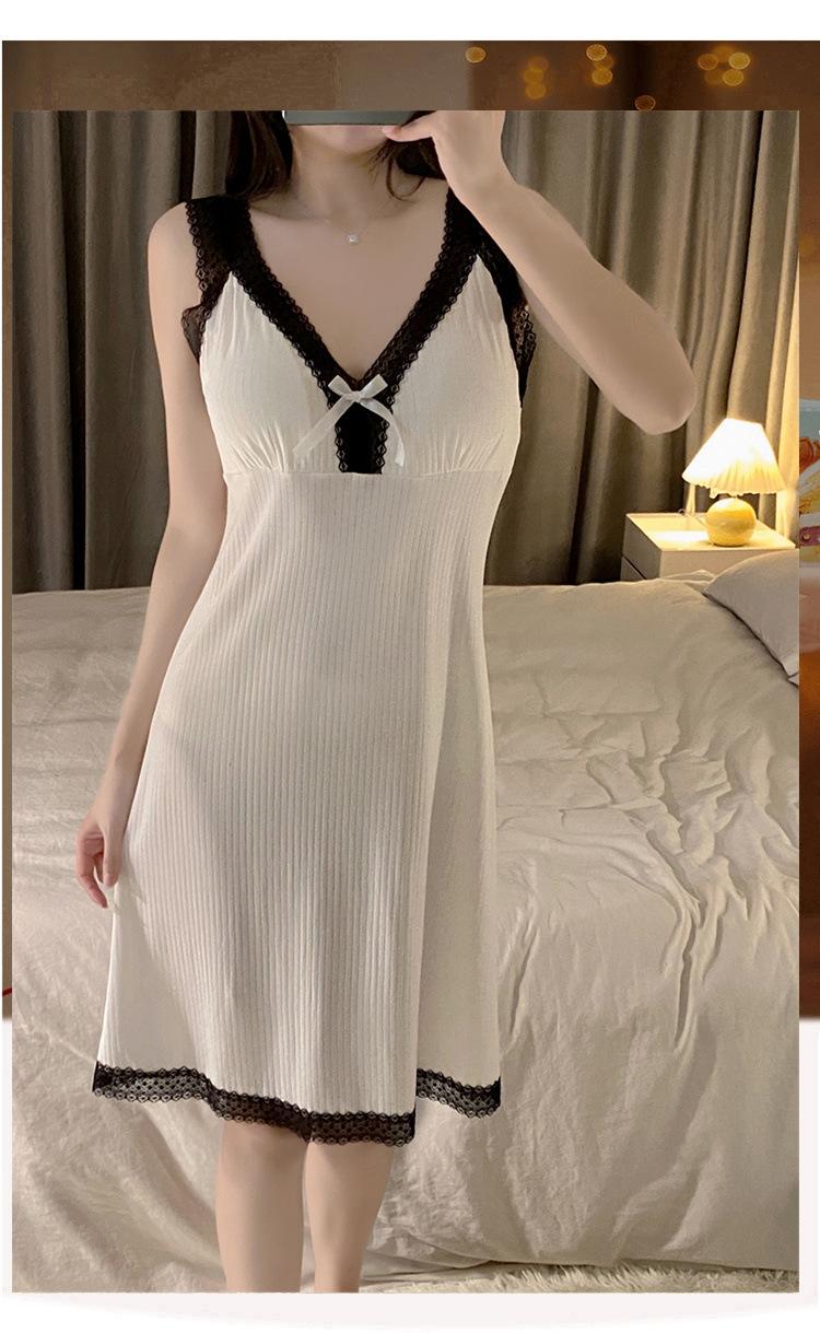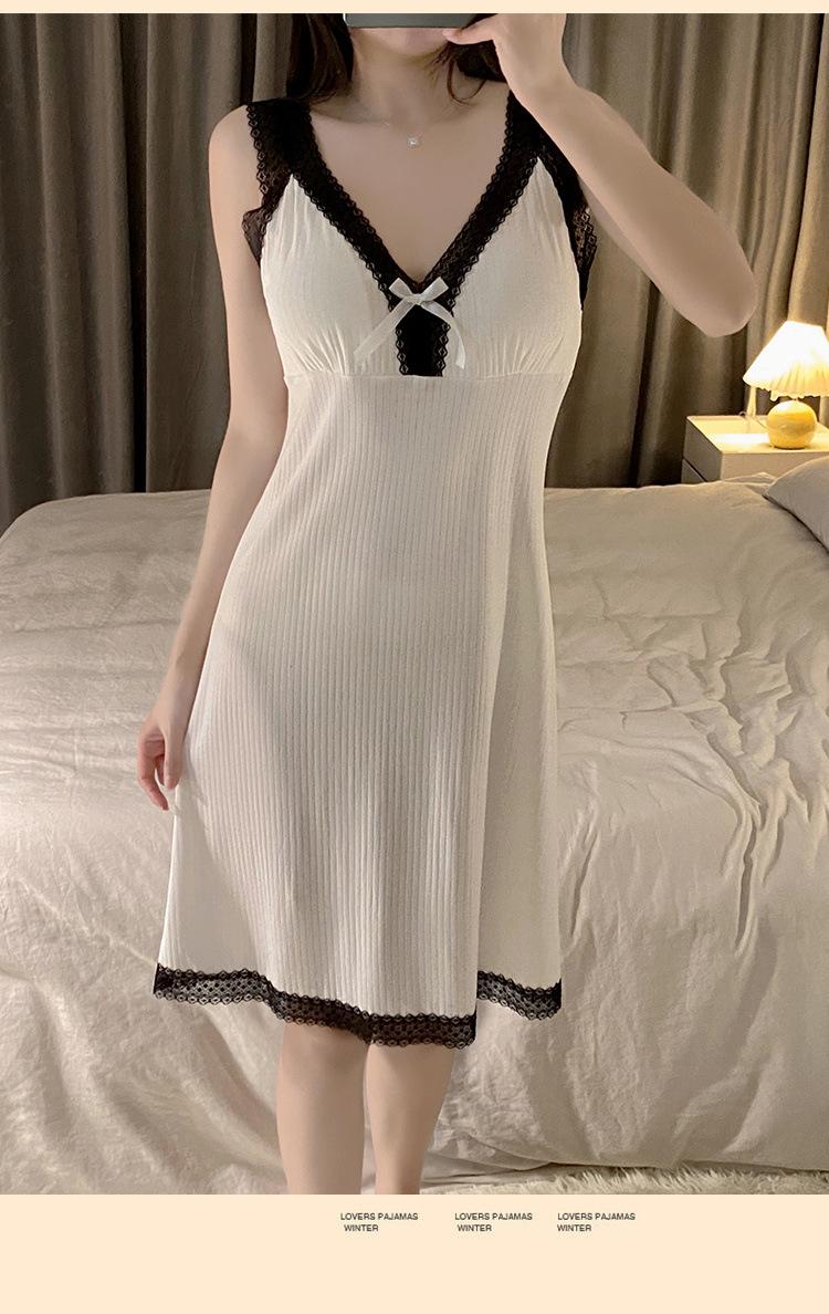 Pijama de Verano para Mujer Modal Recién Llegado con Almohadilla en el Pecho Alto Valor Facial Joven Encaje Encaje Ropa Exterior Camisón de Tirantes