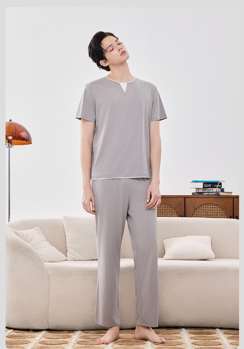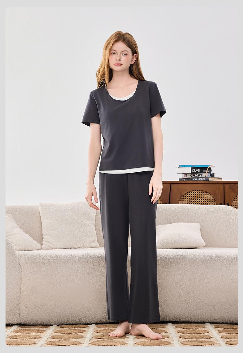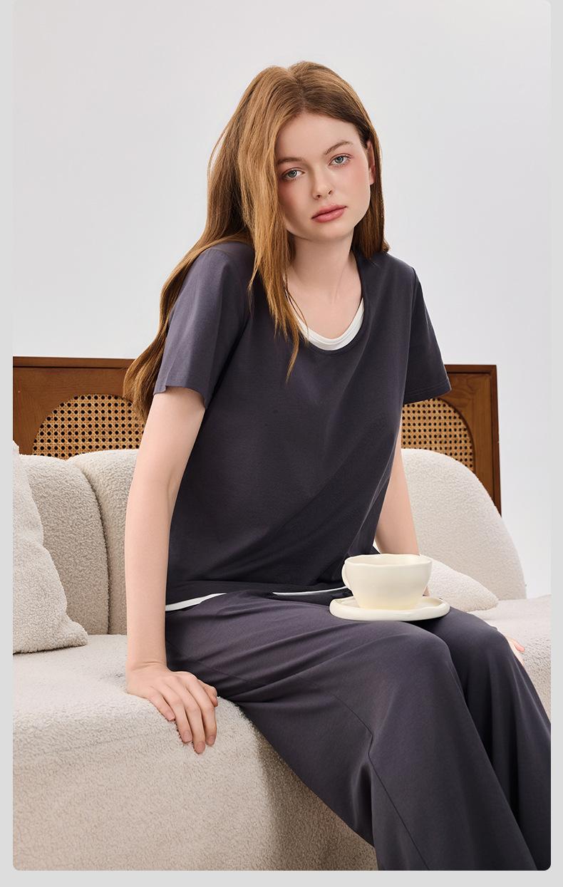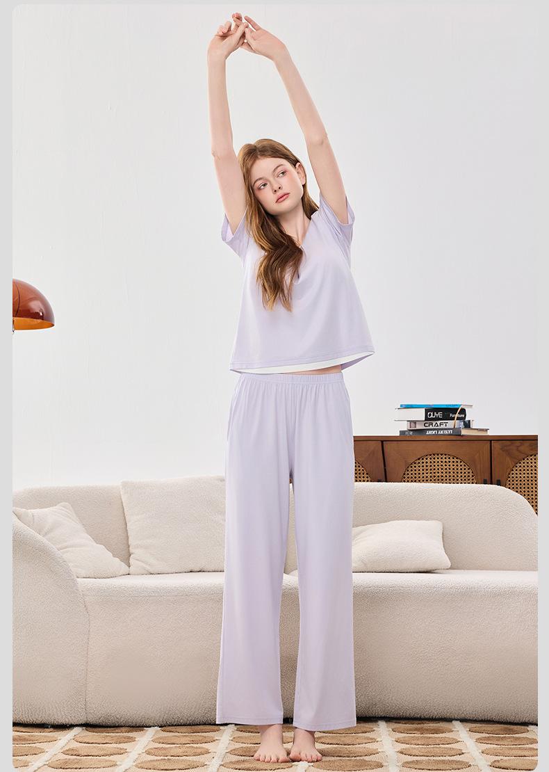 Conjunto de Diadema Almohadilla para el Busto Pijama para Mujer Verano Fresco Lenzing Modal Manga Corta Pantalones Primavera y Verano Pijama para Mujer Ropa para el Hogar