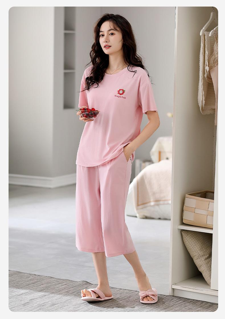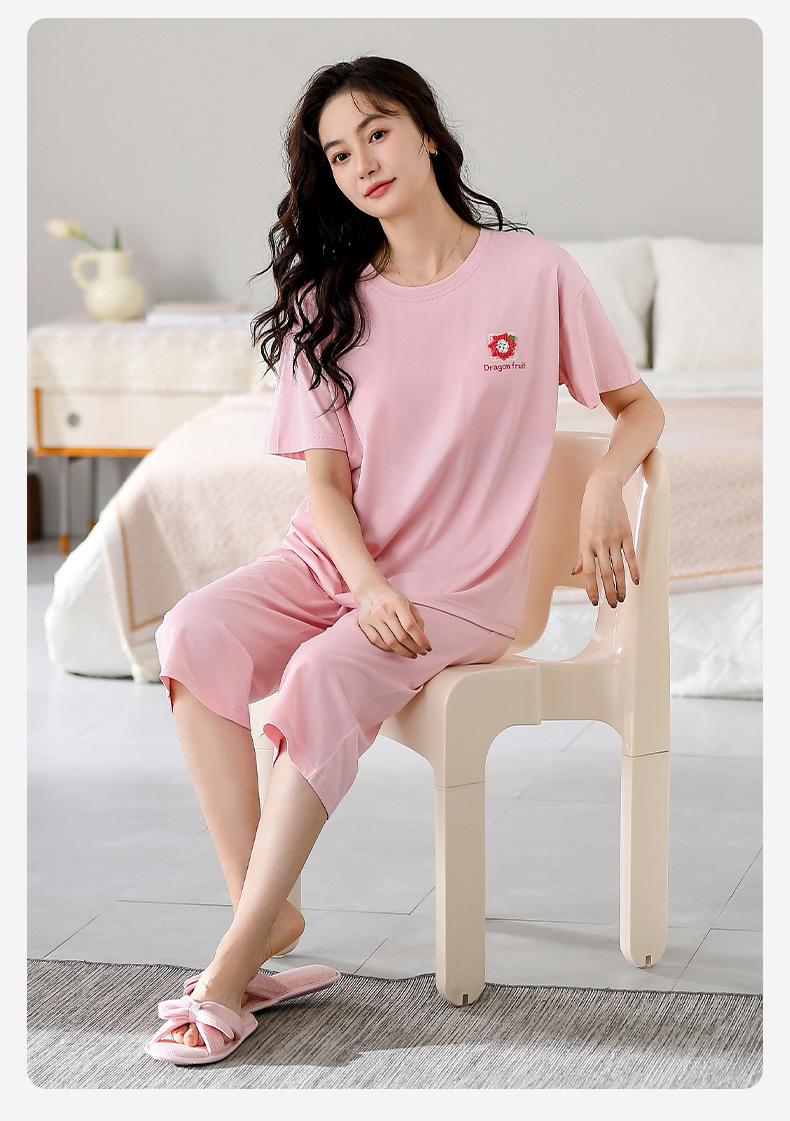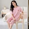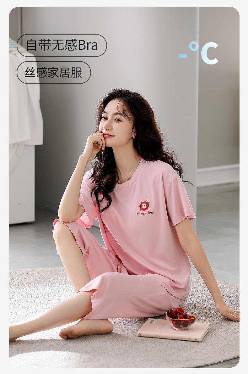 Pijama de modal con almohadilla para el pecho para mujer, pantalones capri finos de verano de manga corta, ropa interior de verano para mujer, ropa para el hogar