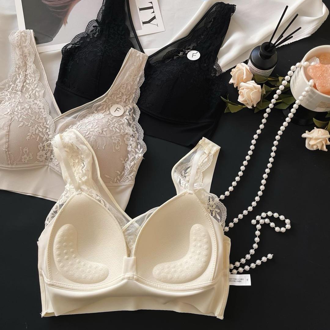 Elegante sujetador de encaje con espalda hermosa, sexy, sin costuras, tirantes anchos, cómodo fruncido, soporte superior, envoltura lateral, pecho, copa fija 6321